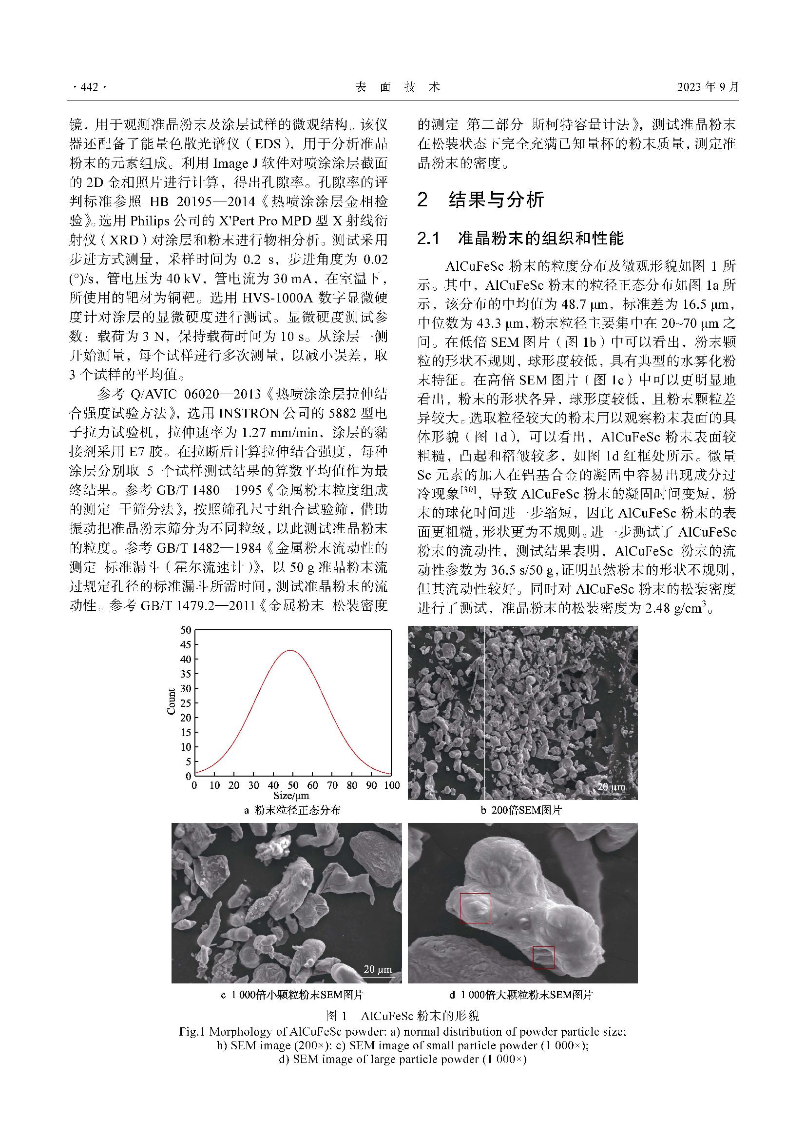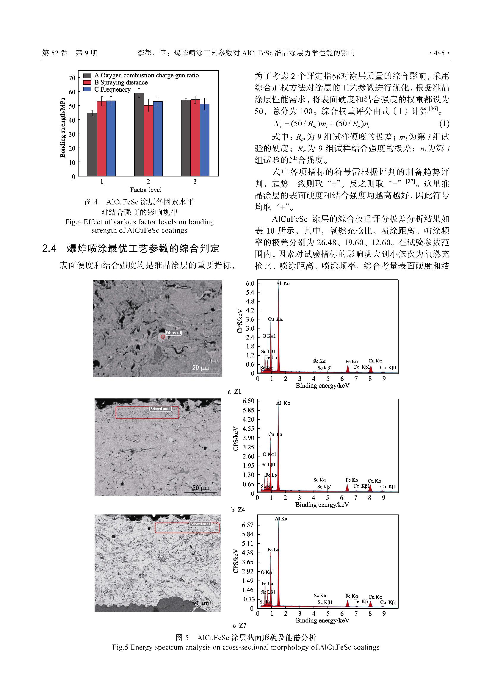 爆炸喷涂工艺参数对AlCuFeSc准晶涂层力学性能的影响