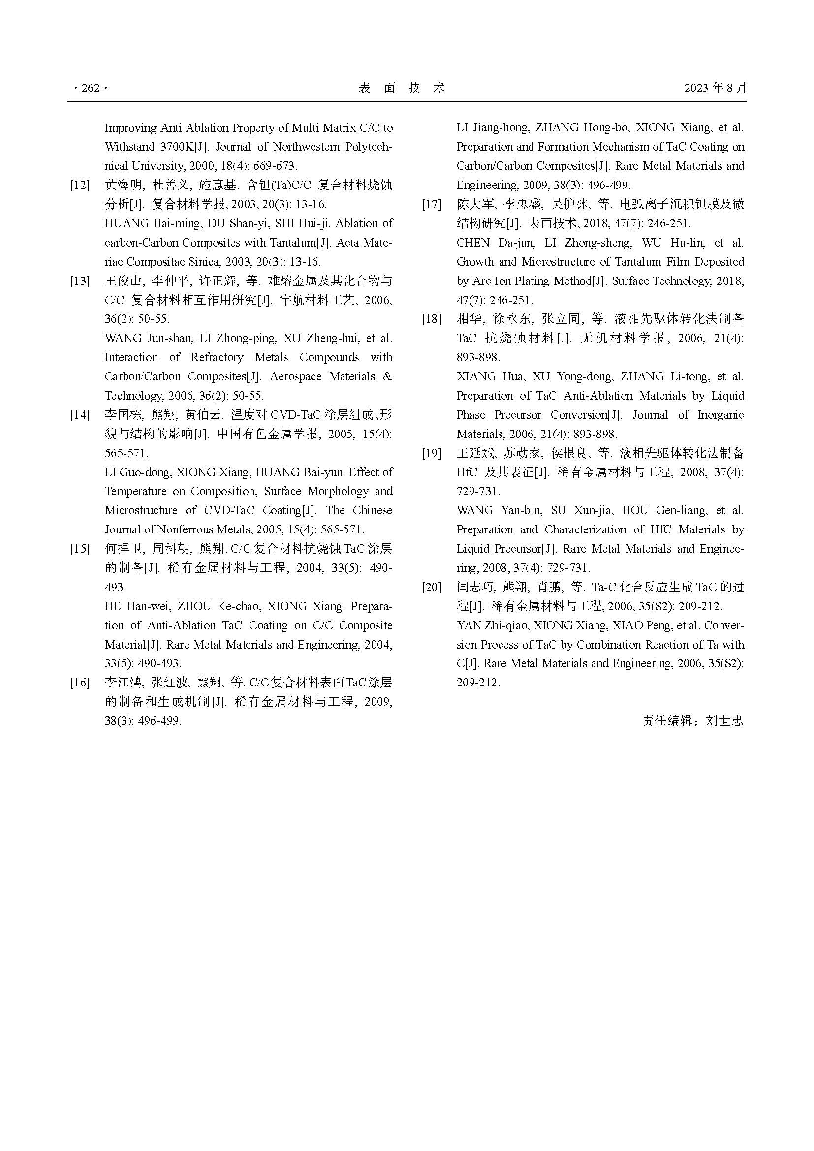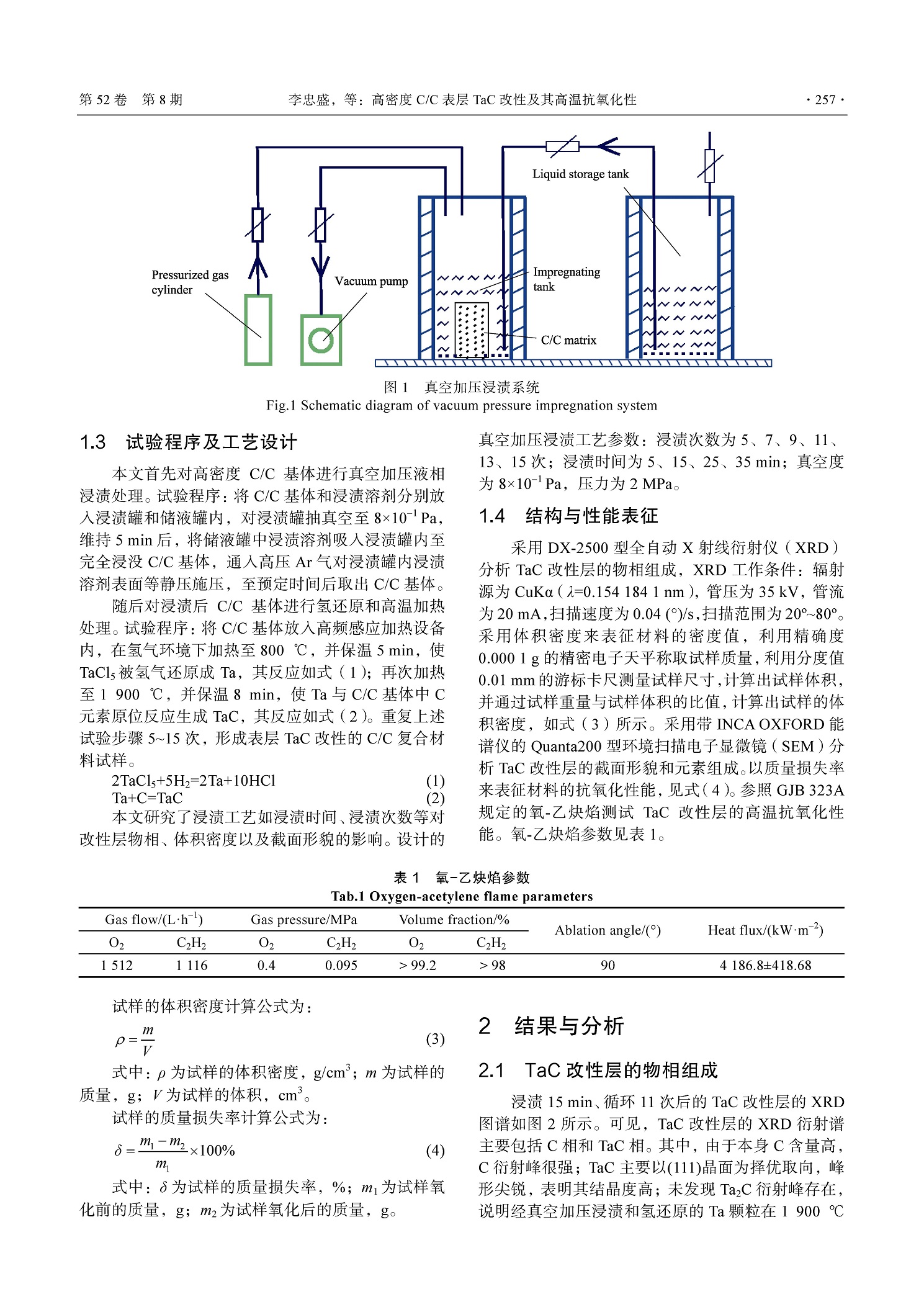 高密度 C/C 表层 TaC 改性及其高温抗氧化性