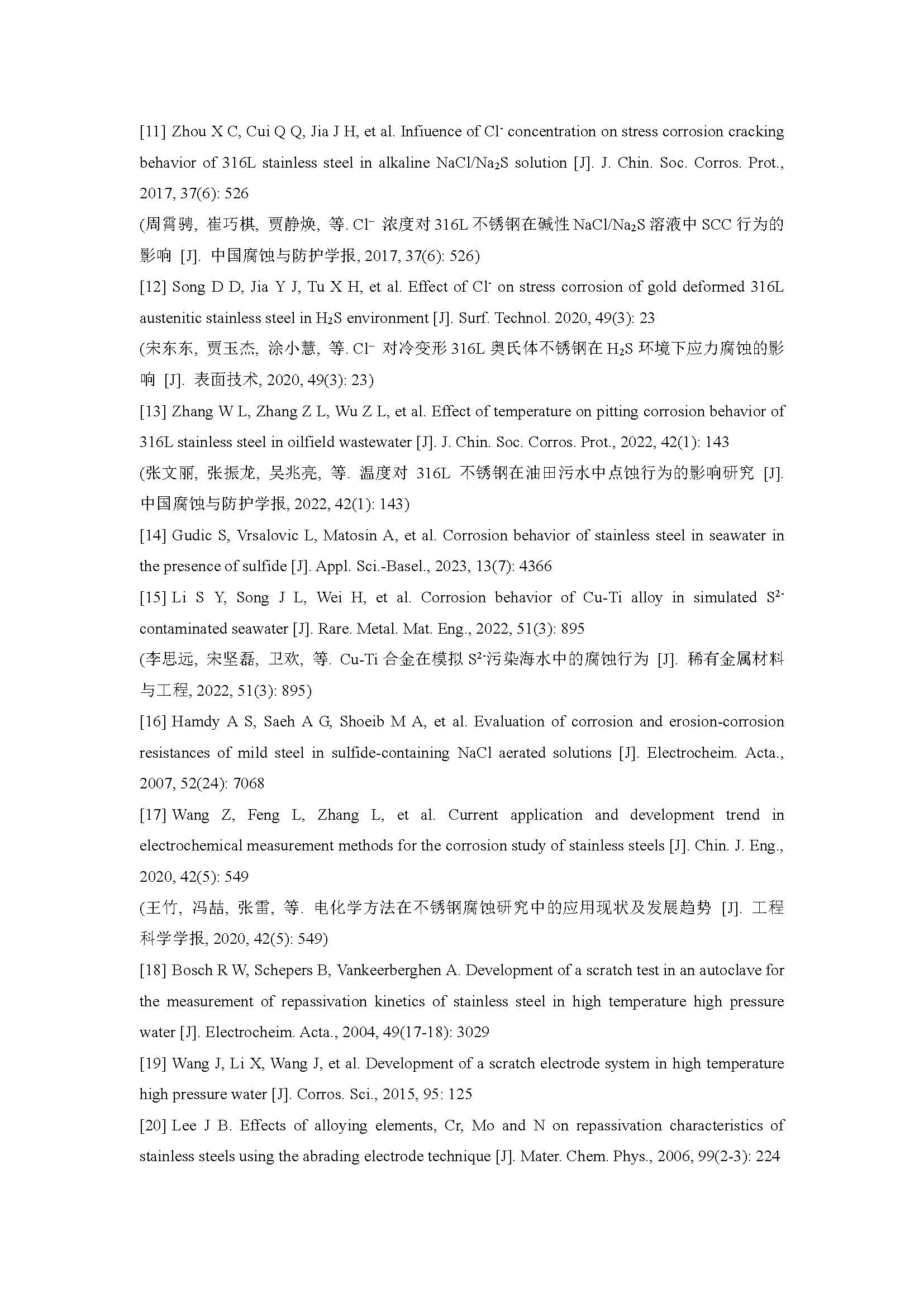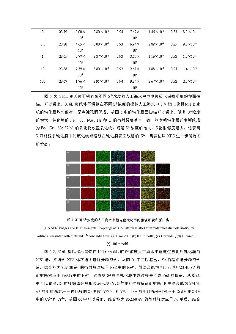 标签: 316L奥氏体不锈钢, S2-, 耐腐蚀性能, 钝化膜, 协同作用
