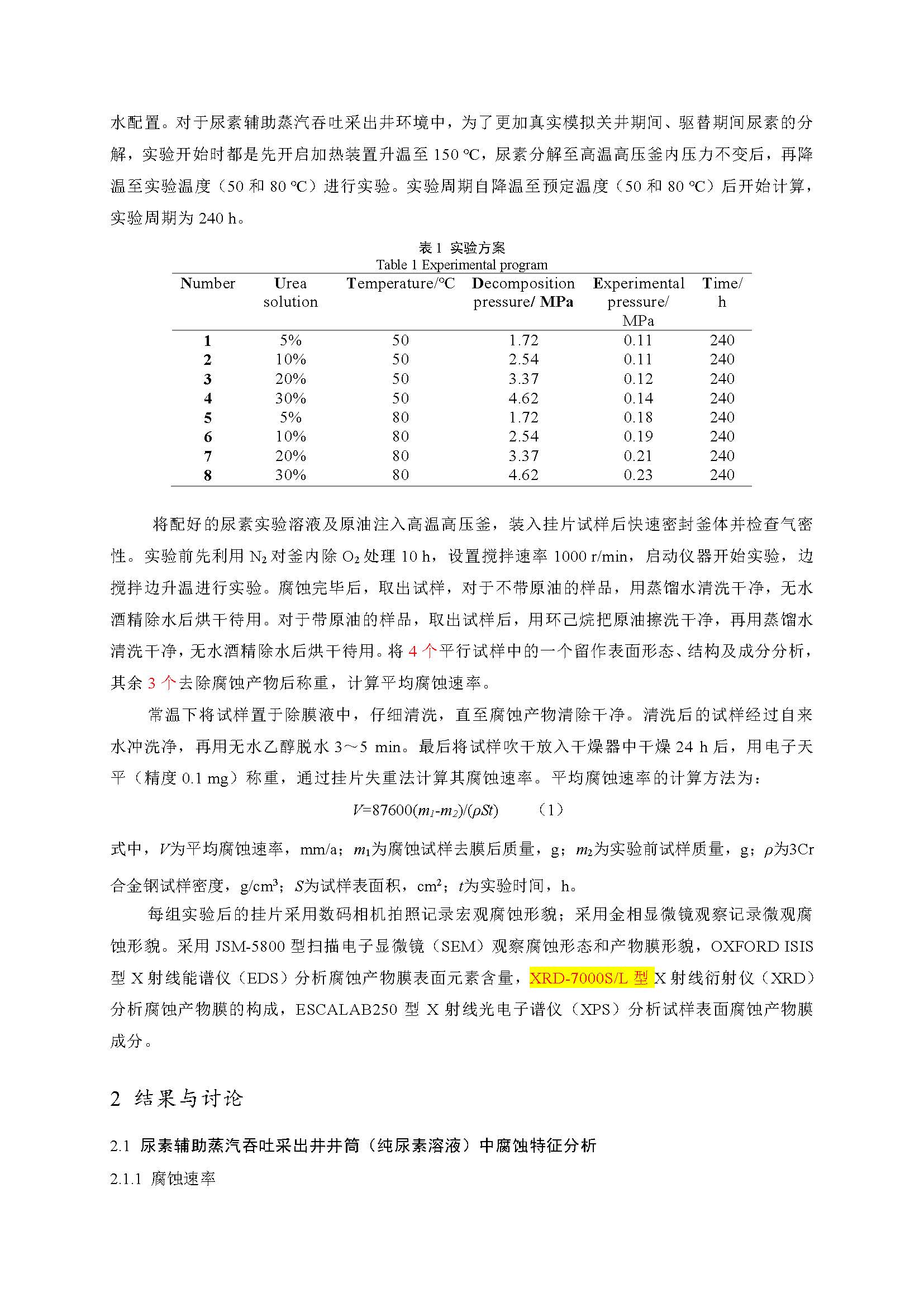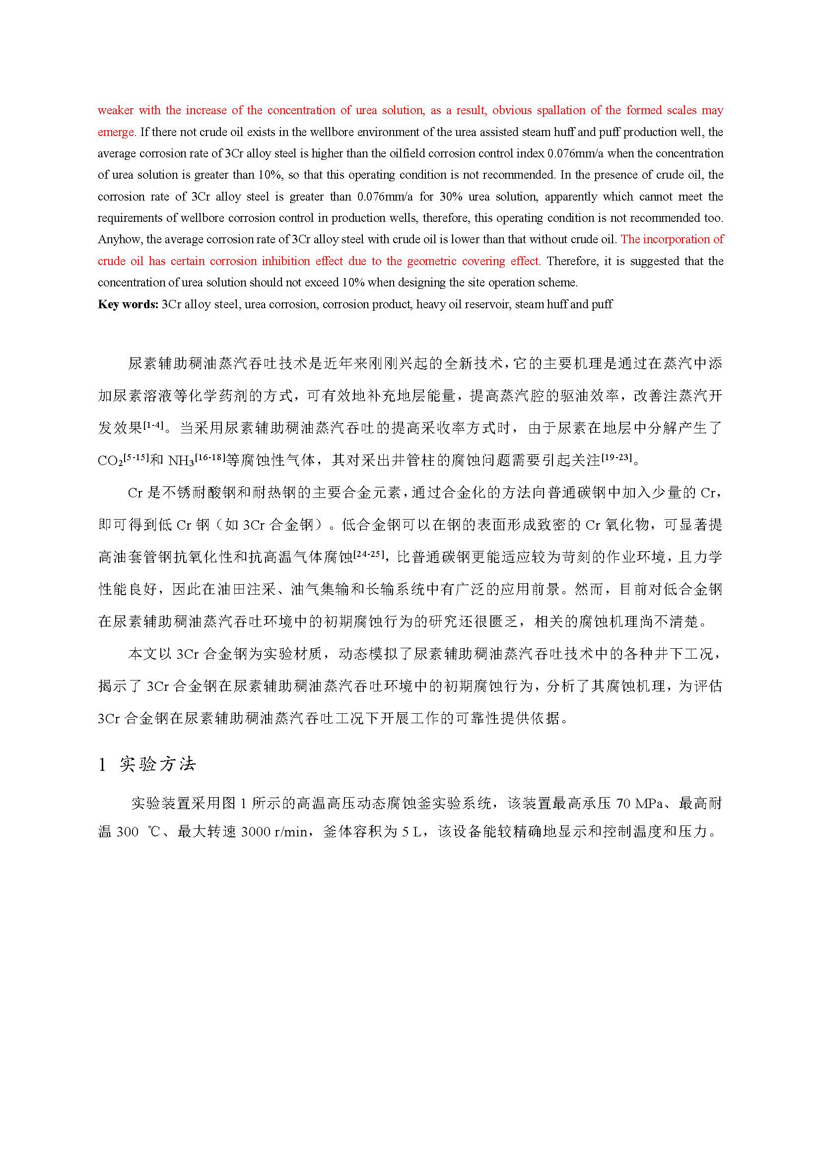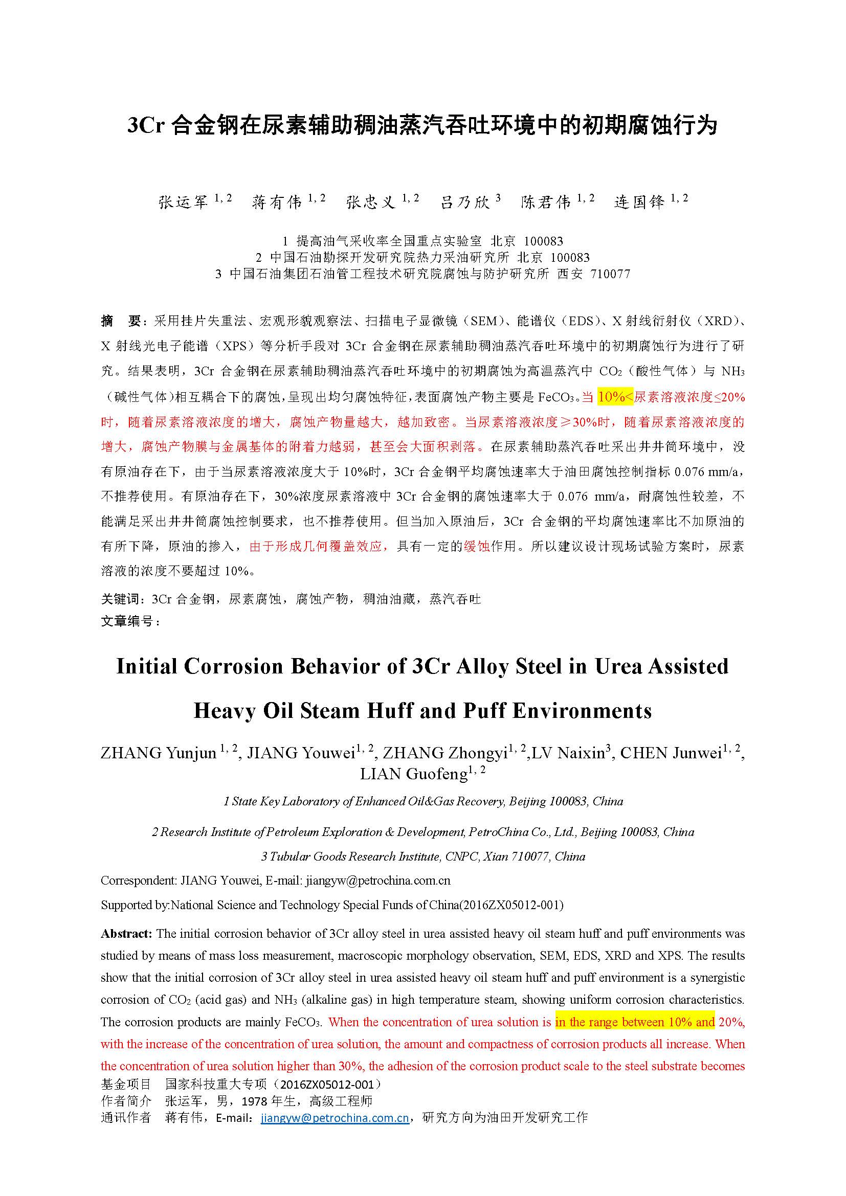 3Cr合金钢在尿素辅助稠油蒸汽吞吐环境中的初期腐蚀行为
