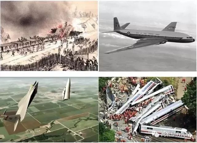 图1 凡尔赛铁路事故(左上)、“彗星”号客机(右上)、F-15战斗机空中解体(左下)、德国高铁事故(右下)(源于网络)