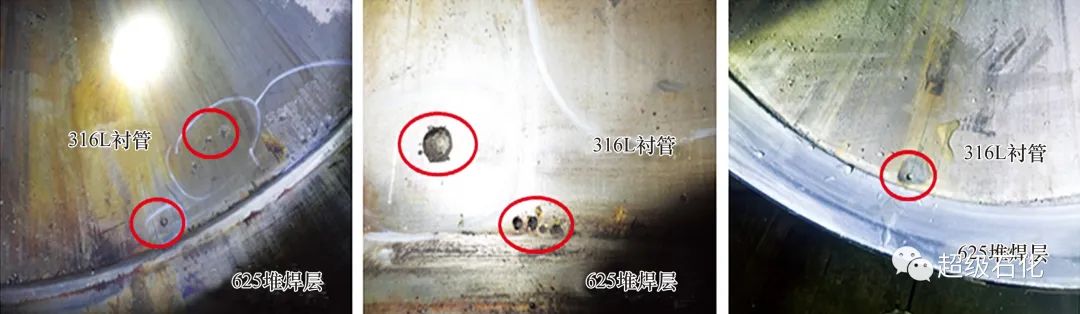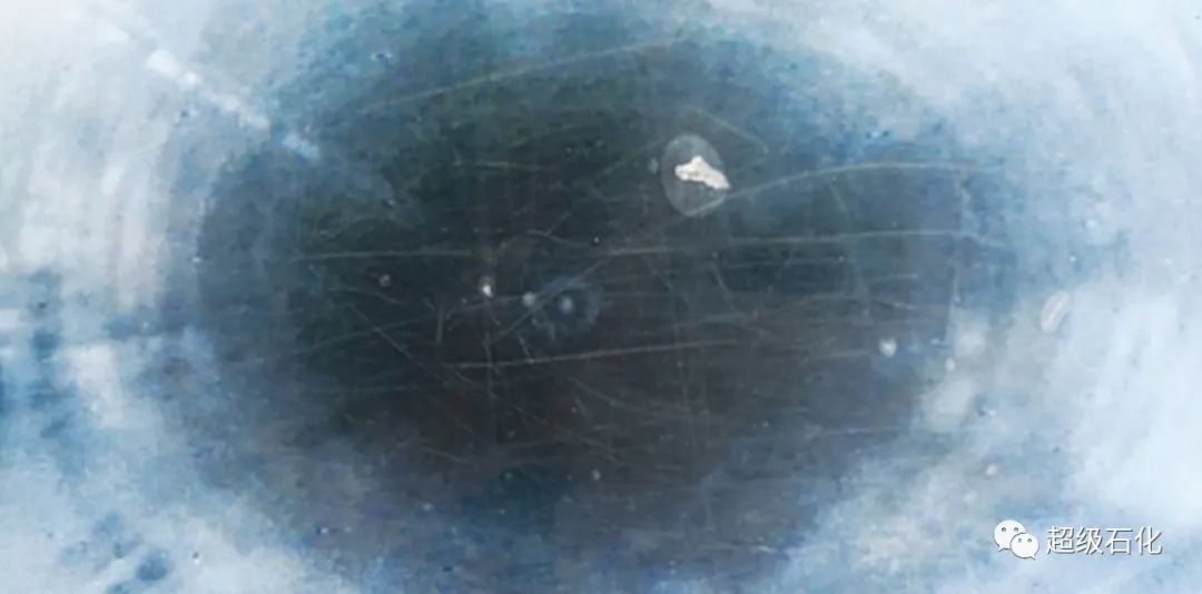 (4) 如发现铁污染等使316L表面钝化膜损坏的情况,可对锈蚀位置抛光,去除浮锈,抛光后需符合最小壁厚要求,用不锈钢酸洗钝化膏均匀覆盖在抛光位置,与未抛光位置至少搭接50 mm,用自来水(水中Cl-质量浓度不能超过30 mg/L)对钝化位置冲洗或用清洁湿抹布擦除钝化膏,使其形成钝化膜。对316L不锈钢酸洗钝化后,用内窥镜质量检验合格,如图6所示。