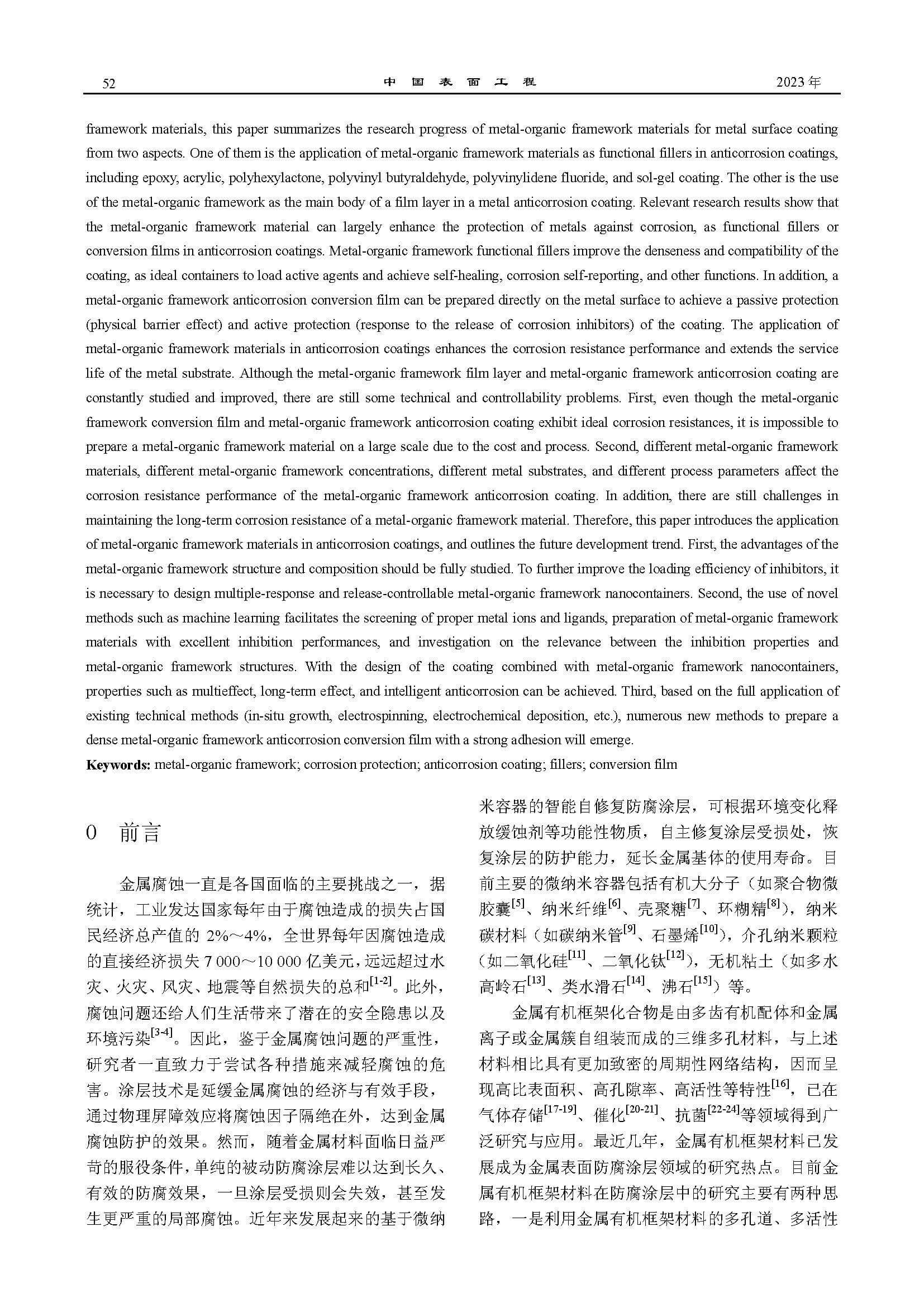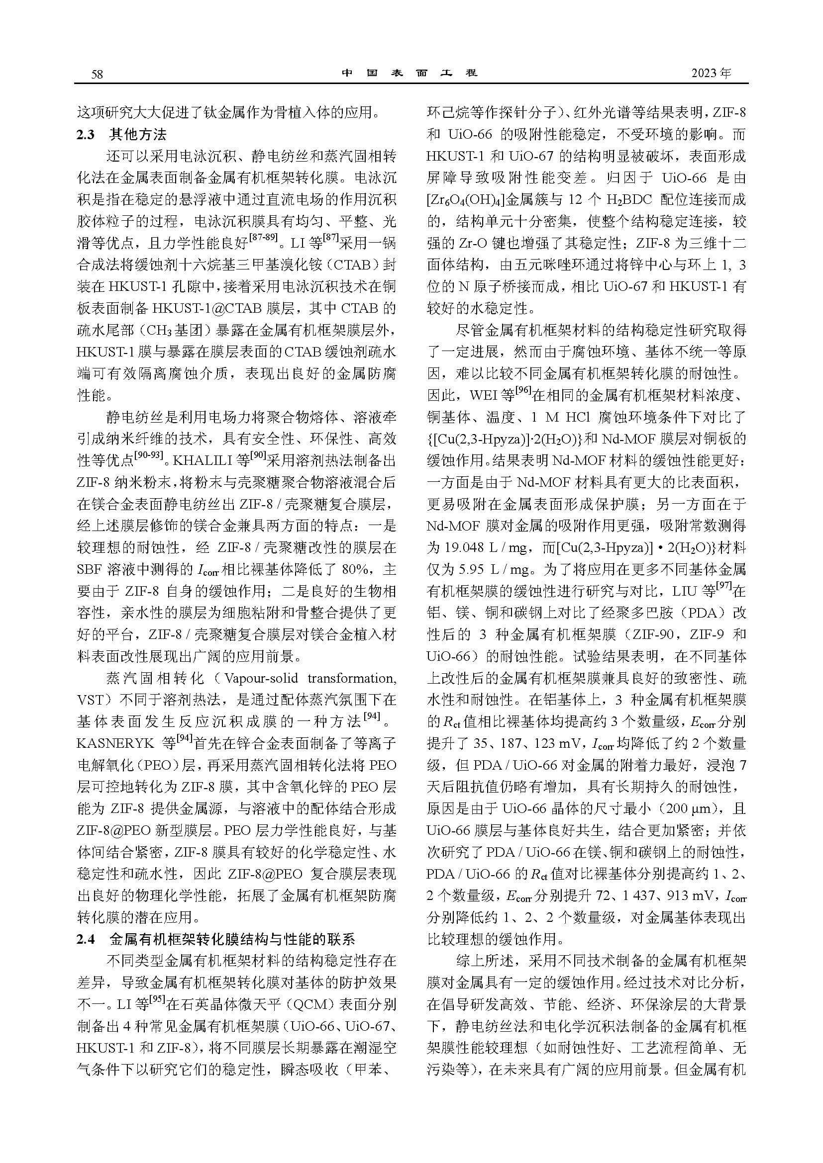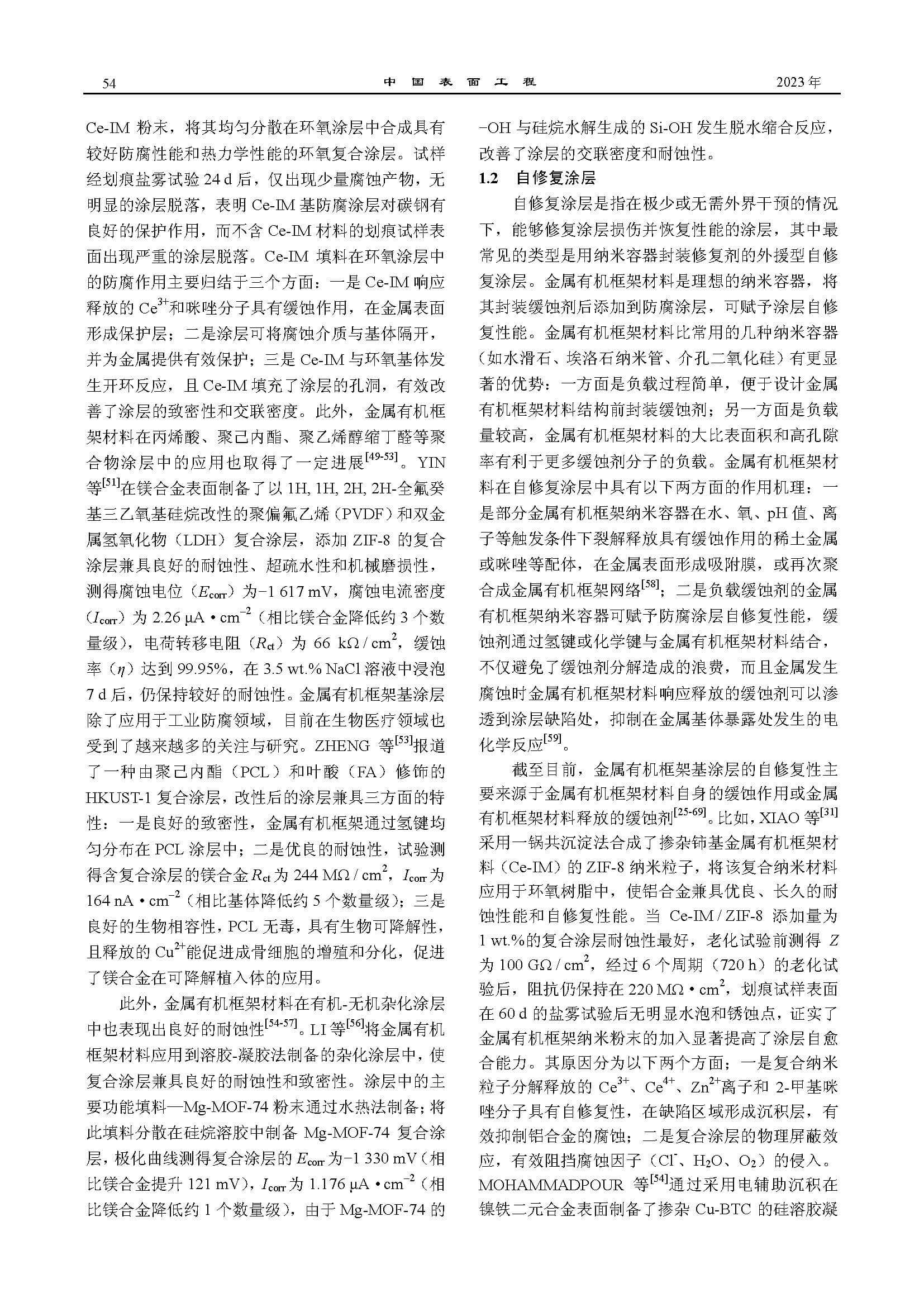 金属有机框架材料在防腐涂层中的应用进展