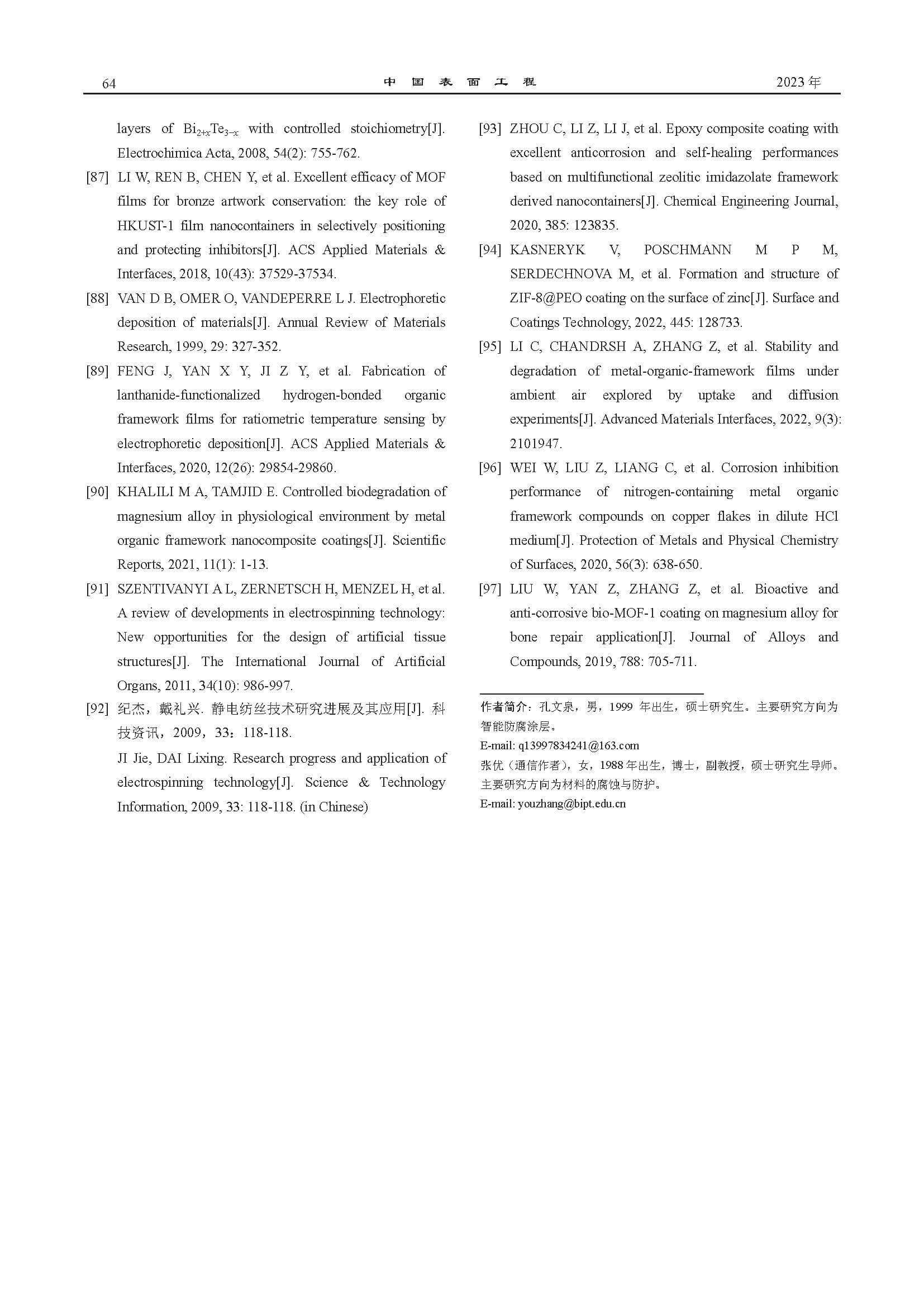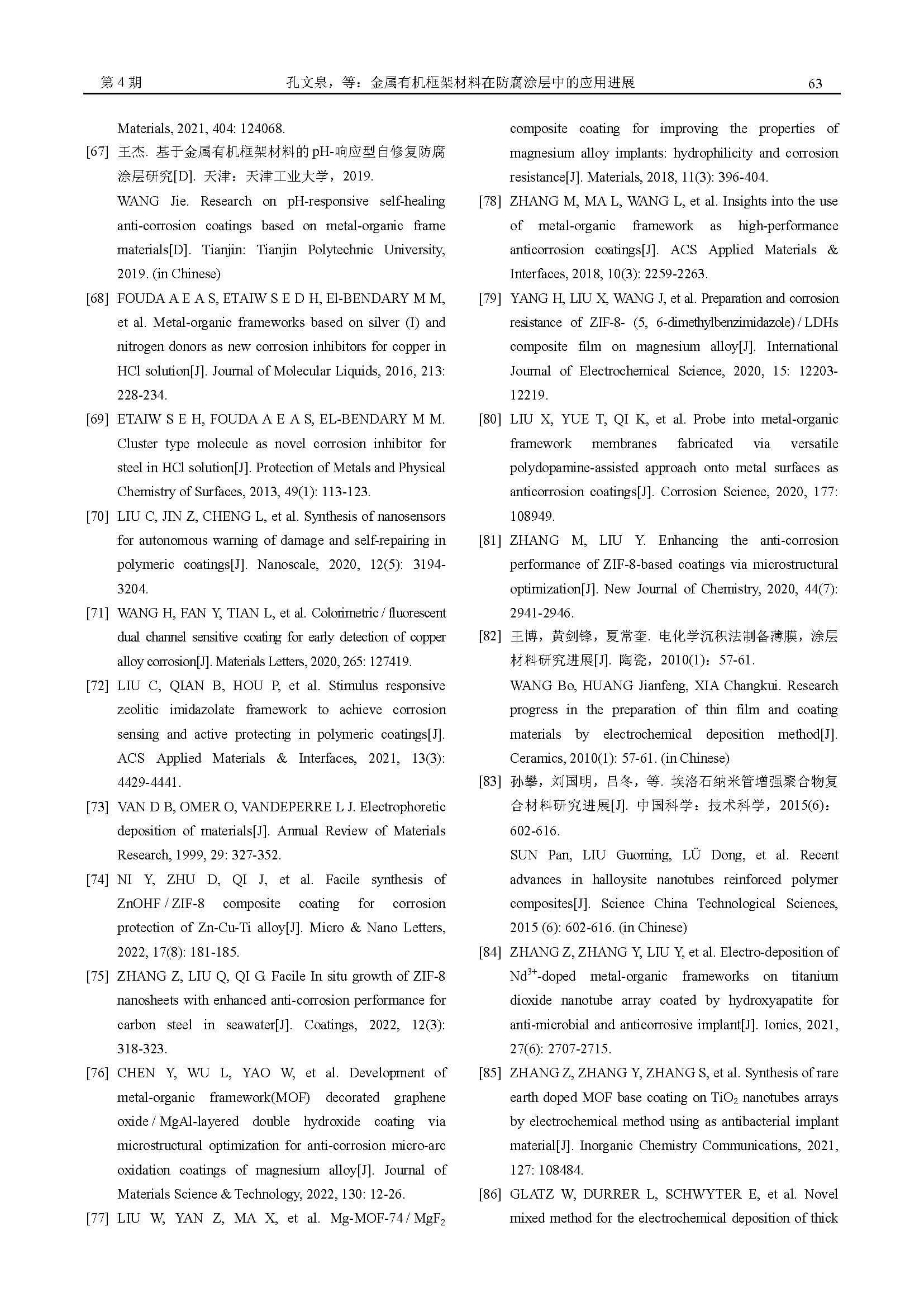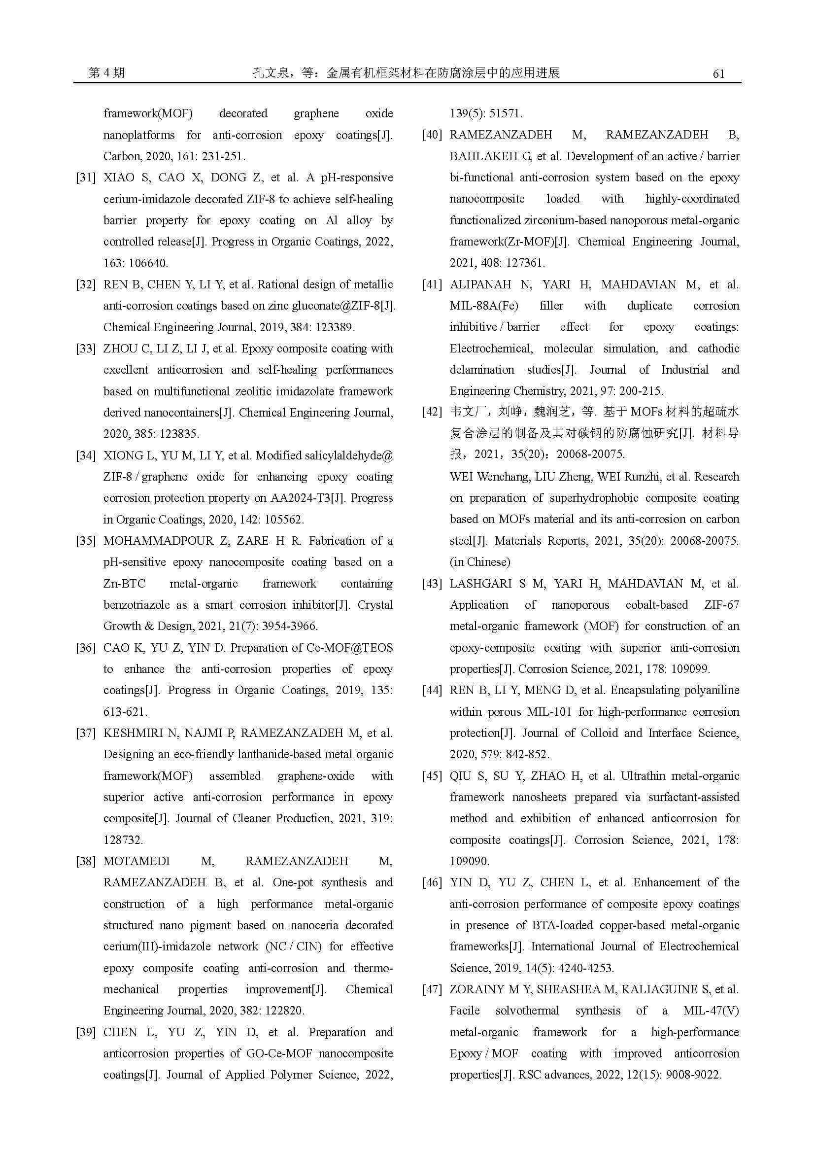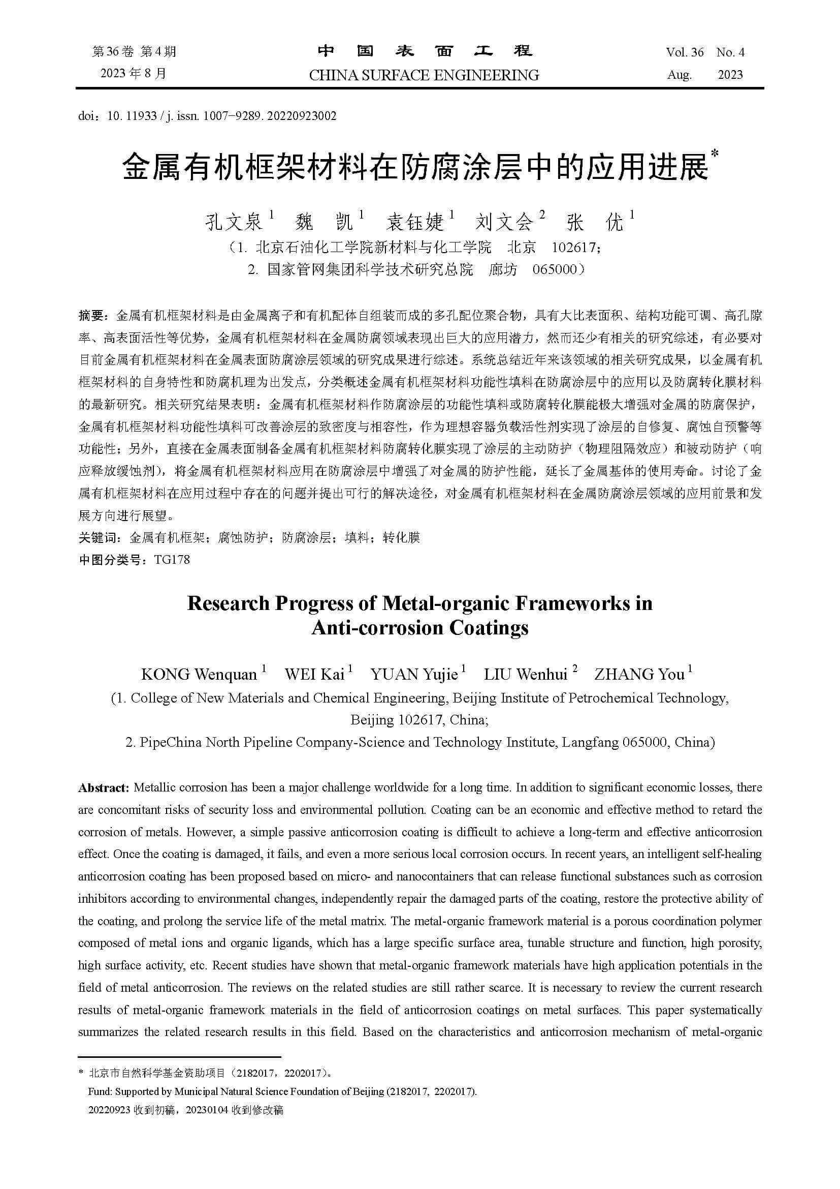 金属有机框架材料在防腐涂层中的应用进展