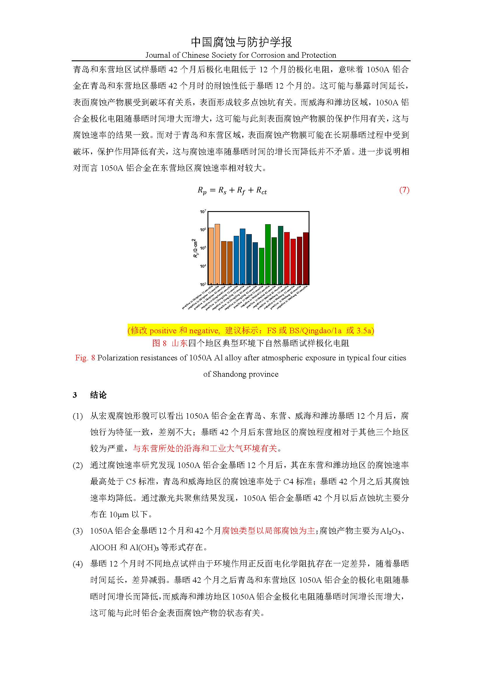 1050A铝合金在山东不同典型环境中的大气腐蚀行为特征研究