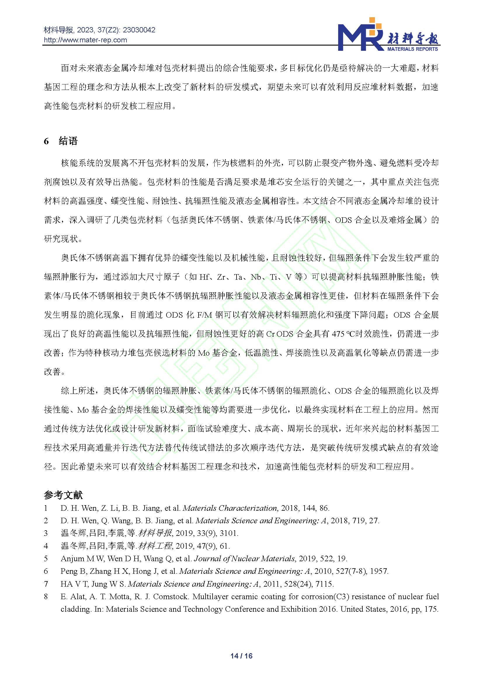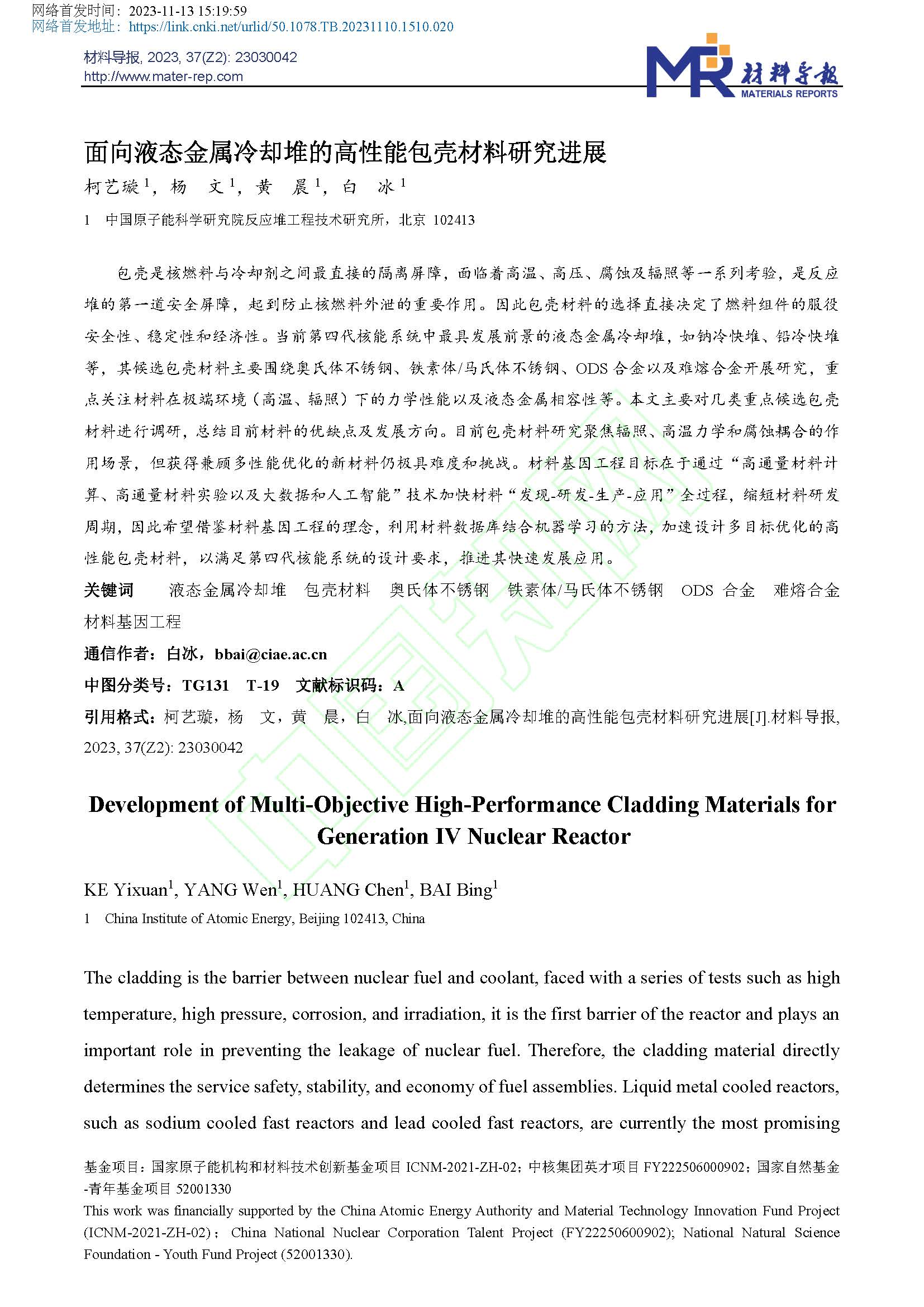 面向液态金属冷却堆的高性能包壳材料研究进展