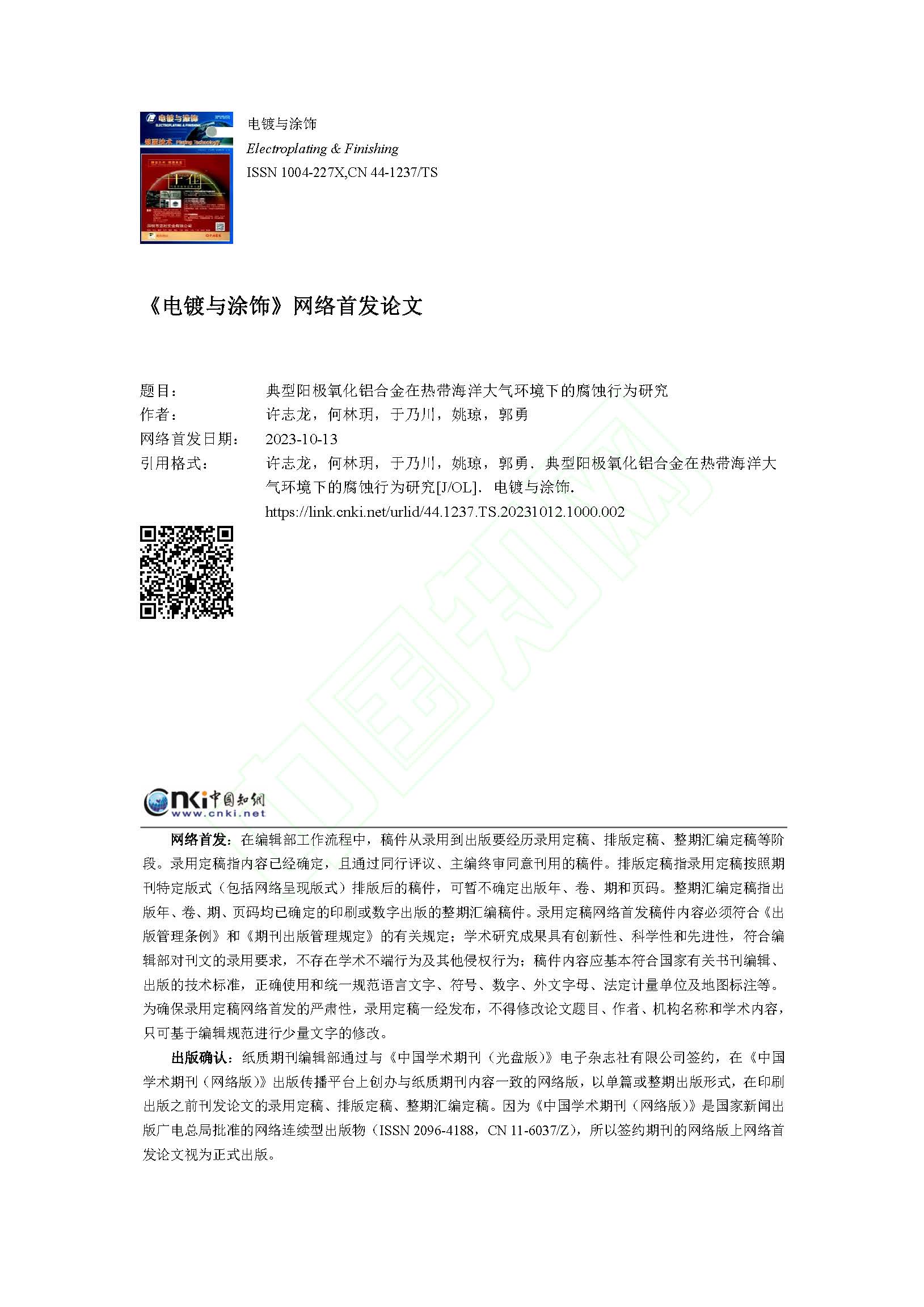 典型阳极氧化铝合金在热带海洋大气环境下的腐蚀行为研究
