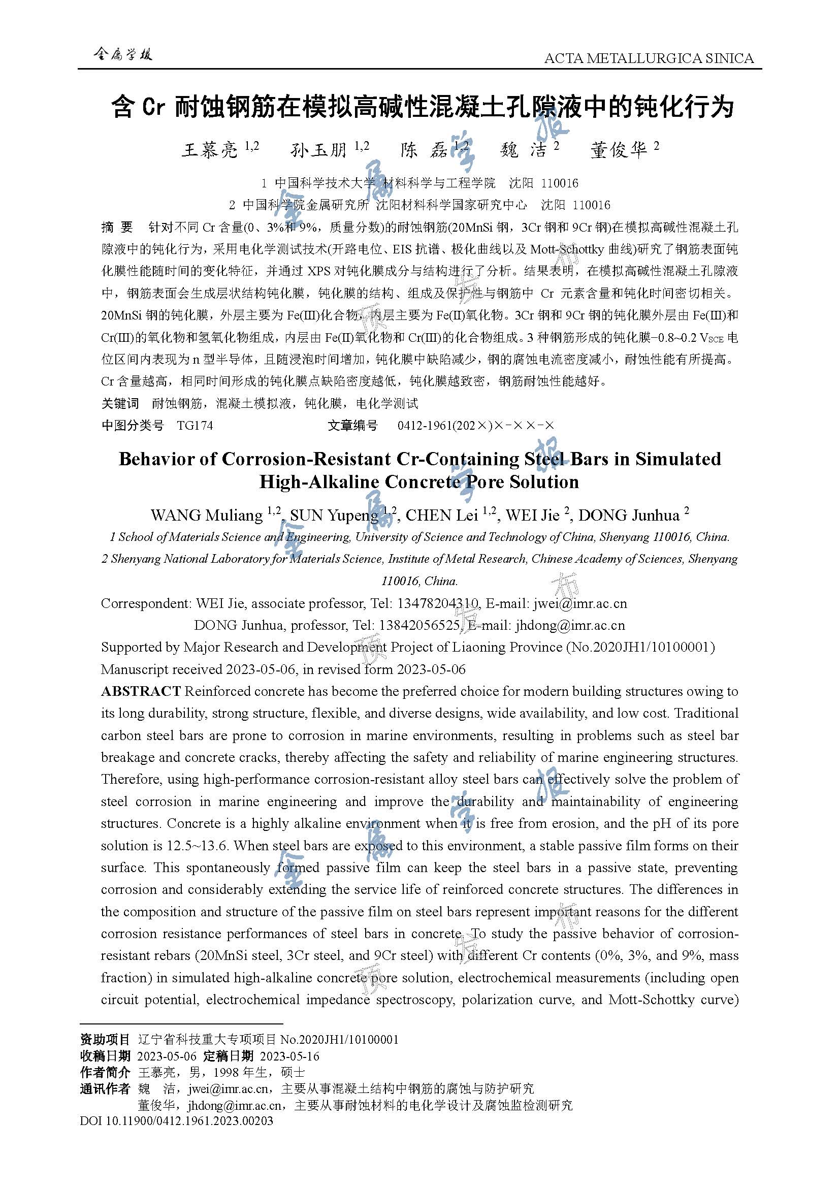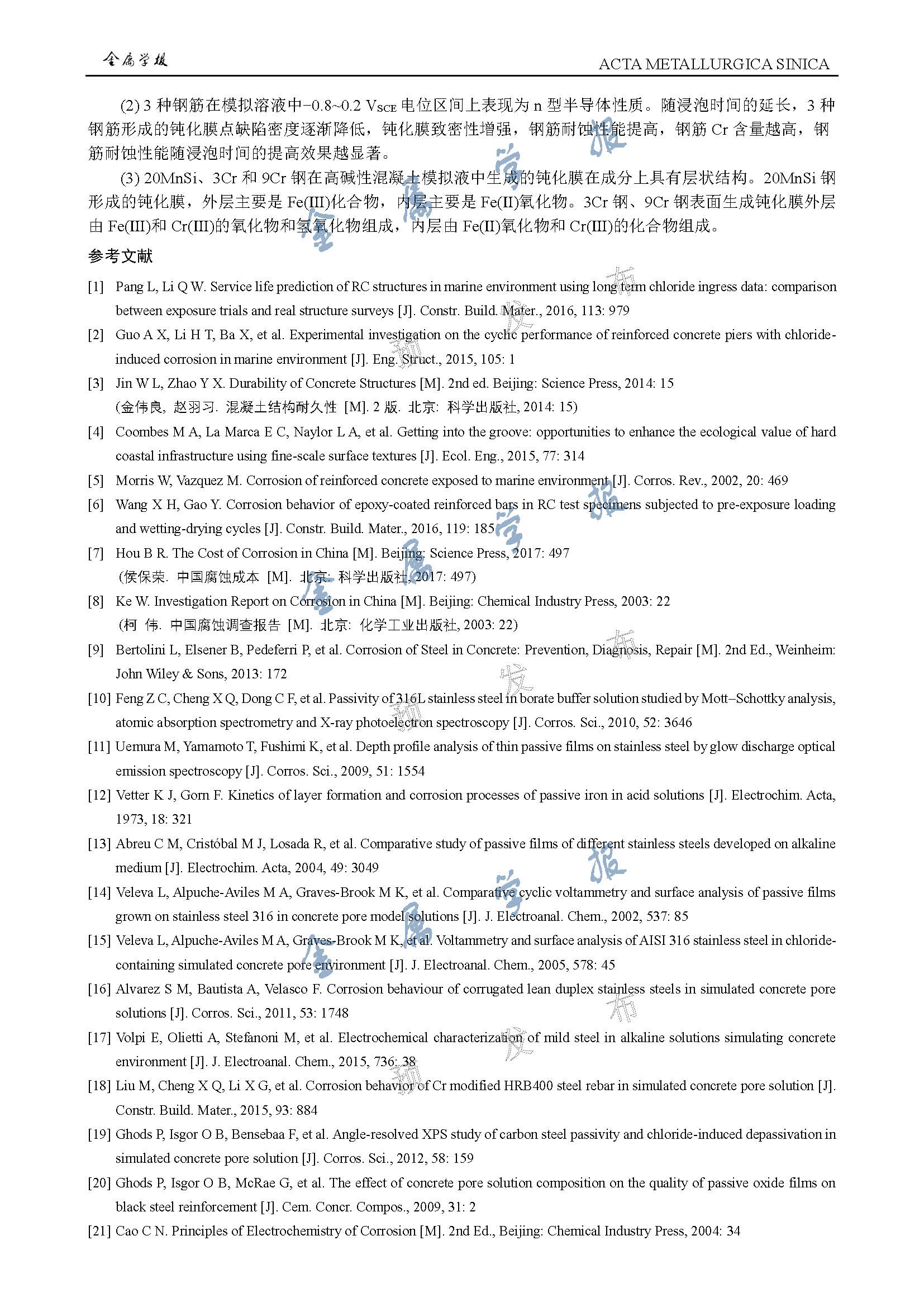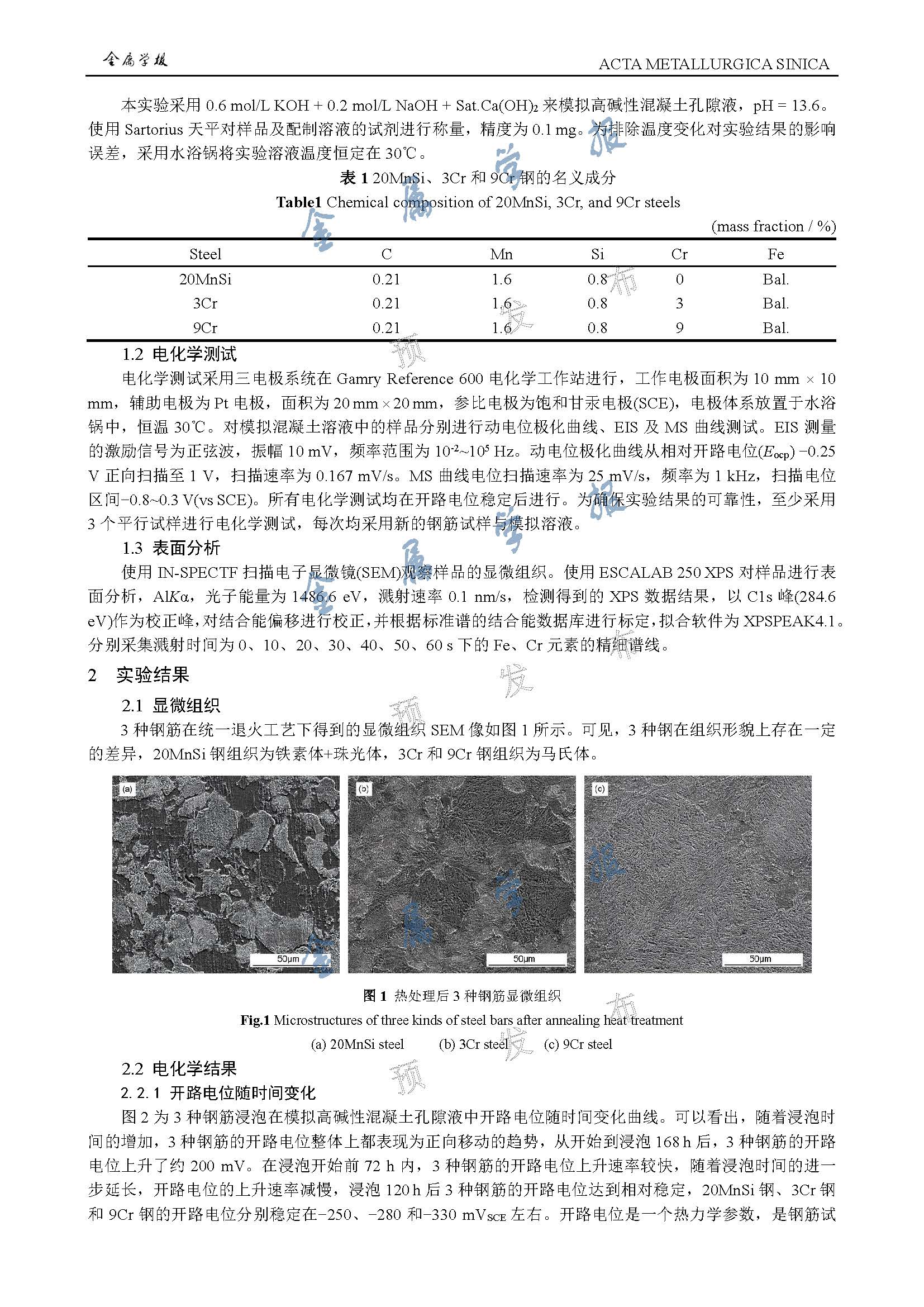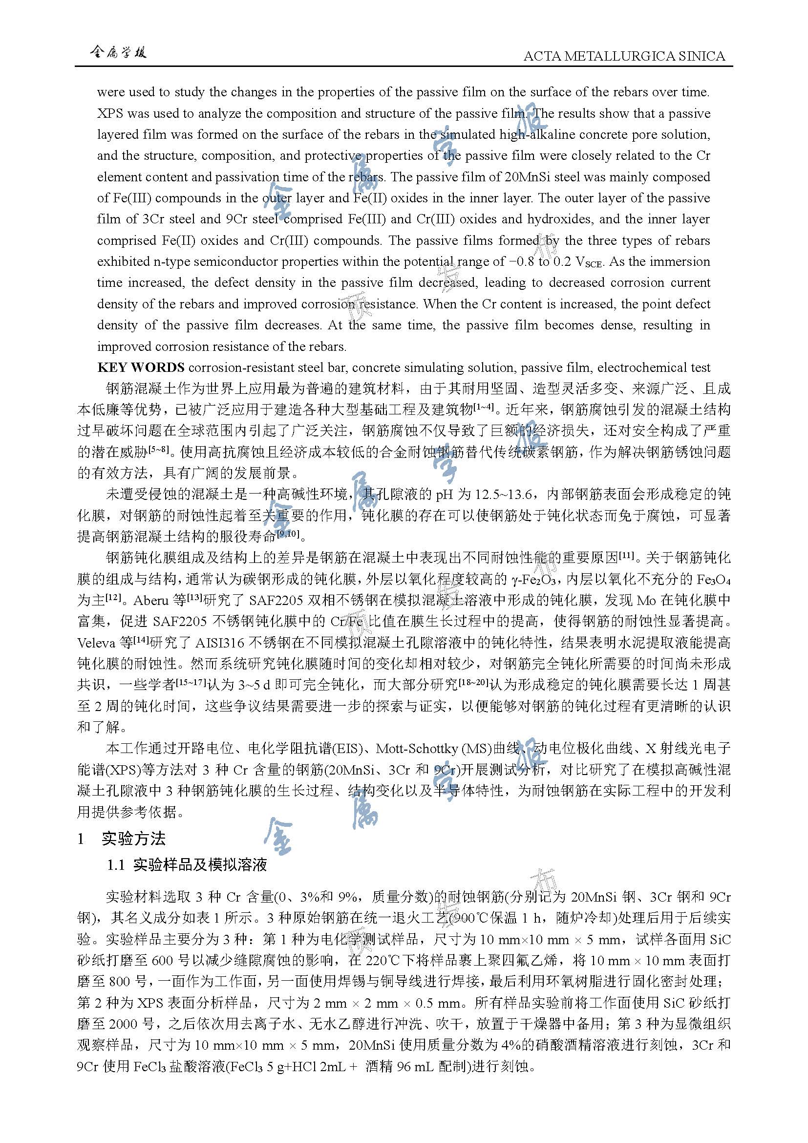含Cr耐蚀钢筋在模拟高碱性混凝土孔隙液中的钝化行为研究