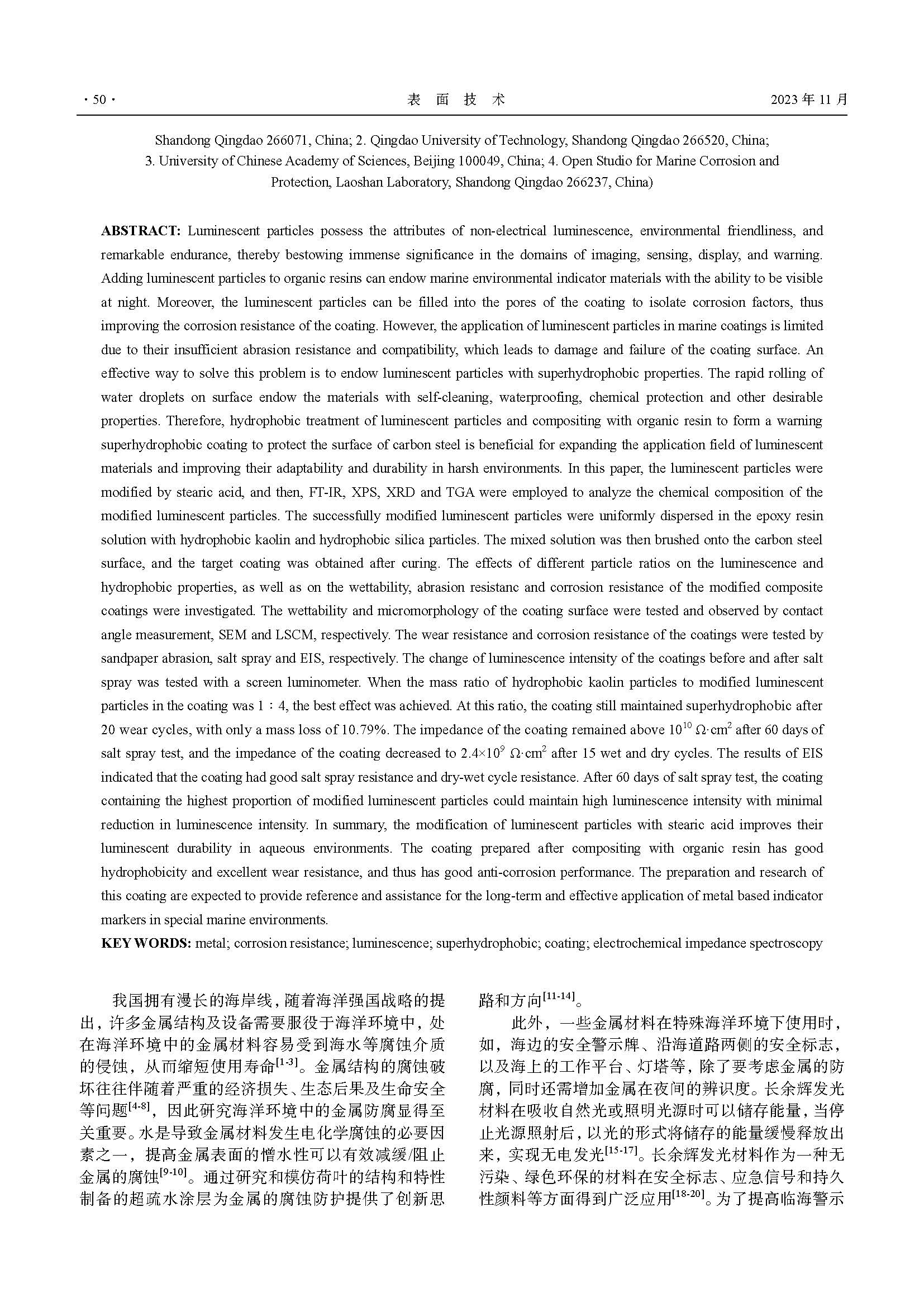 超疏水颗粒改性防腐涂层性能研究