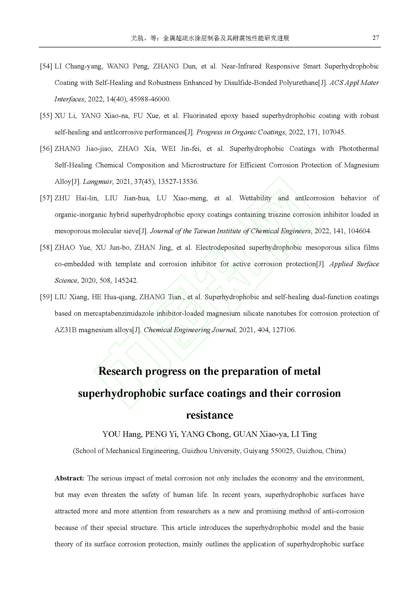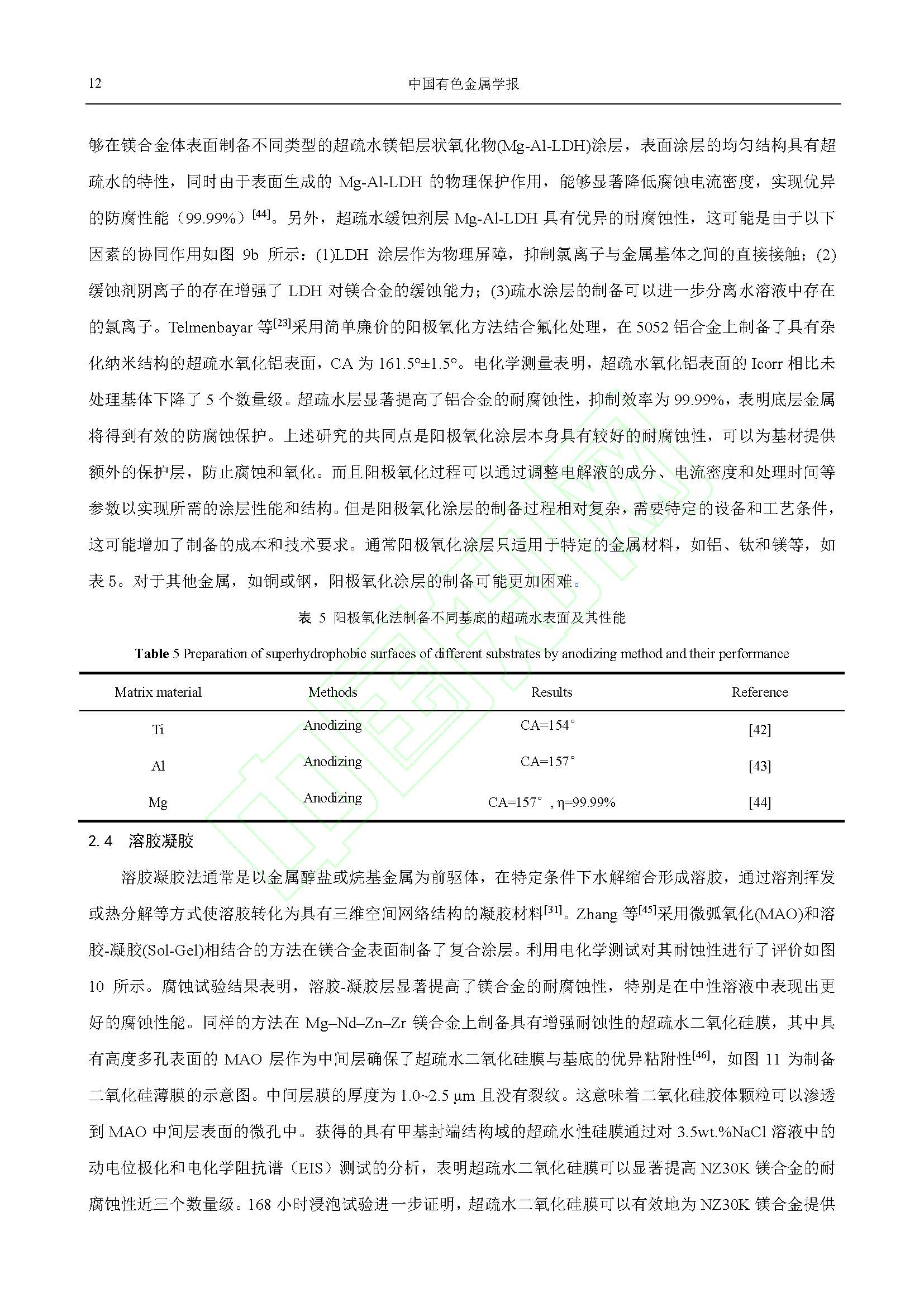 镁合金表面防腐蚀超疏水涂层制备研究进展