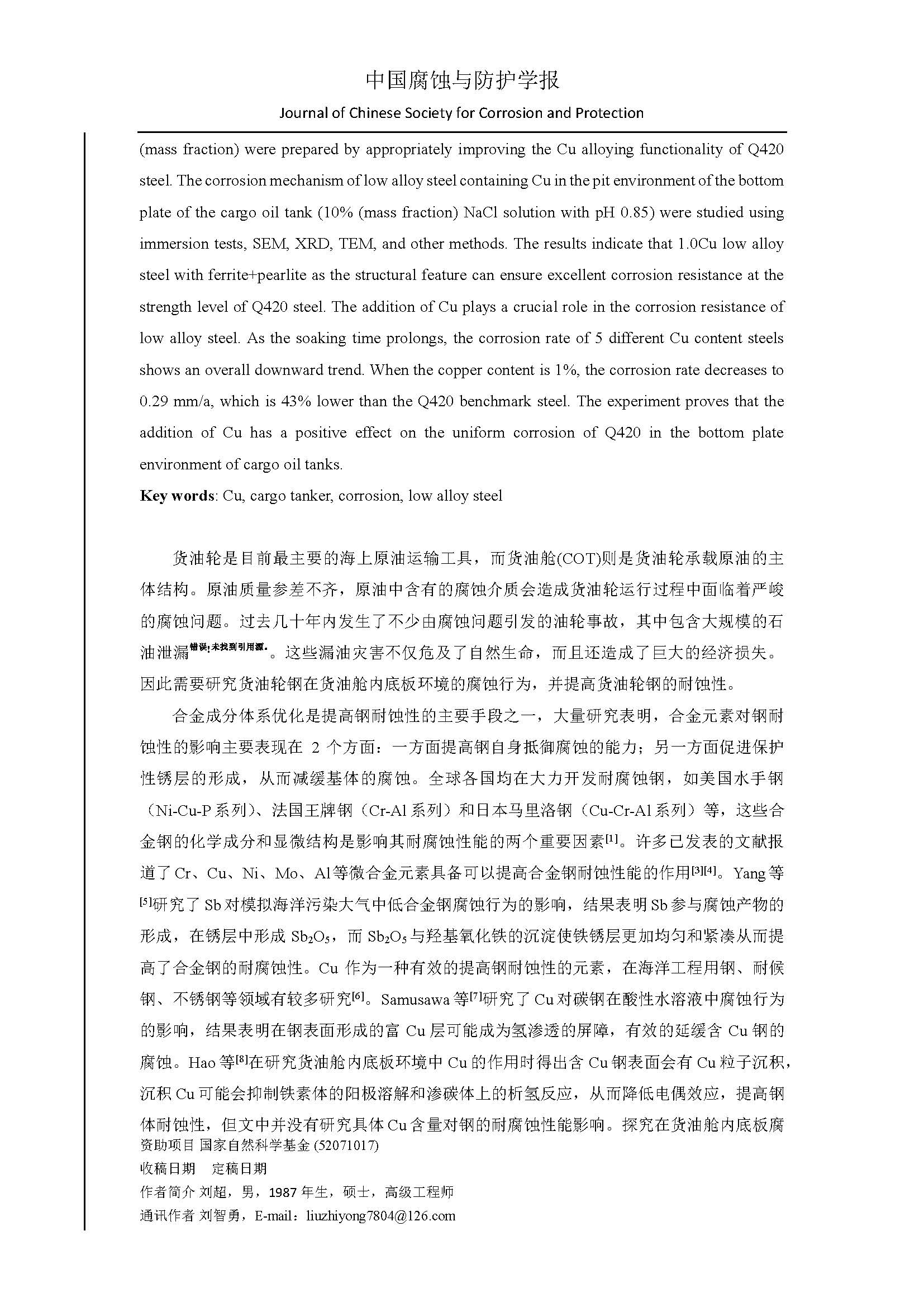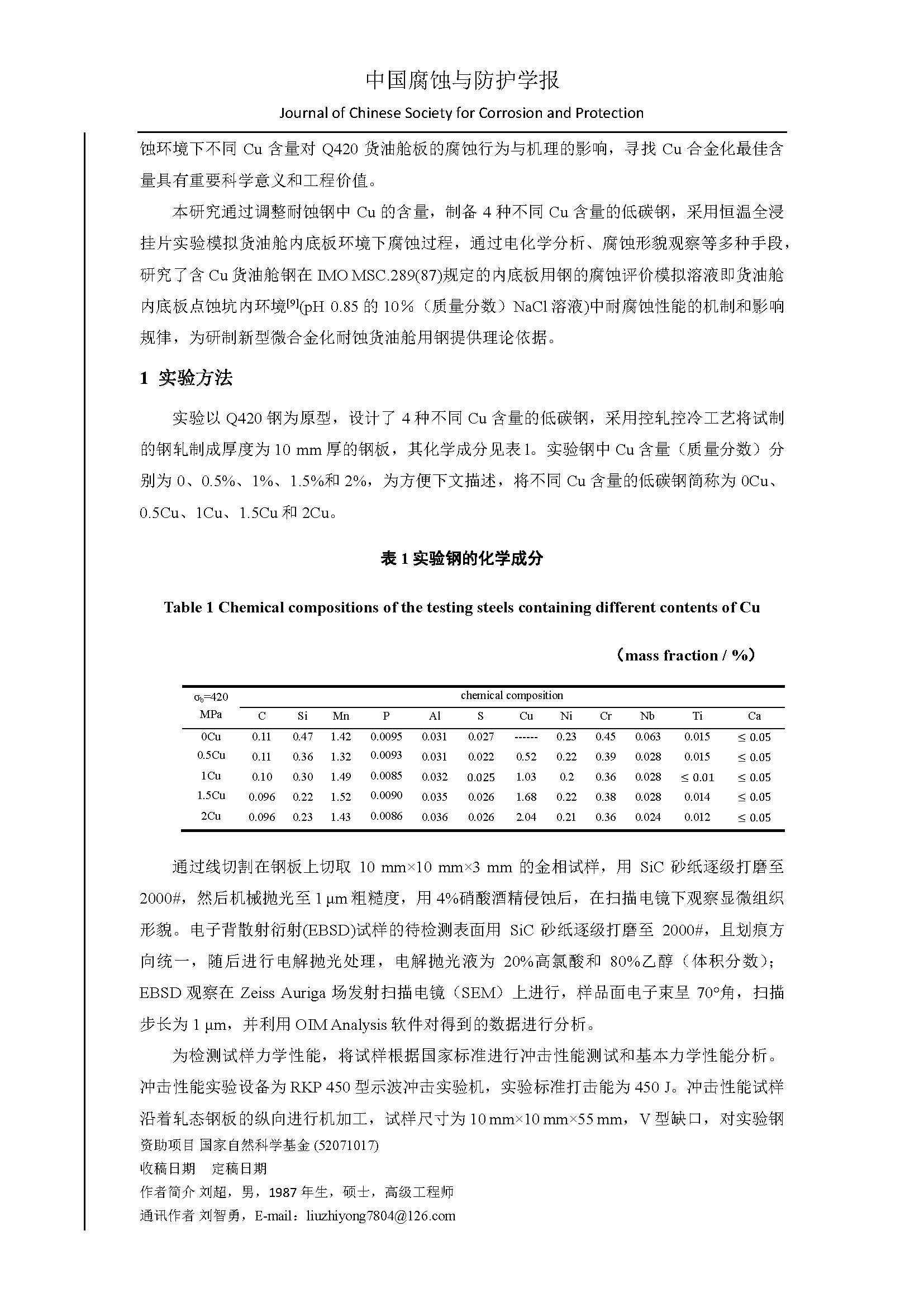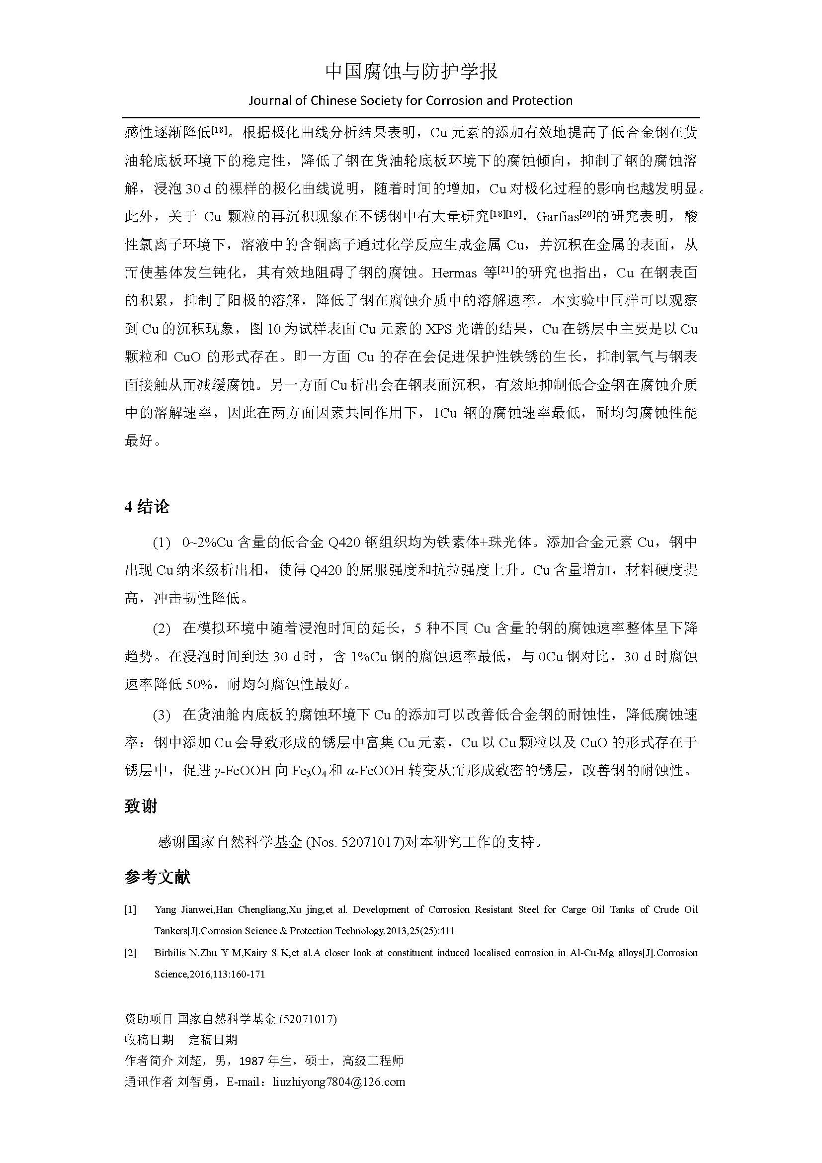 Cu 含量对 Q420 钢在货油舱内底板环境下腐蚀行为的影响