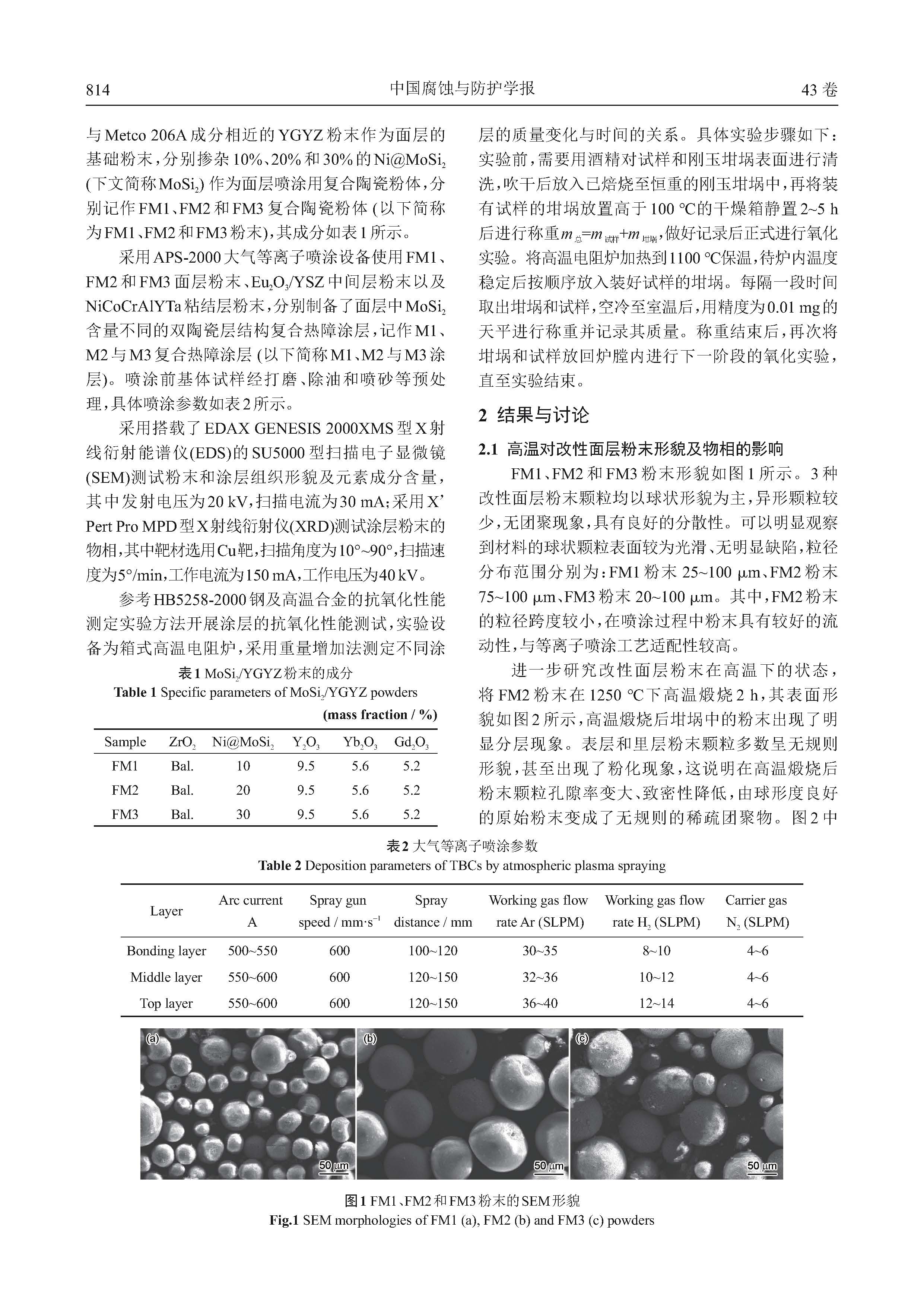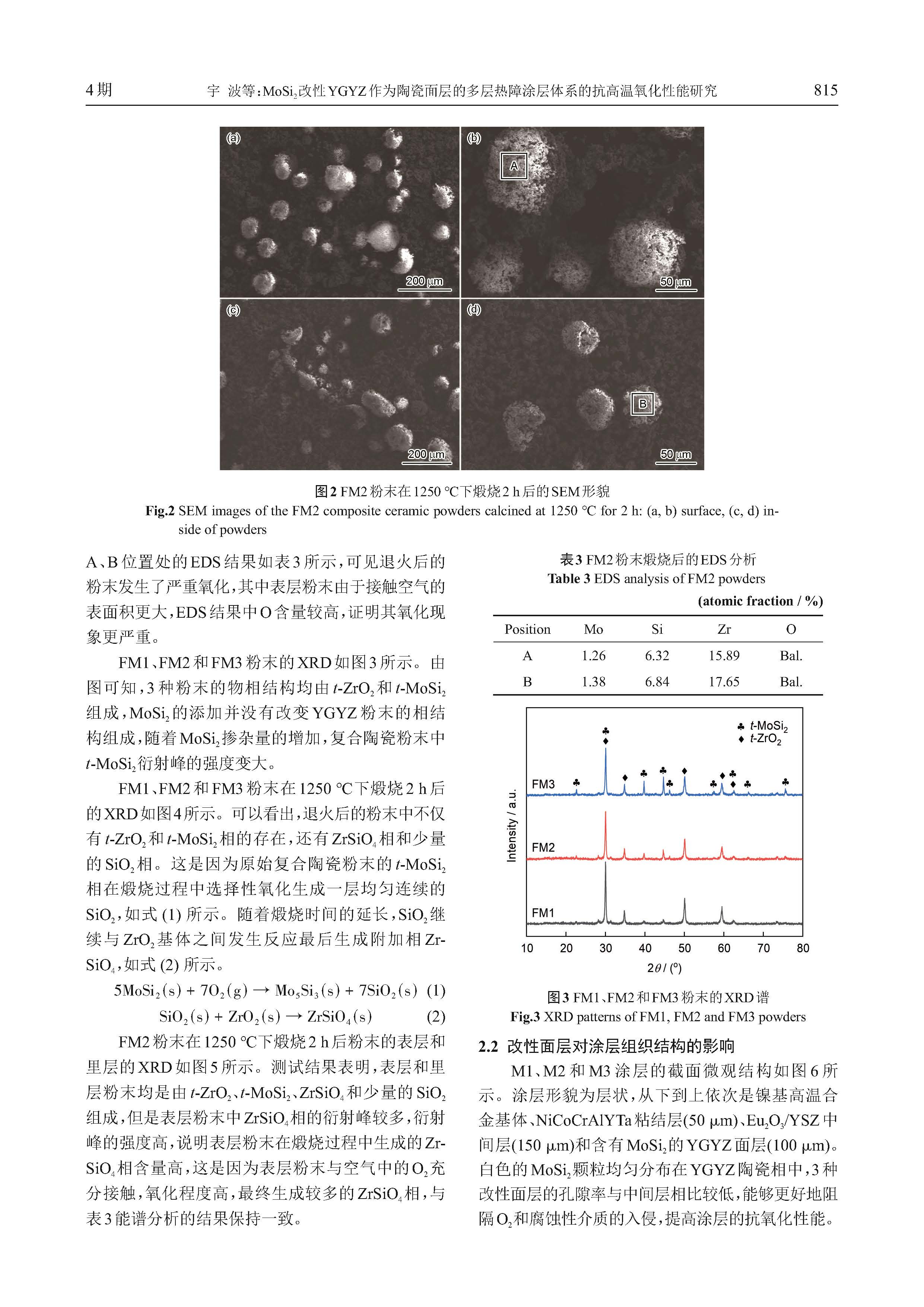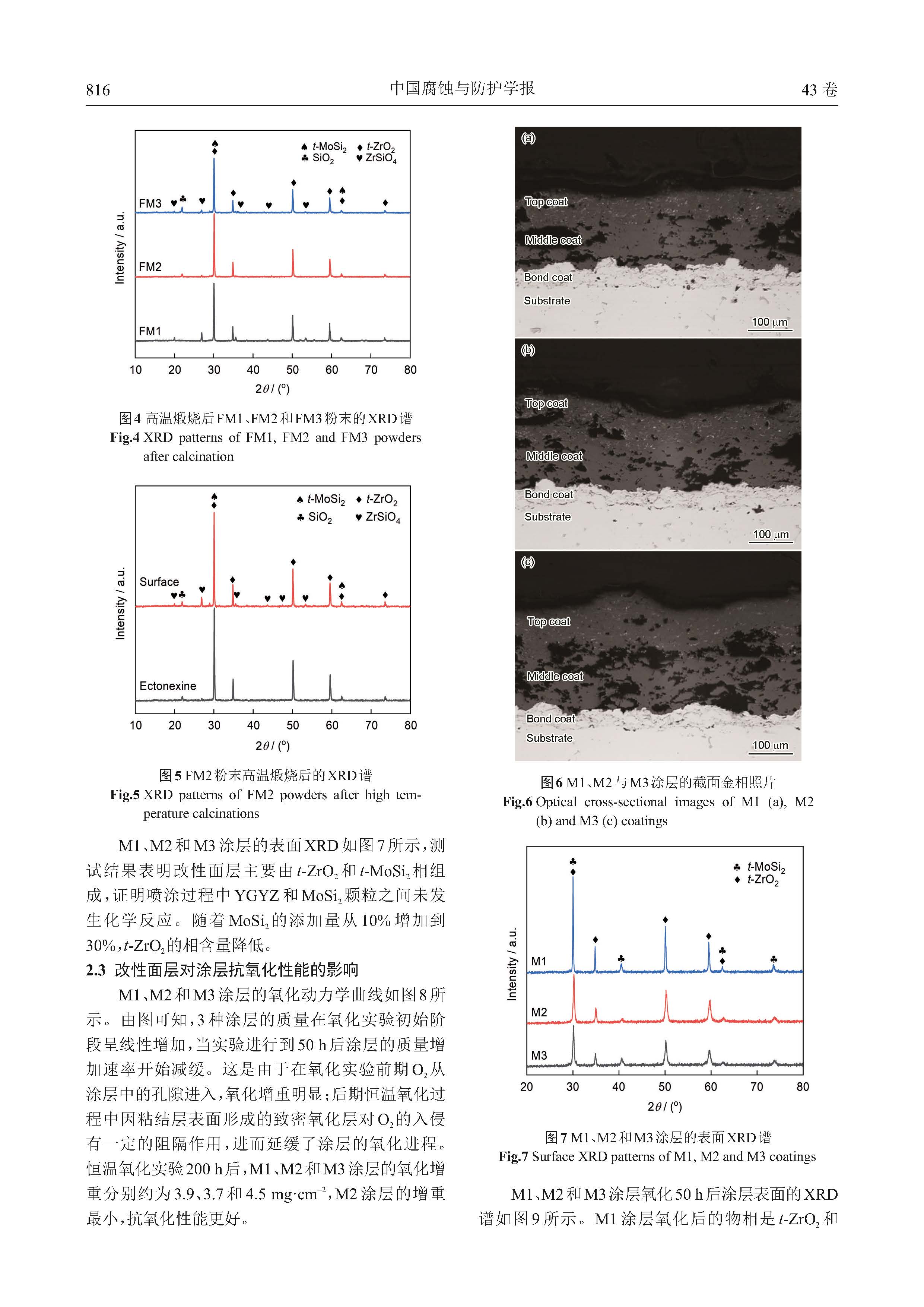 MoSi2 改性YGYZ作为陶瓷面层的多层热障涂层体系的抗高温氧化性能研究