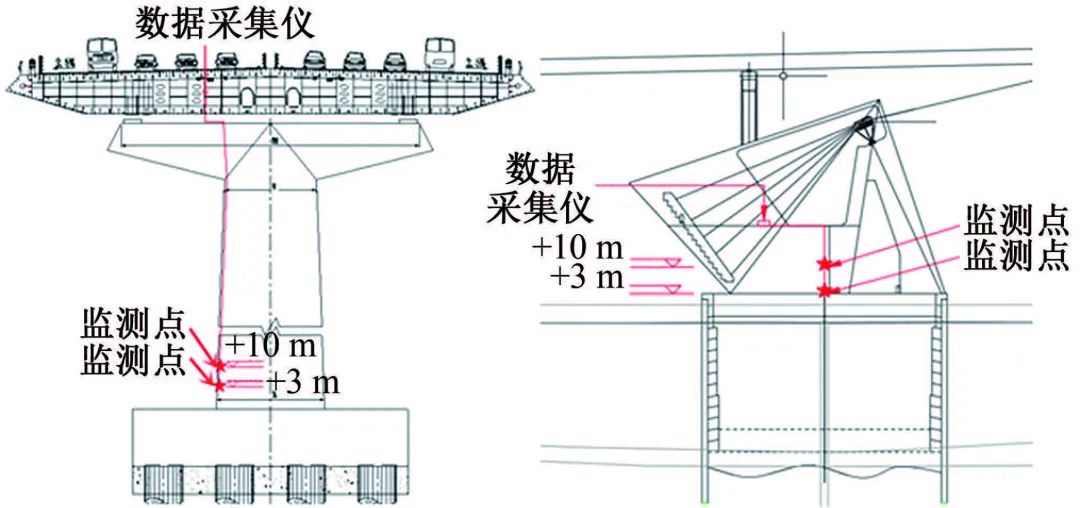 为便于以后采集设备安装维护及供电,数据采集系统置于监测点上方的箱梁或承台上,如图1所示。