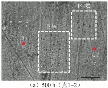 图5 在650 ℃/20 MPa的sCO2环境中腐蚀500 h与1000 h的800H合金表面EDS分析位置