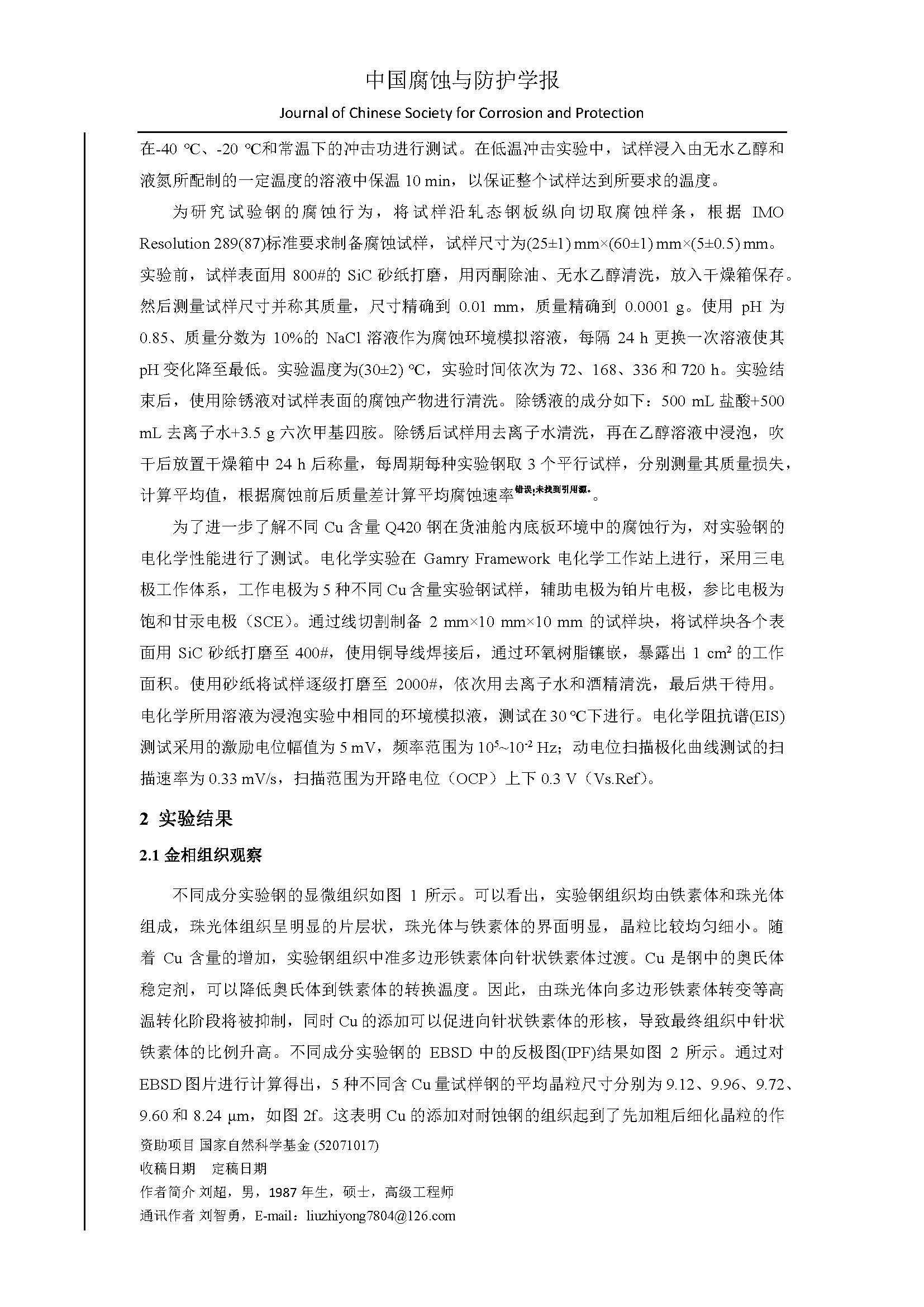 来源:中国腐蚀与防护学报