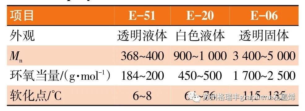 环氧树脂E-51(SM618)、环氧树脂E-06(NPES901):工业级,三木集团;环氧树脂E-20(SM607):工业级,南亚集团;3种环氧树脂基本技术参数如表1所示。