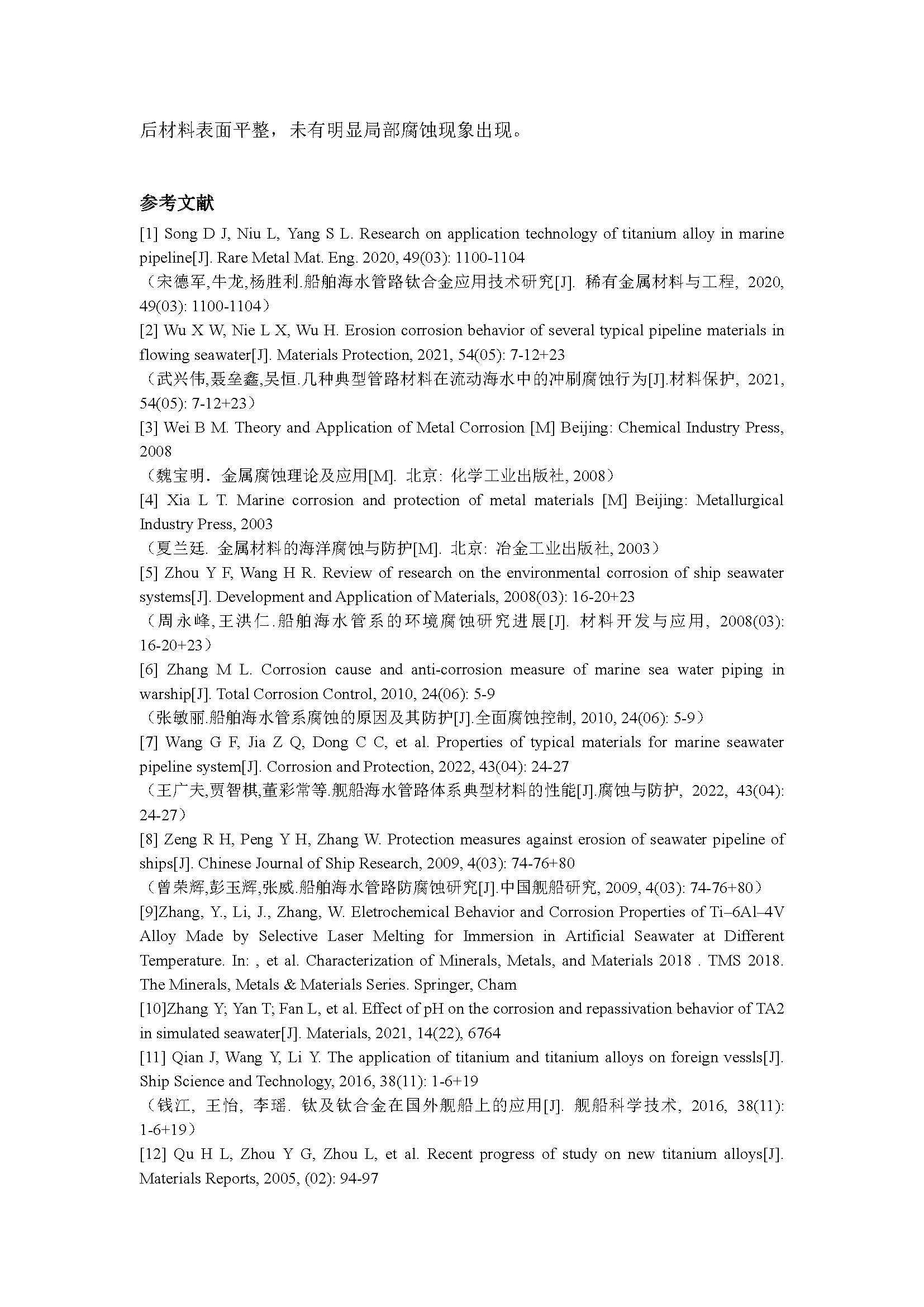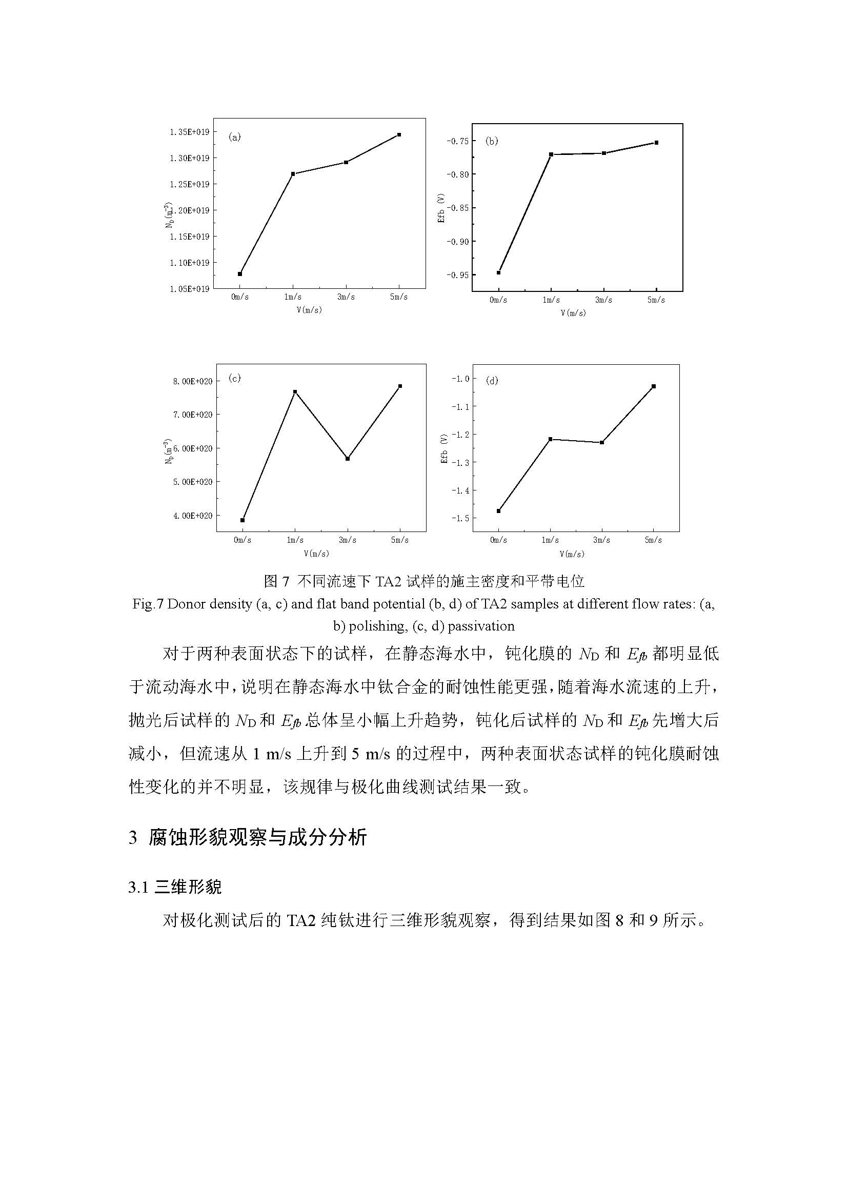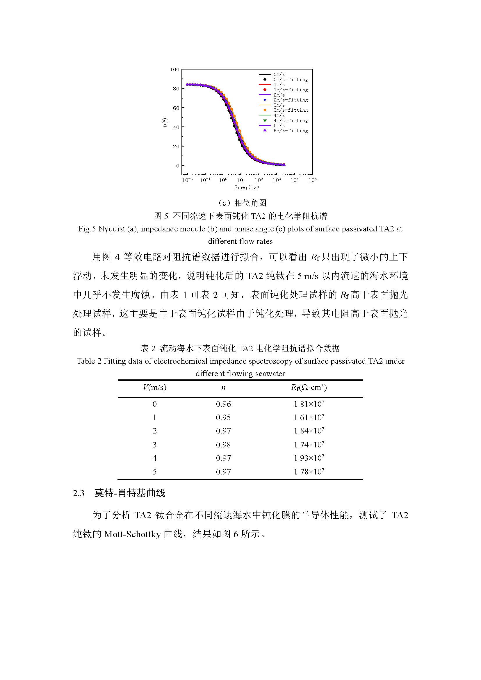 流动海水冲刷下TA2纯钛管路钝化膜腐蚀特性研究