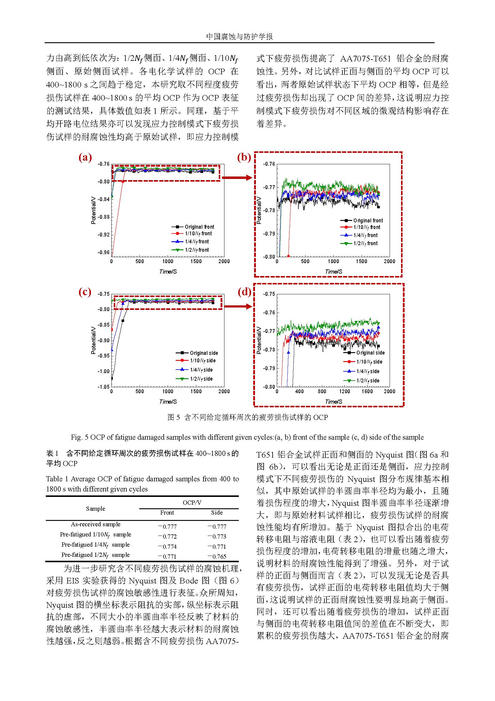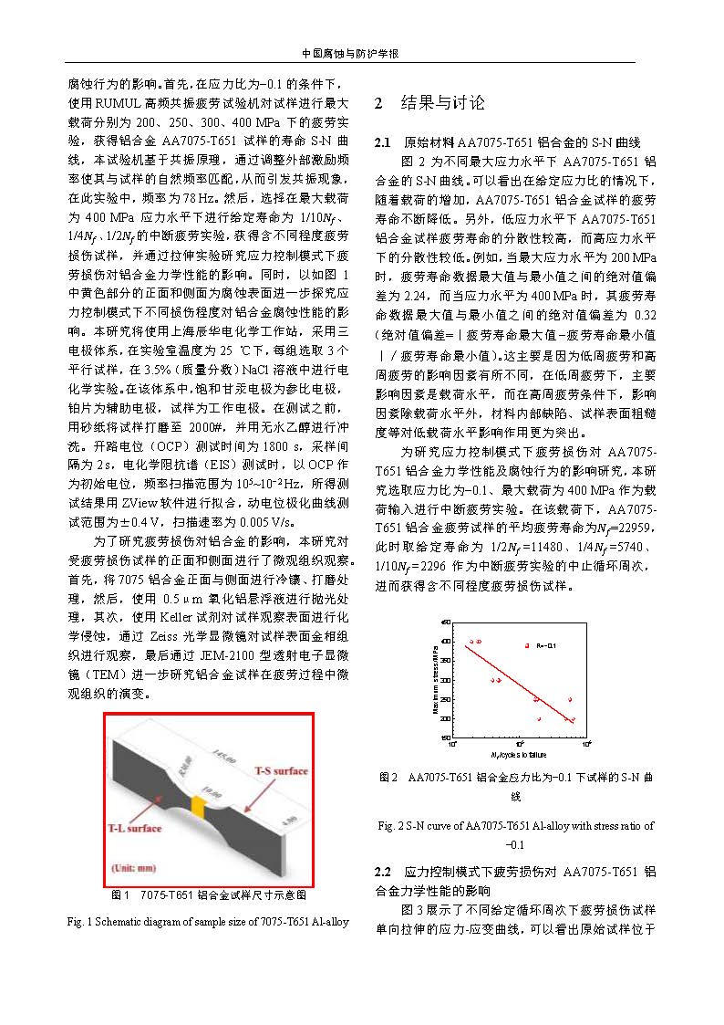应力控制模式下疲劳损伤对AA7075-T651铝合金腐蚀行为影响的研究