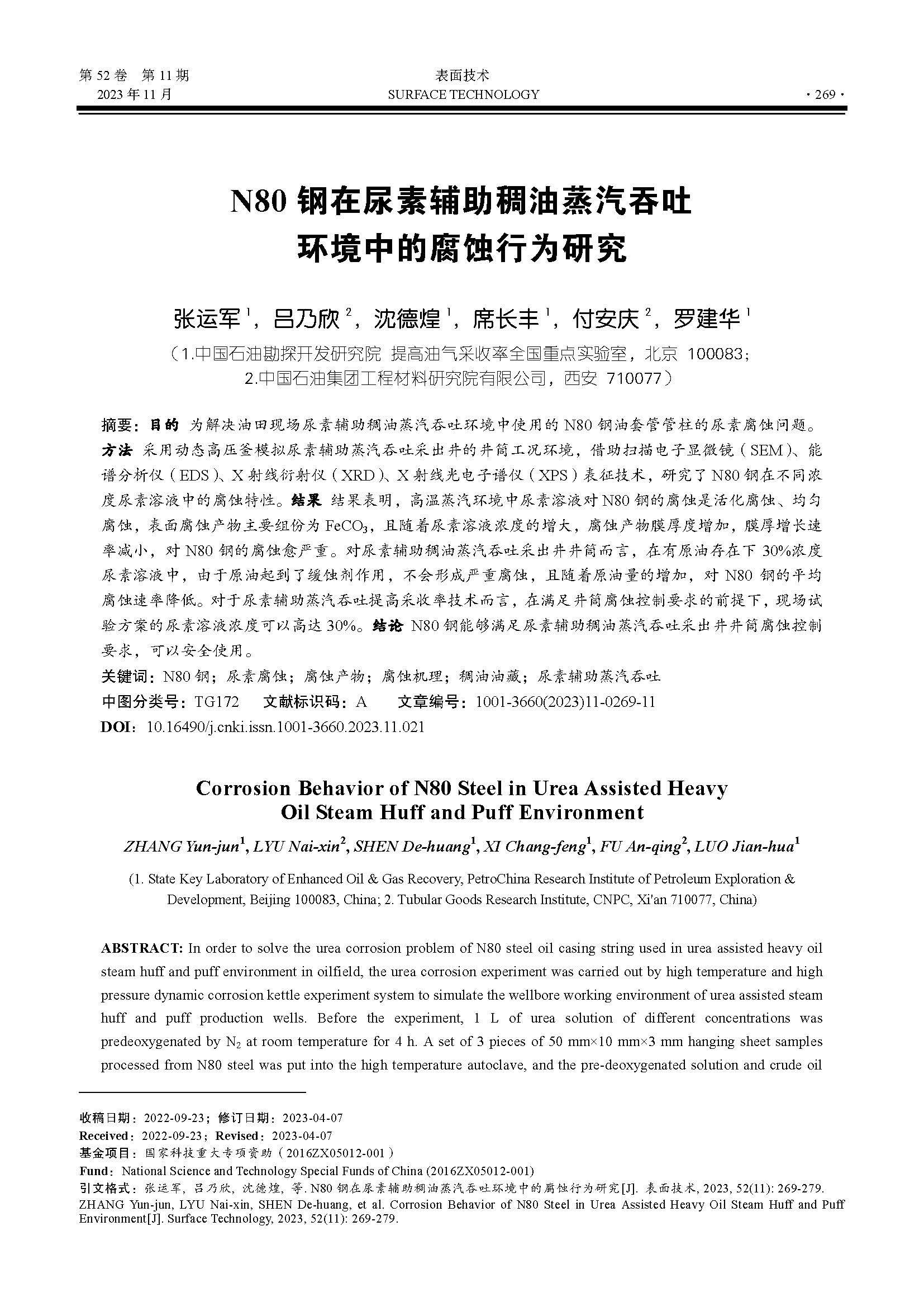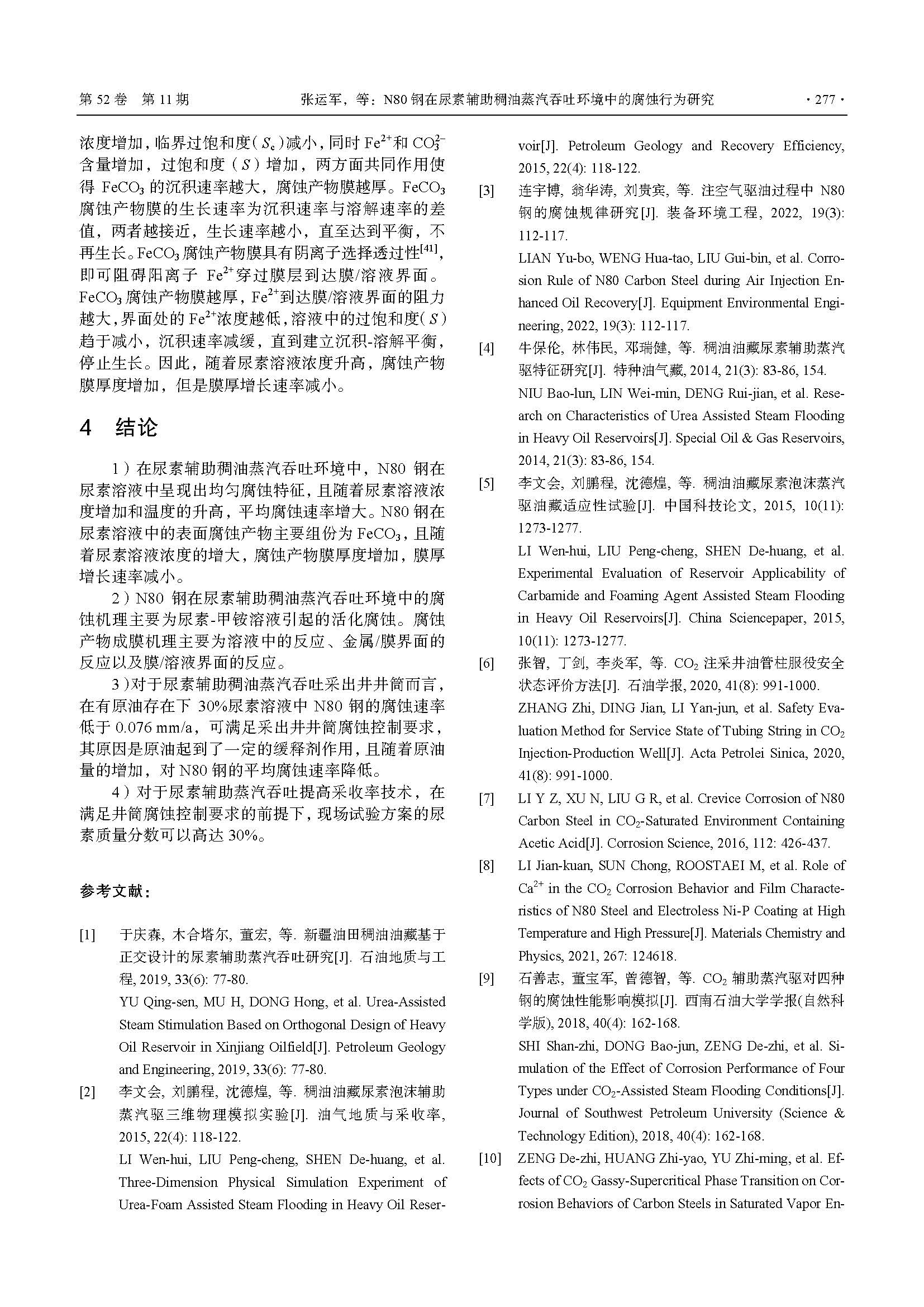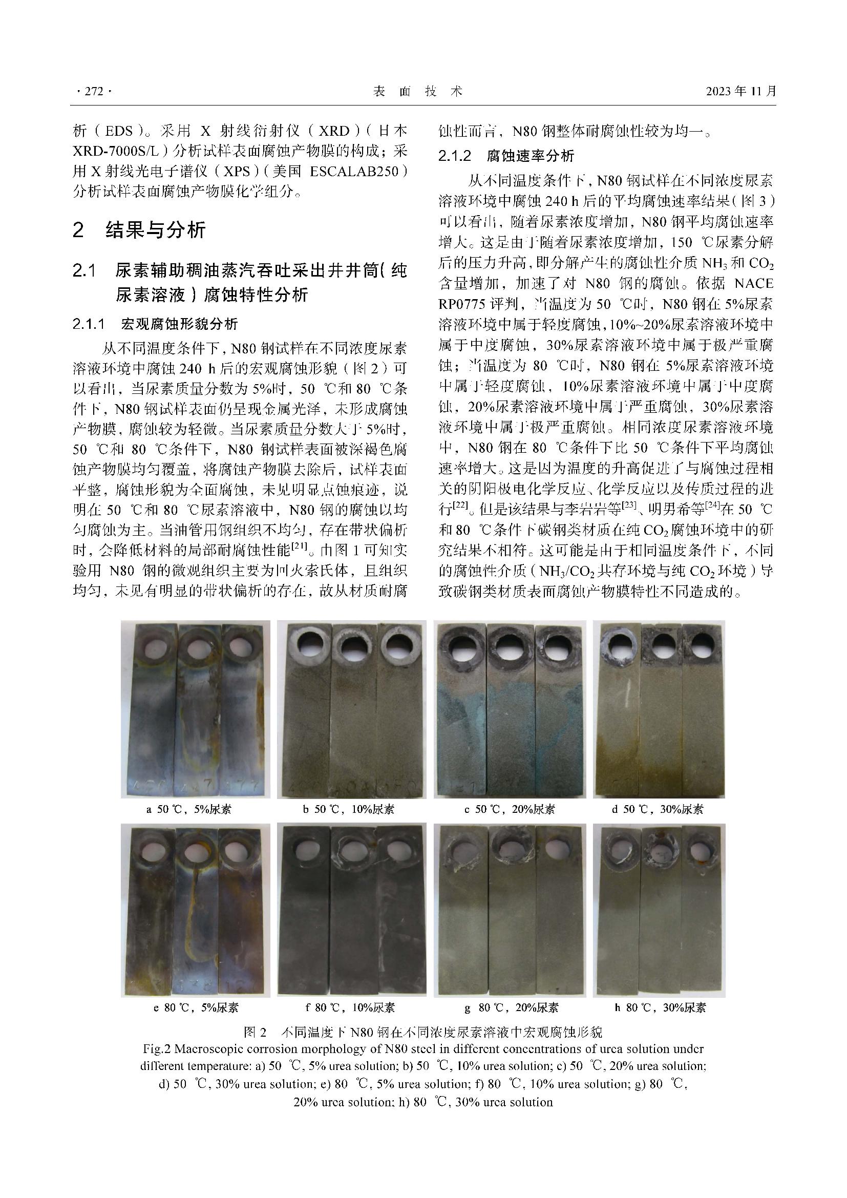 N80钢在尿素辅助稠油蒸汽吞吐环境中的腐蚀行为研究