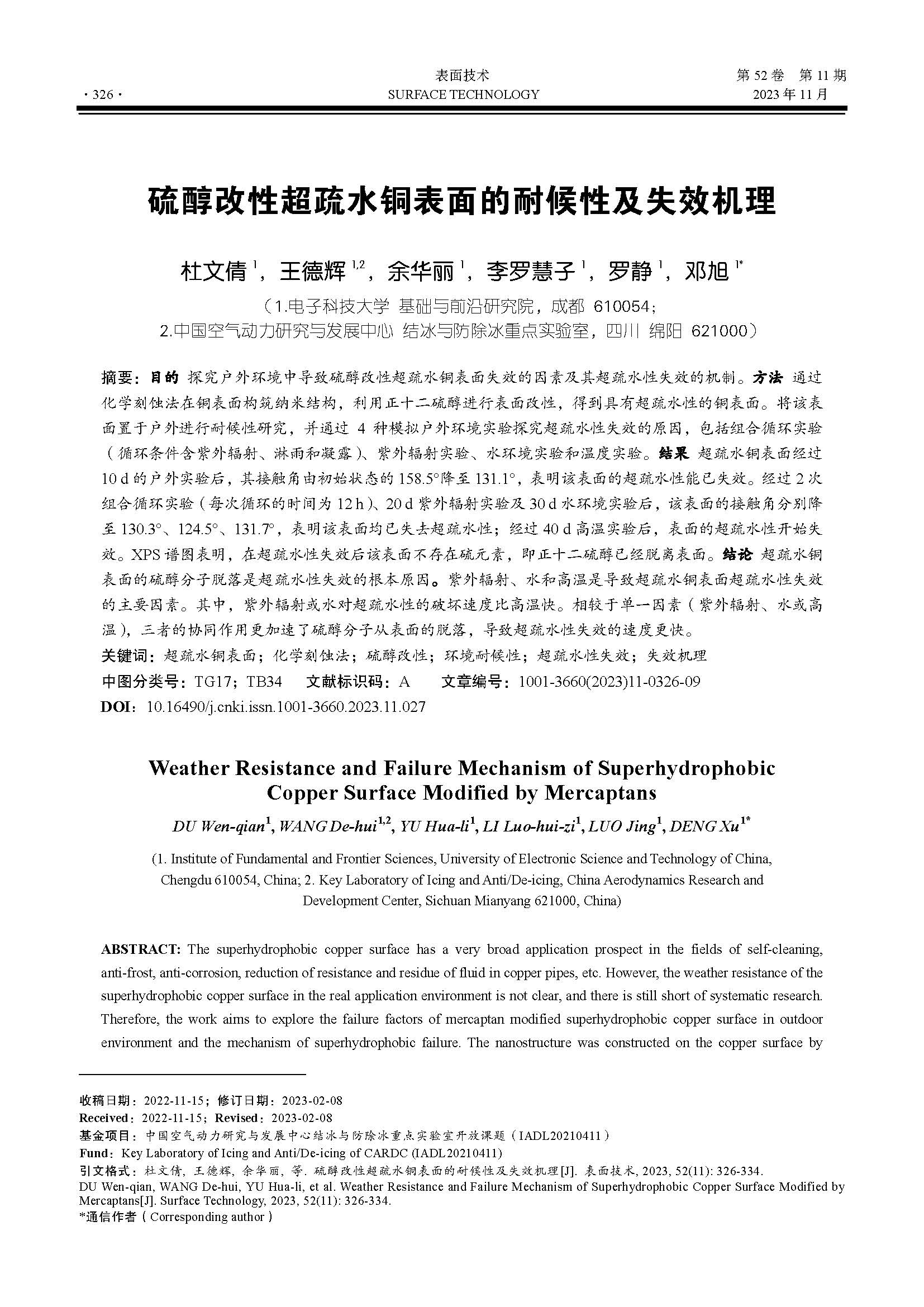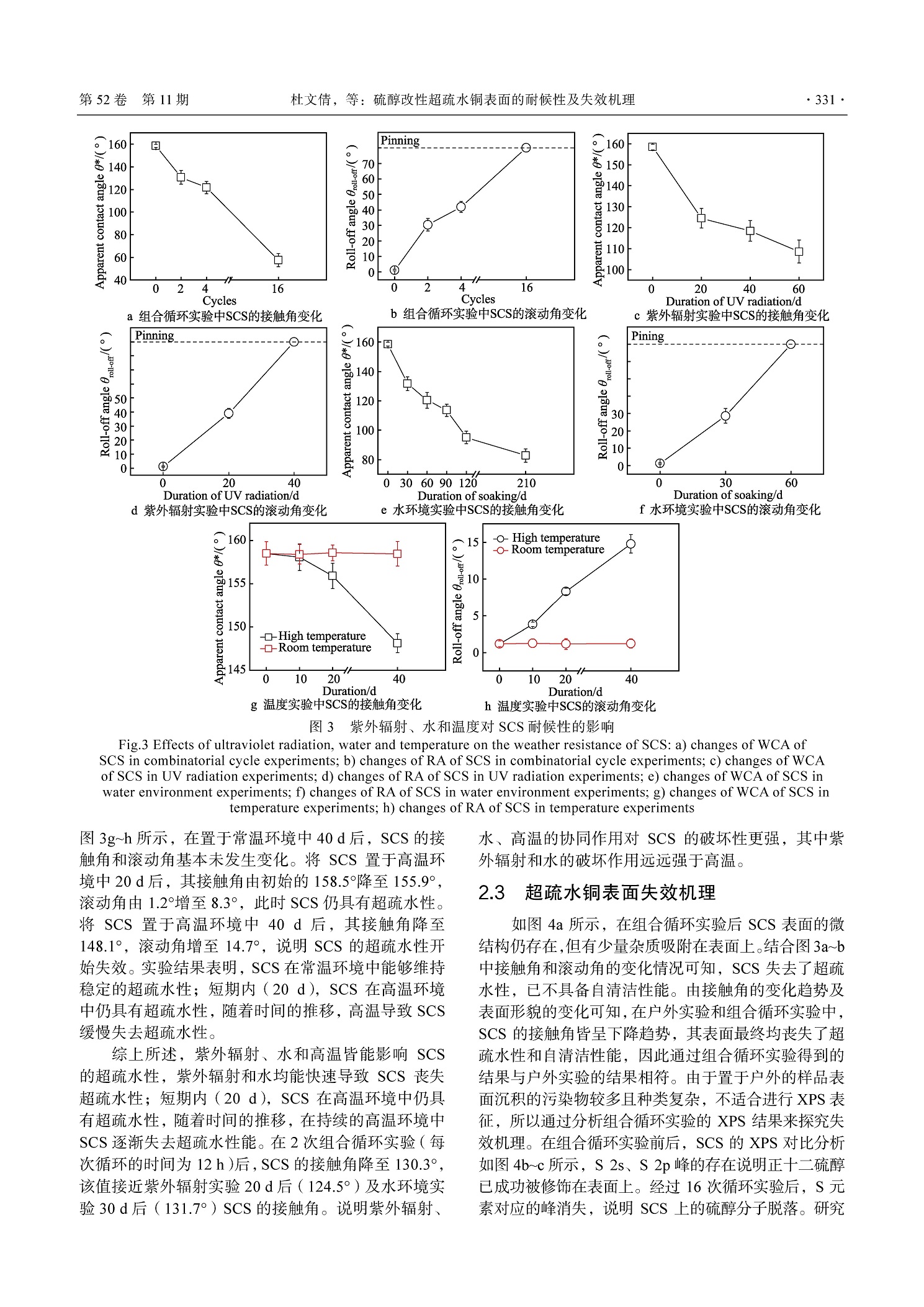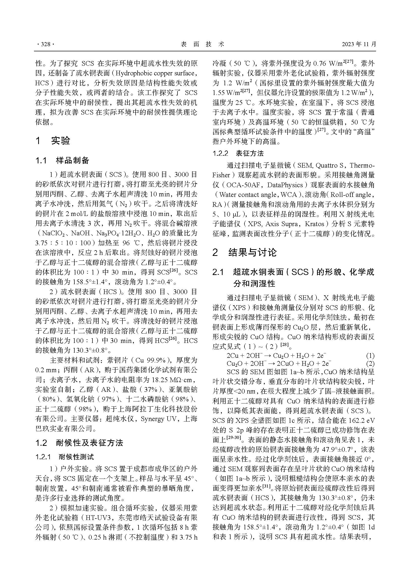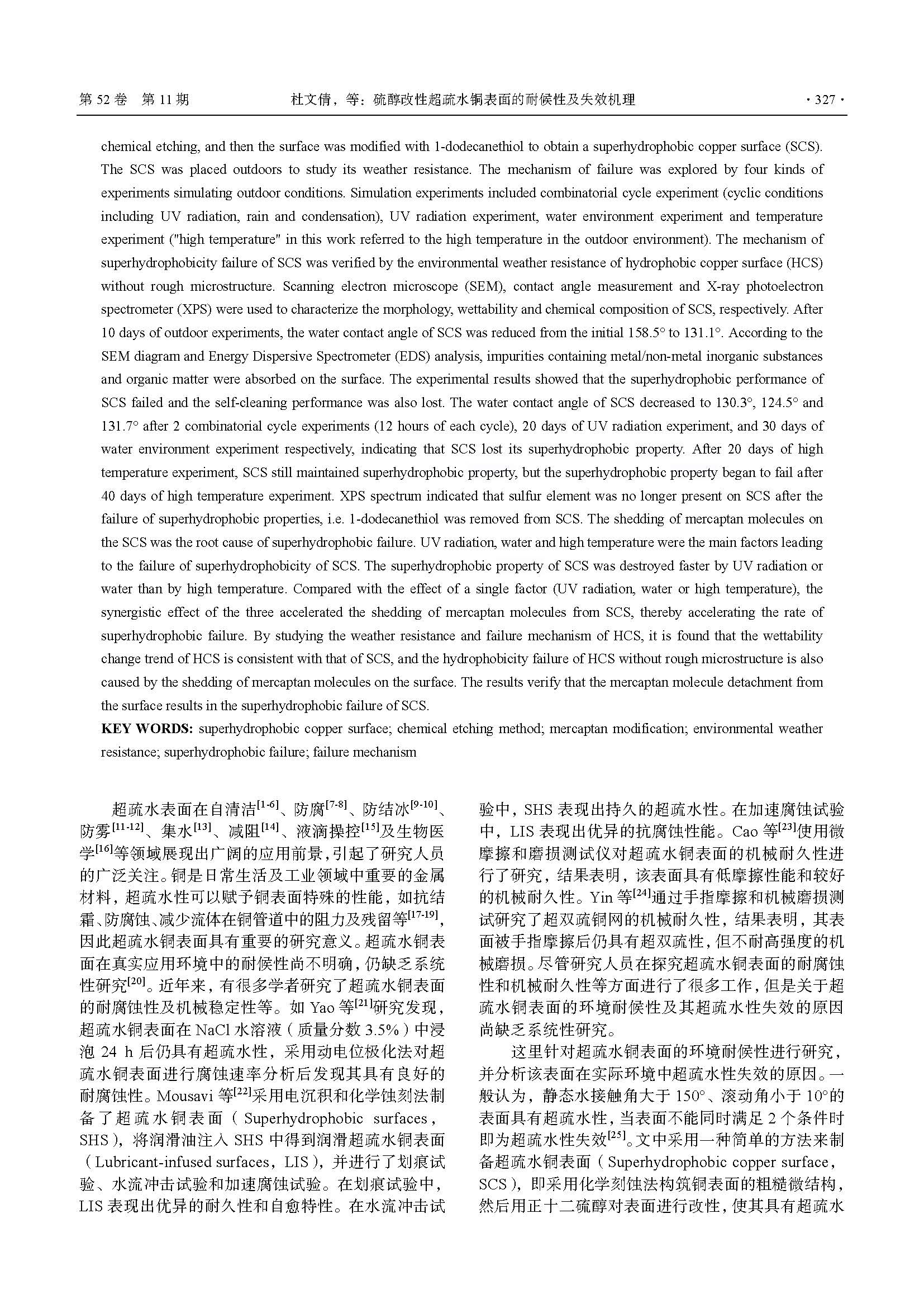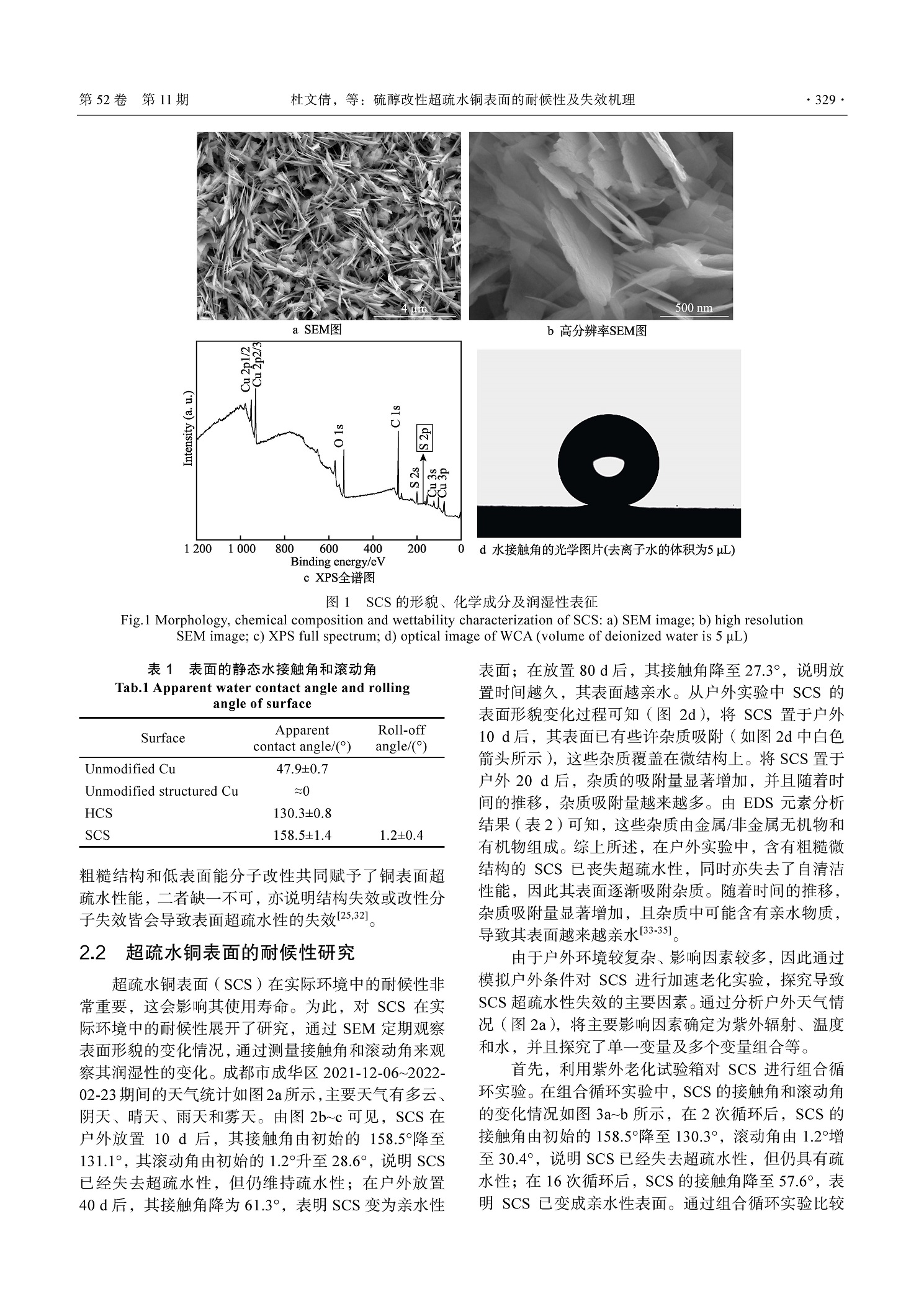 硫醇改性超疏水铜表面的耐候性及失效机理