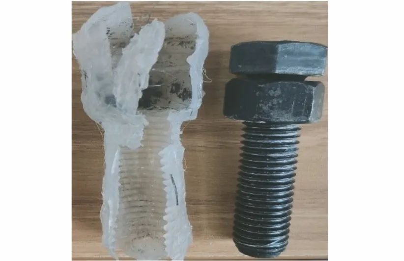 3 涂层可整体剥离,螺栓表面不残留旧涂层,如图9所示。这完全避免了更换涂层时,新旧涂层的层间剥离与新旧涂层结合不紧密的问题,使更换更方便。