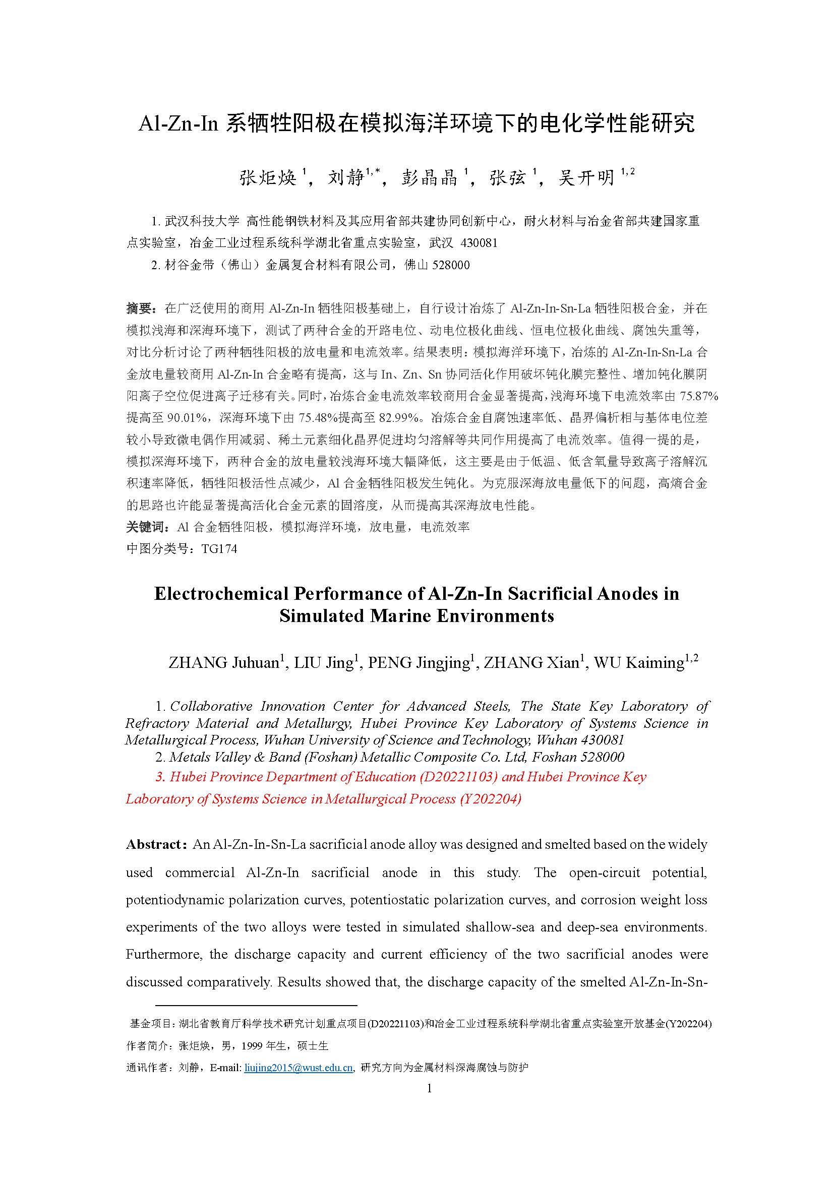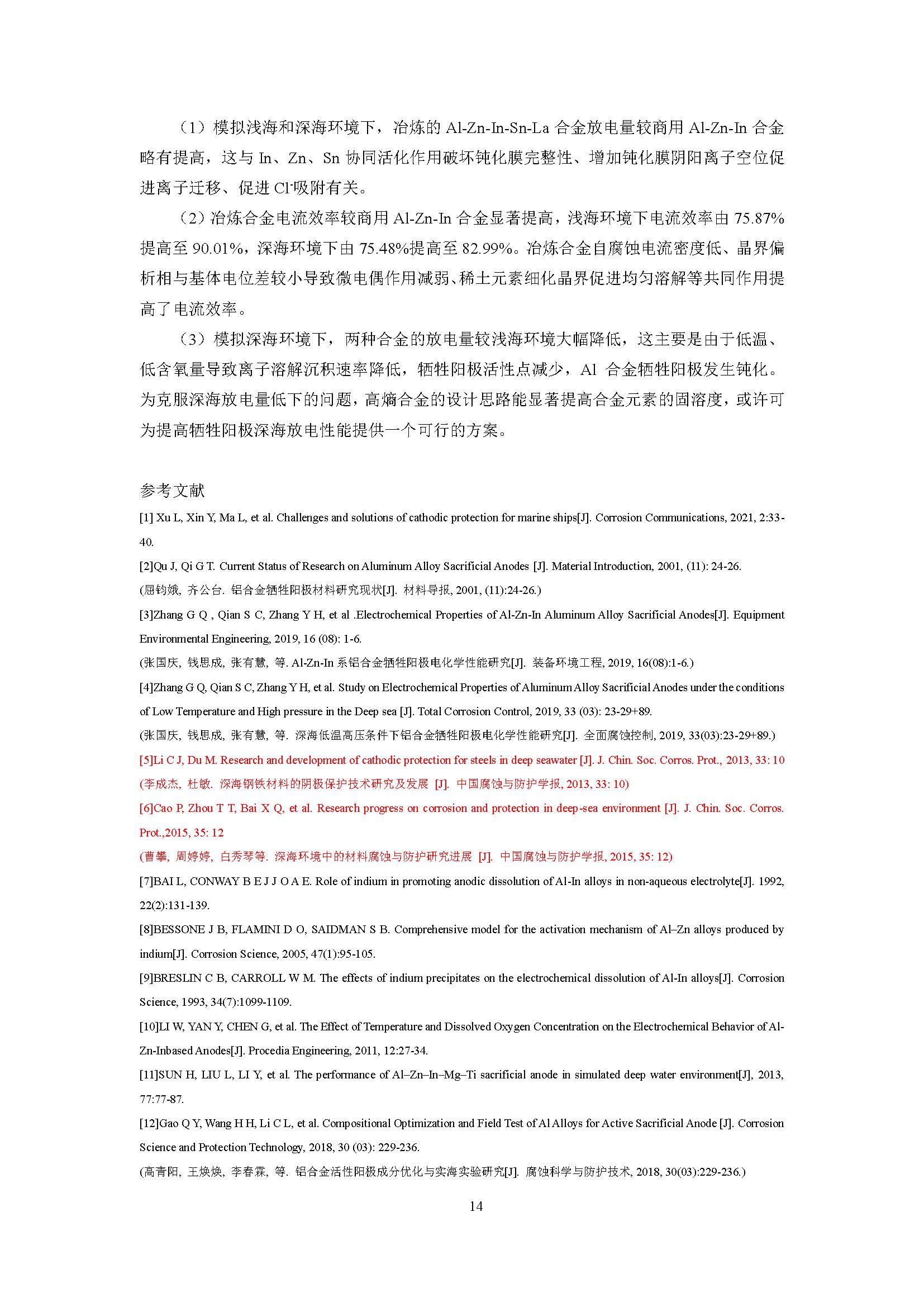 Al-Zn-In系牺牲阳极在模拟海洋环境下的电化学性能研究