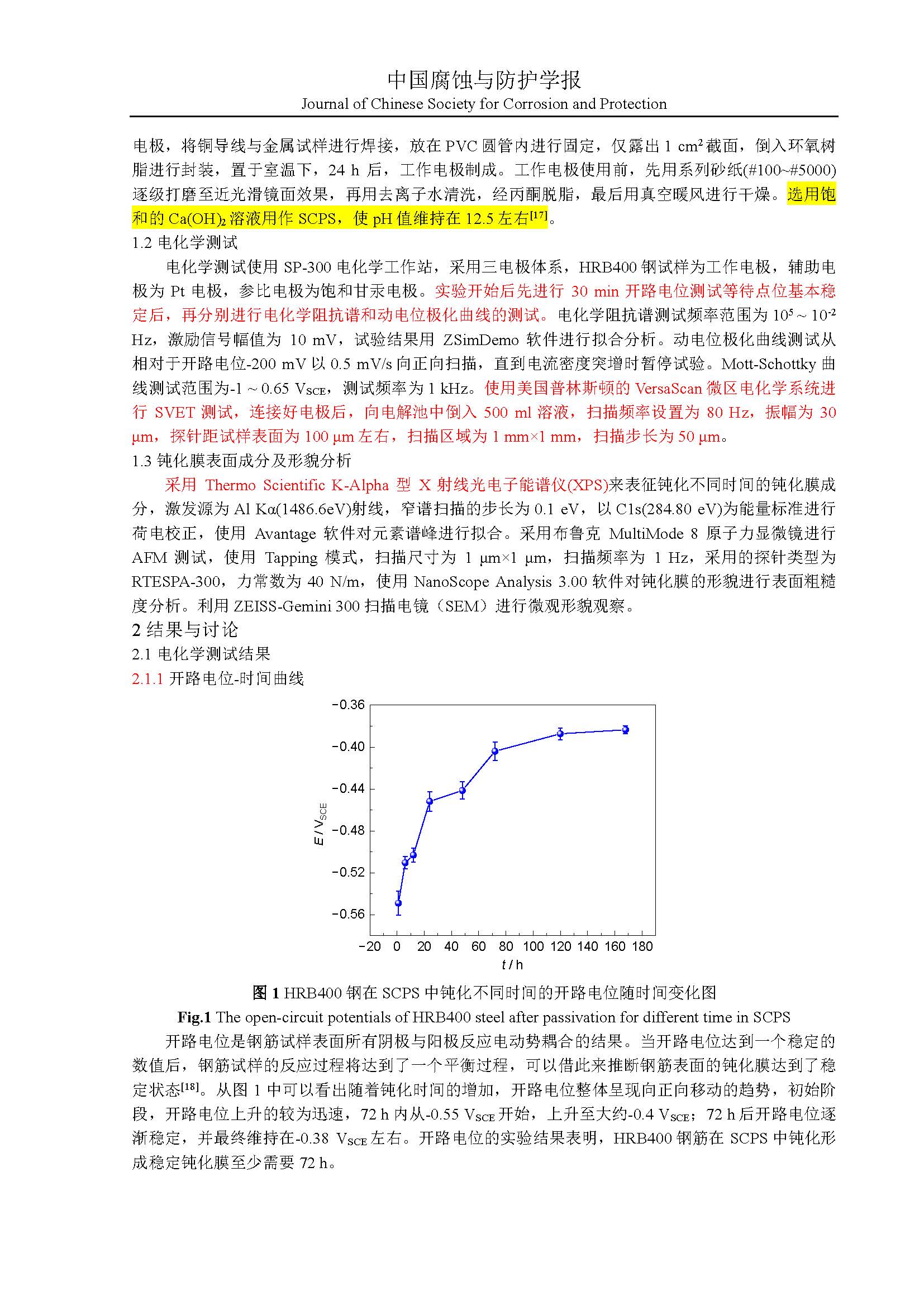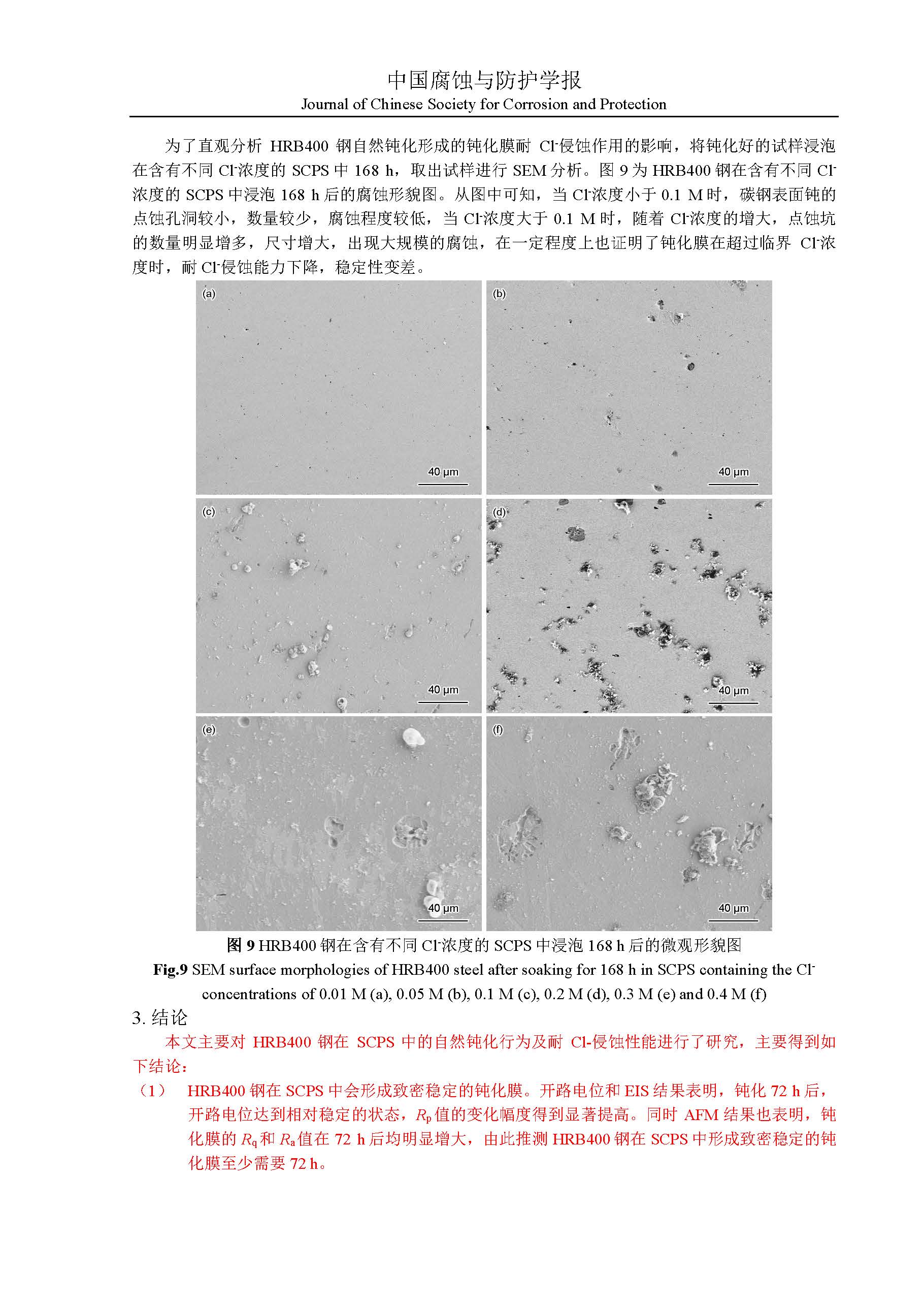 HRB400钢在模拟混凝土孔隙液中的自然钝化行为及耐蚀性能的研究