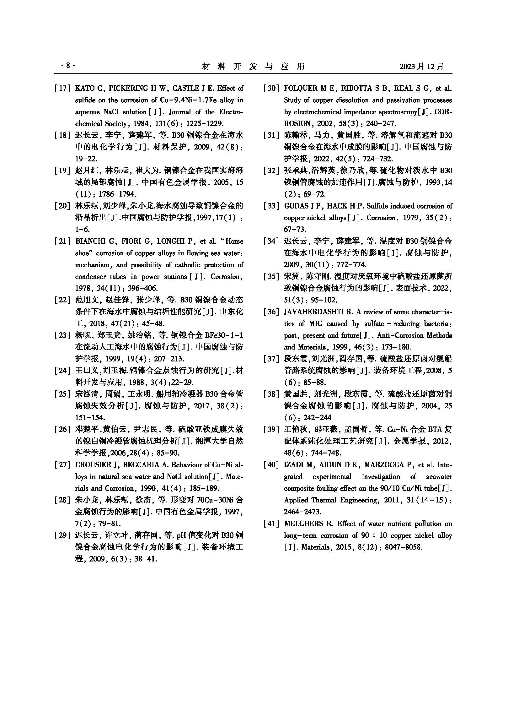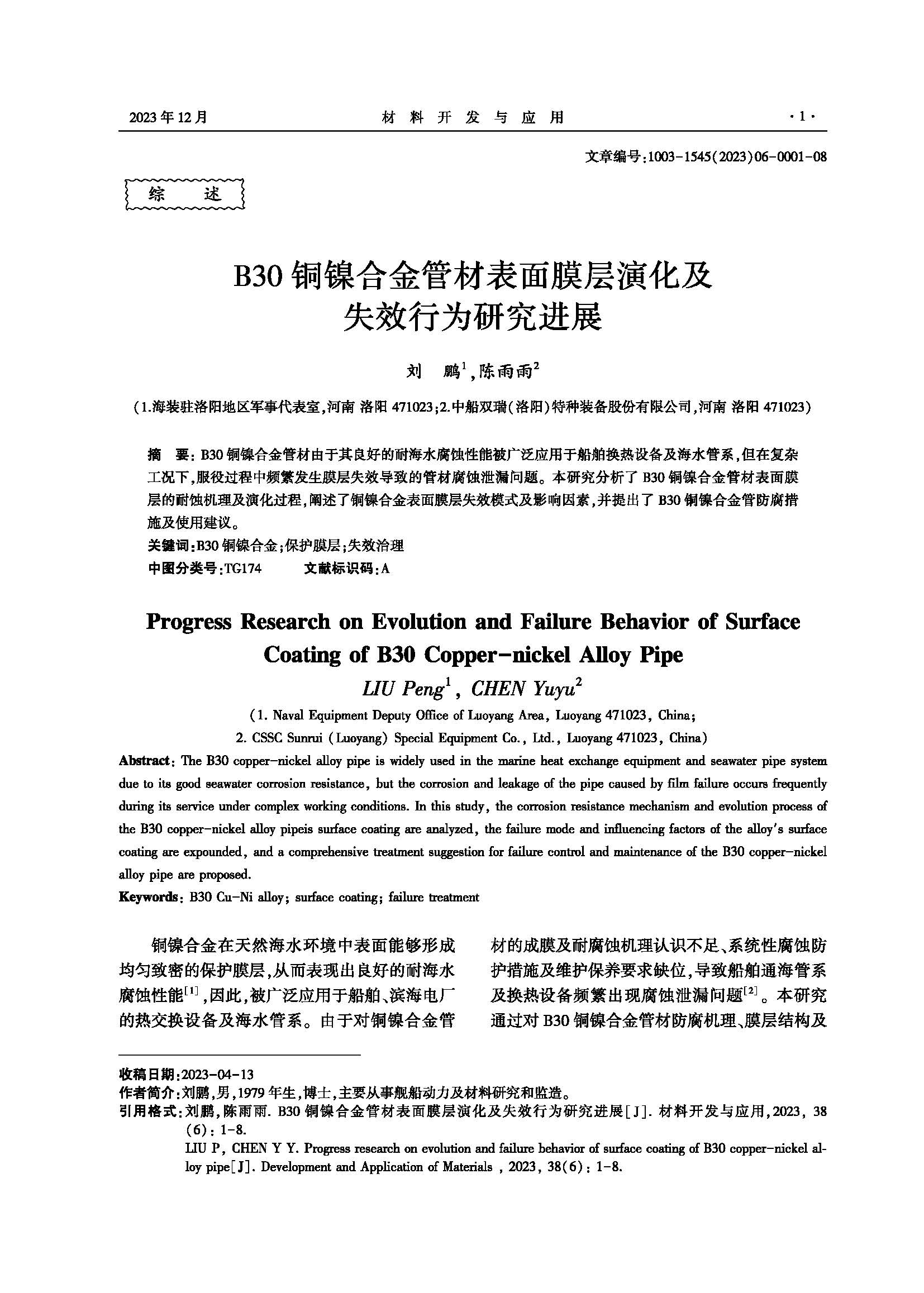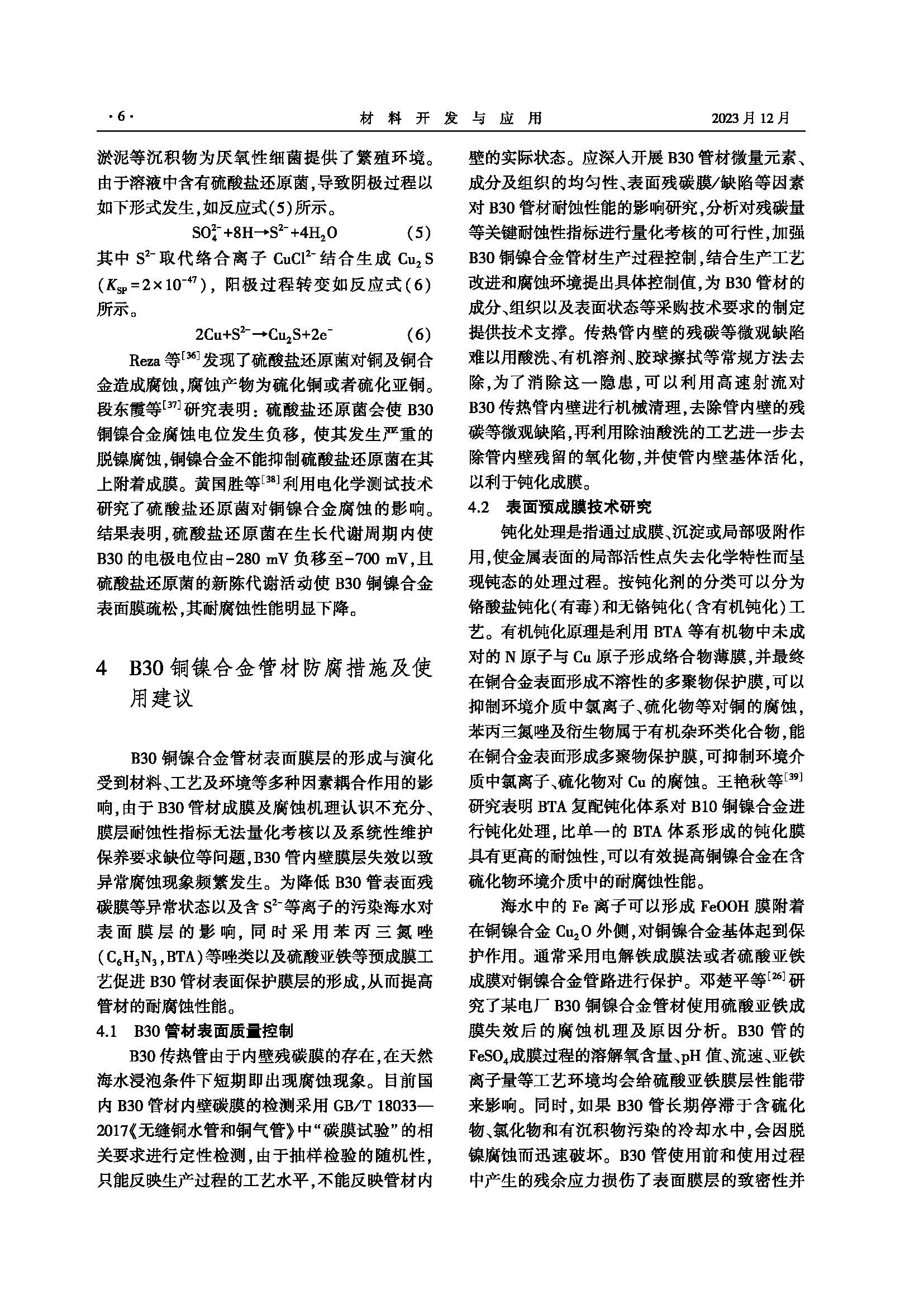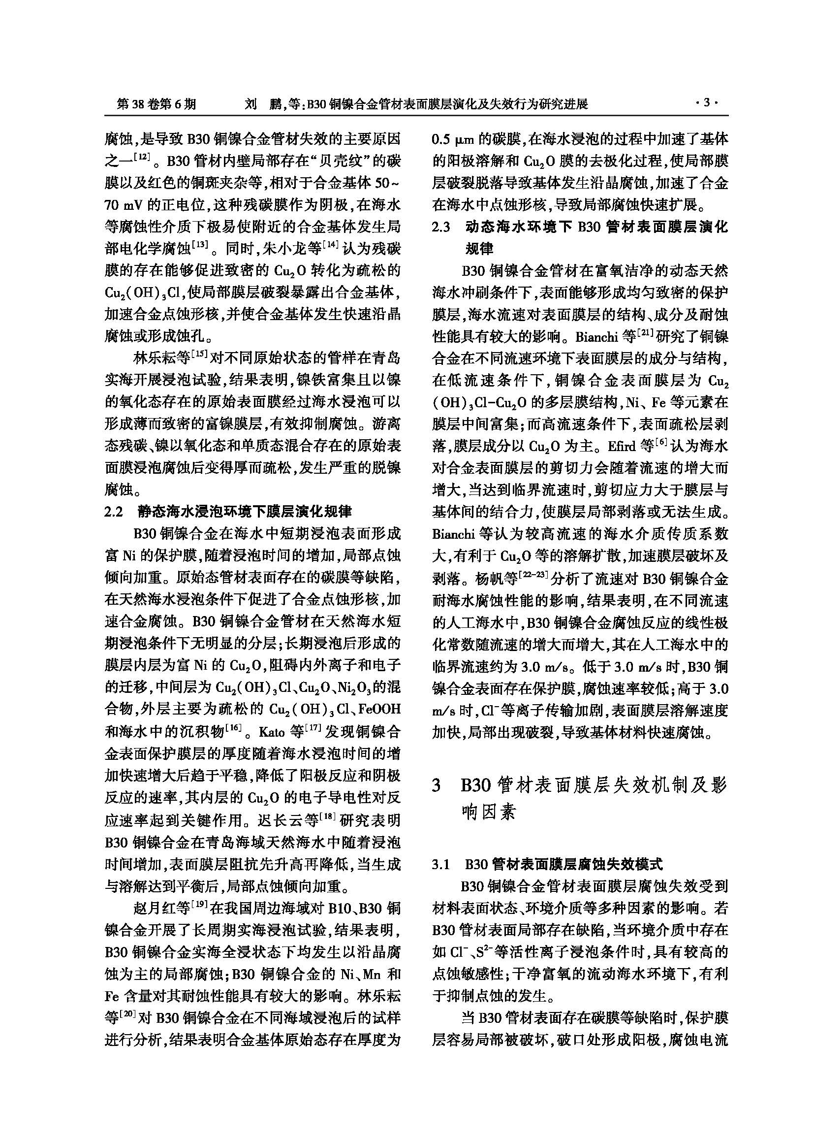 B30铜镍合金管材表面膜层演化及失效行为研究进展