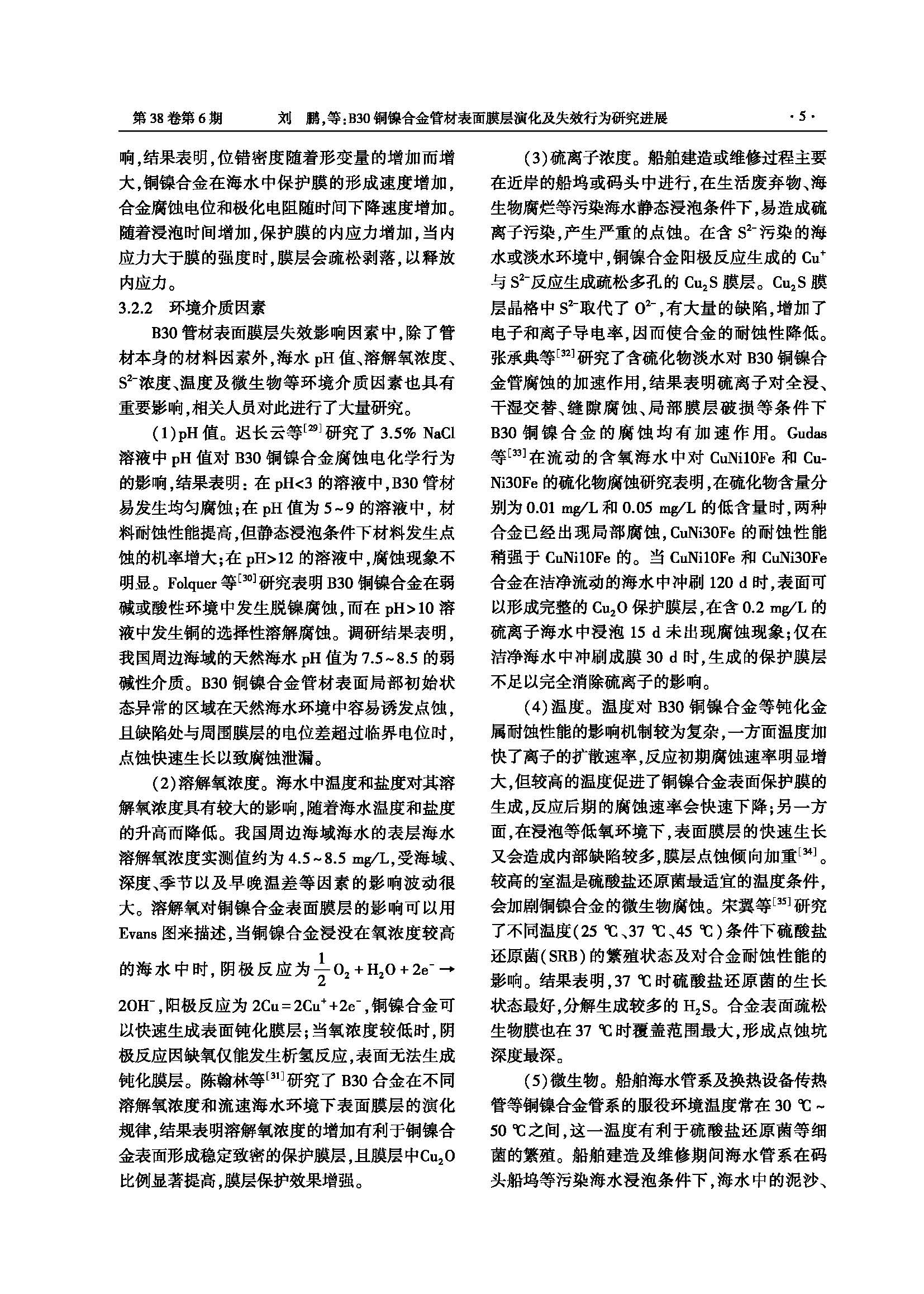 溶解氧和流速对B30铜镍合金在海水中成膜的影响