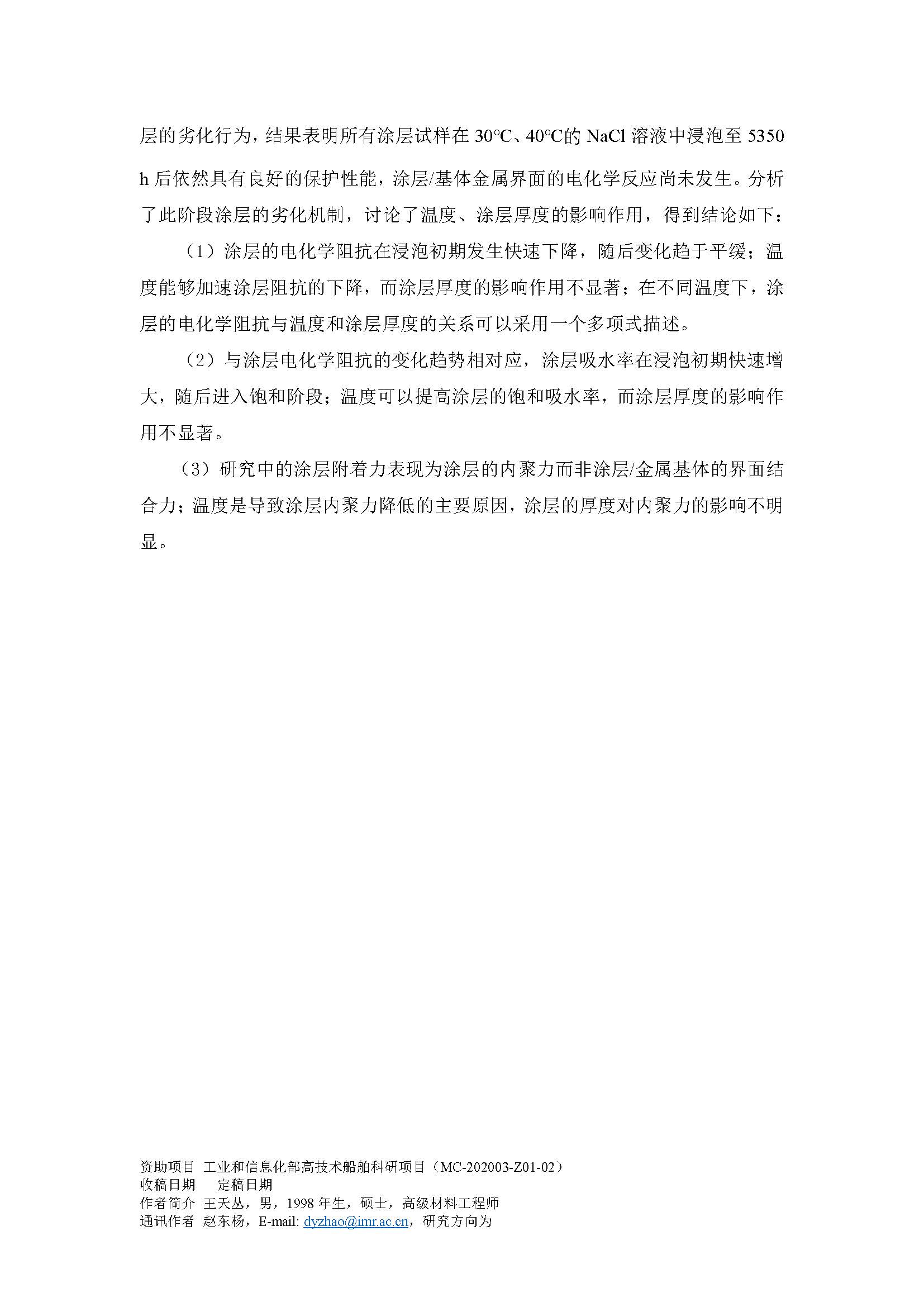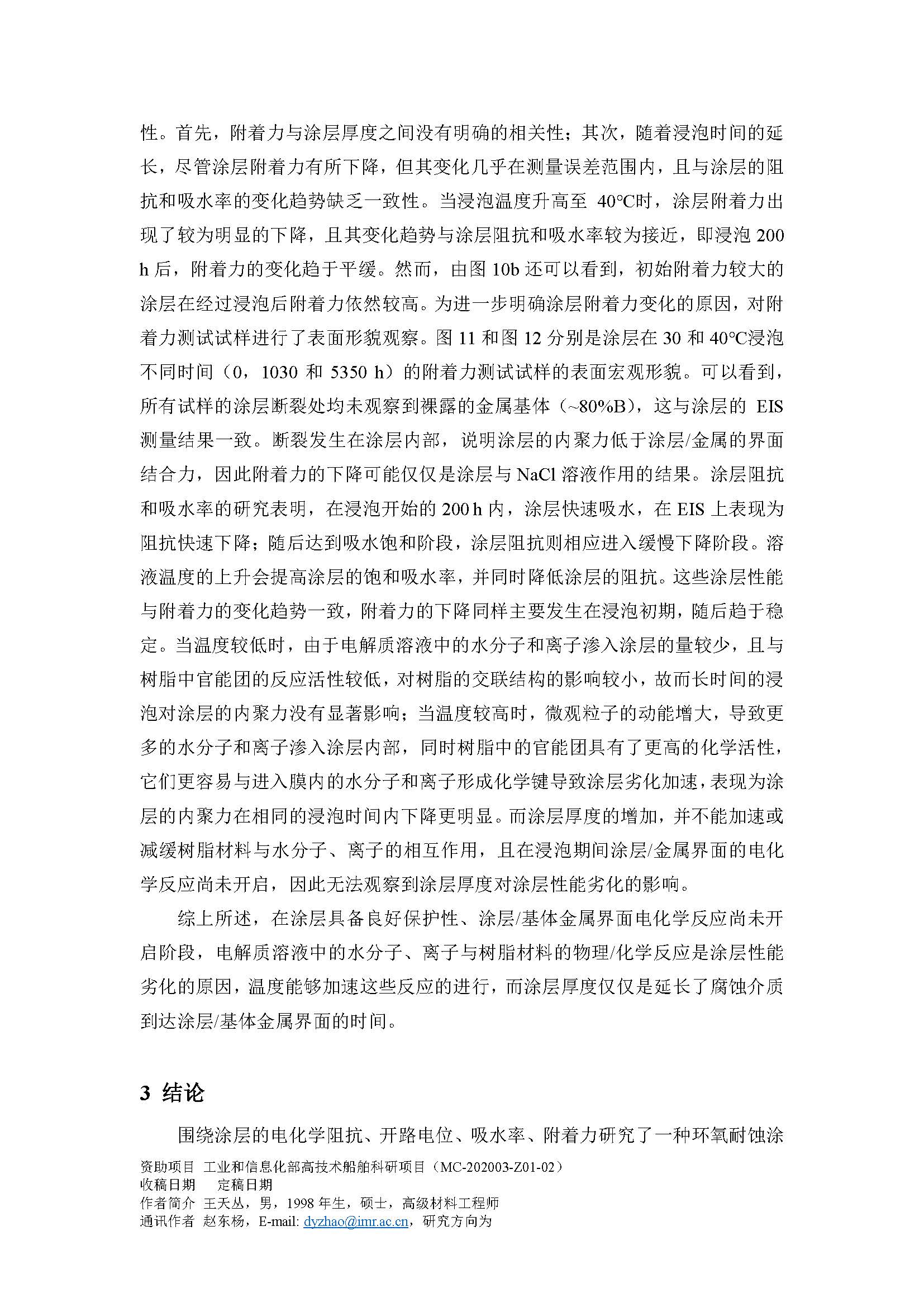 一种环氧耐蚀涂层在NaCl溶液中的劣化行为研究