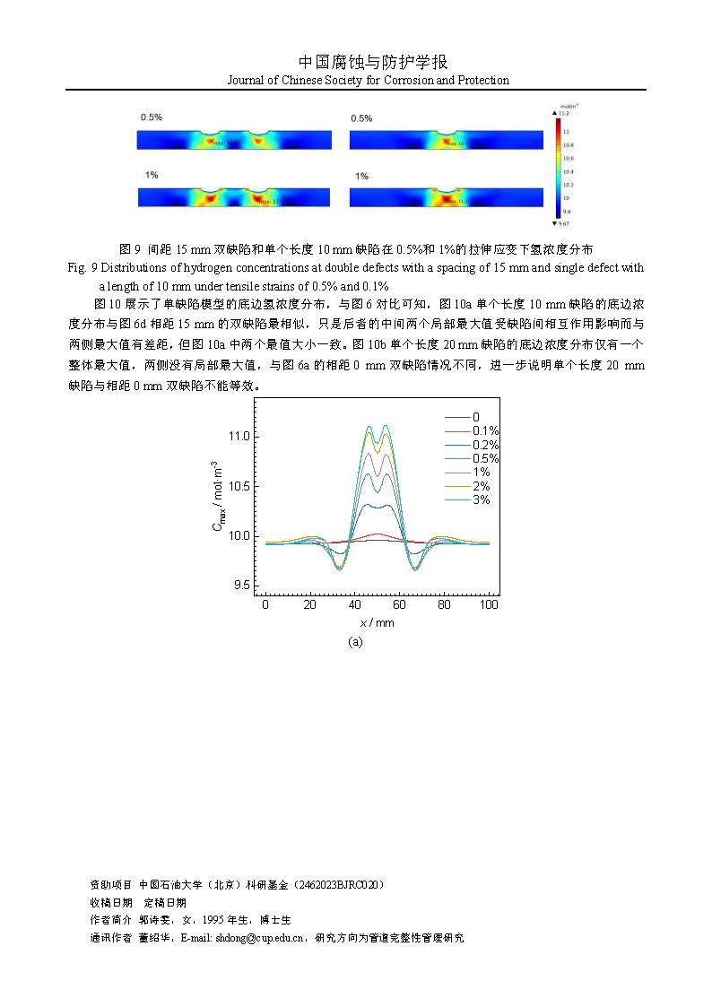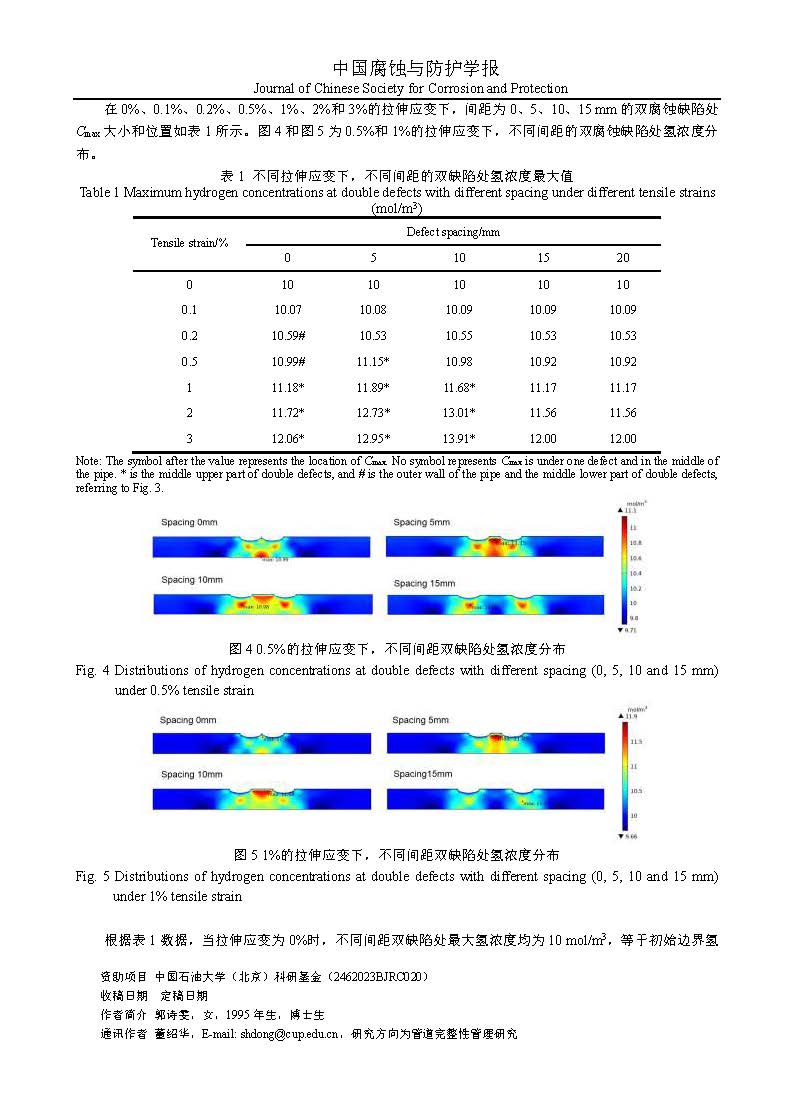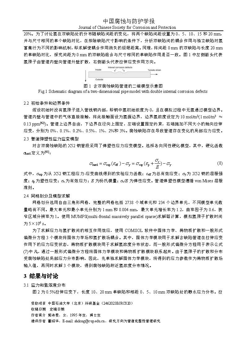 含双腐蚀缺陷管道的氢浓度分布模拟