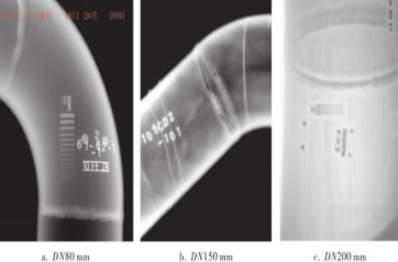 图2 DN80,DN150和DN200 mm管道的DR检测照片