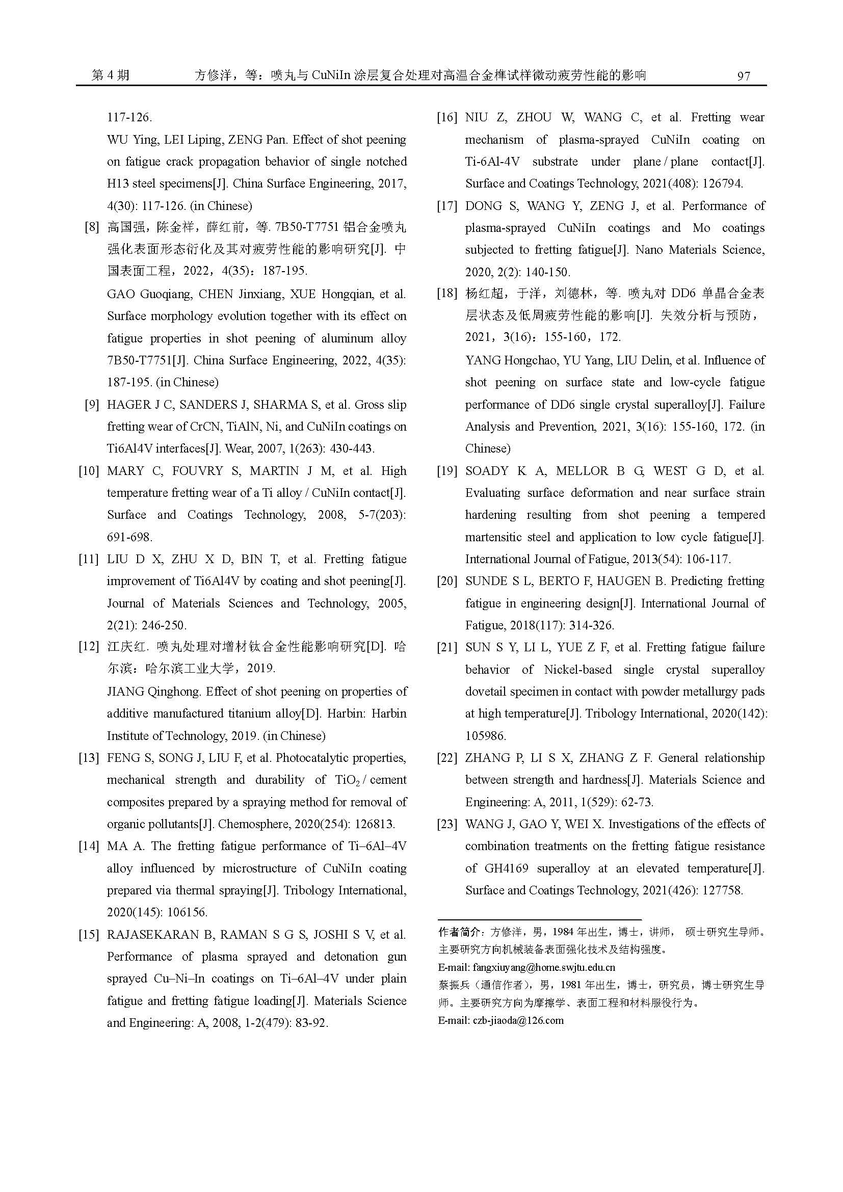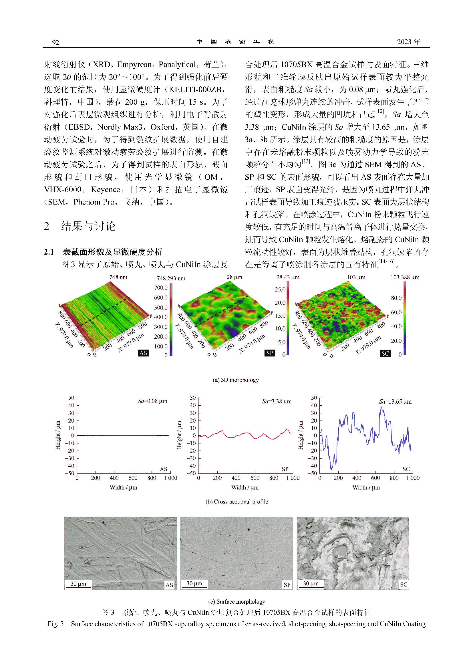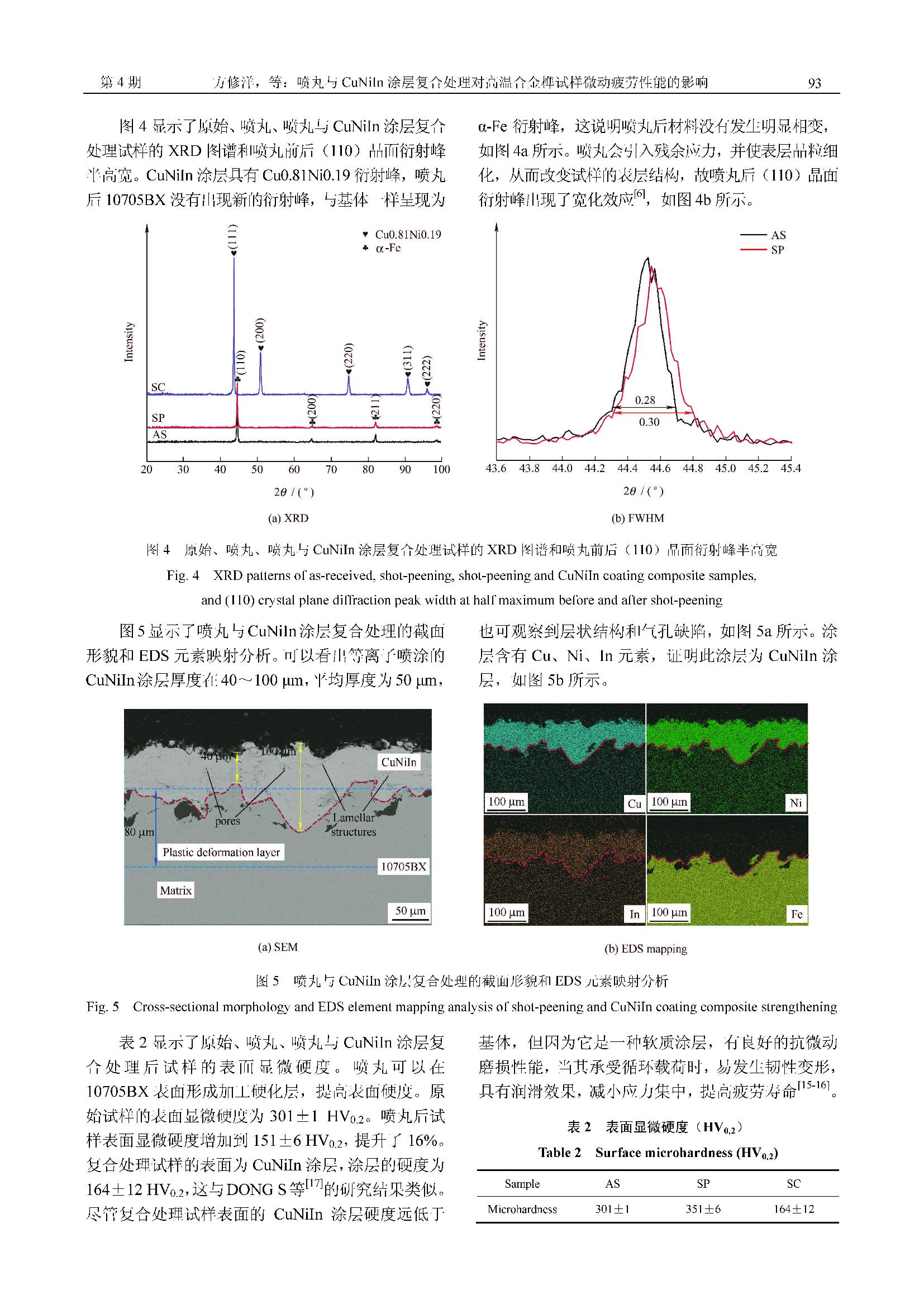 标签: 10705BX高温合金, 喷丸, CuNiIn 涂层, 复合处理, 微动疲劳