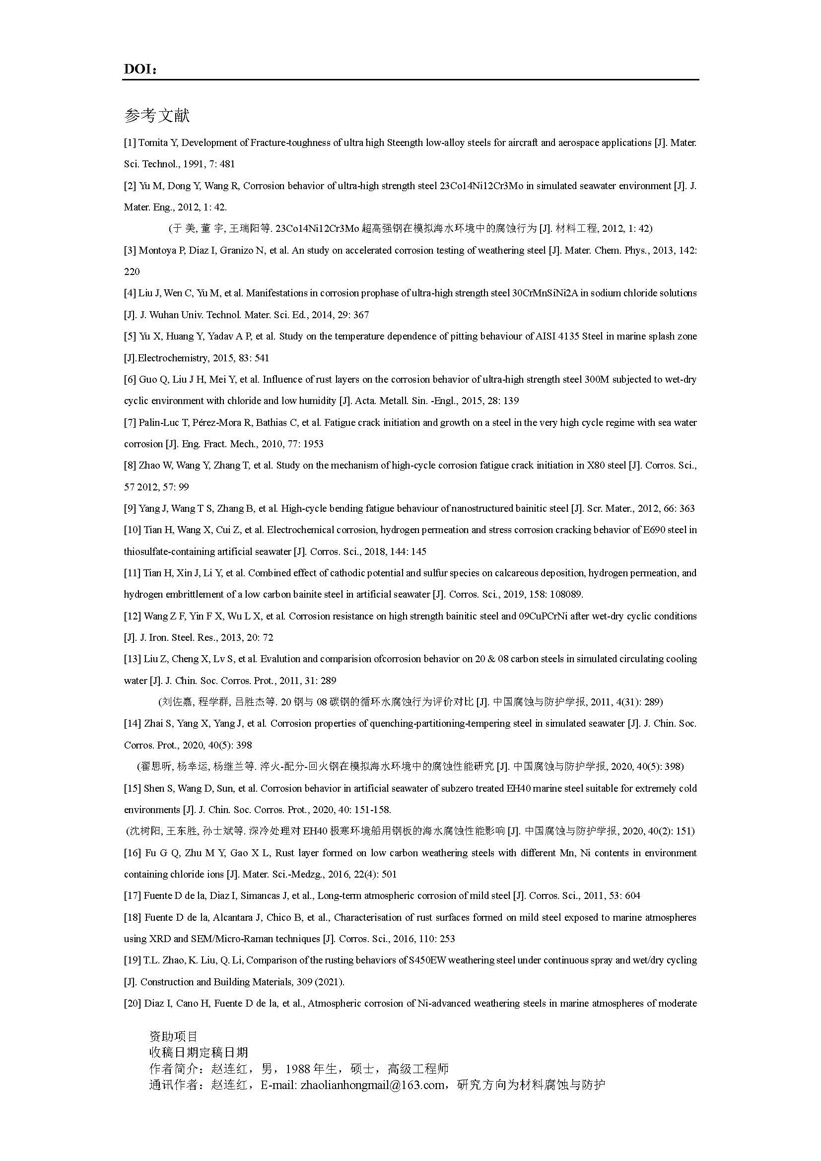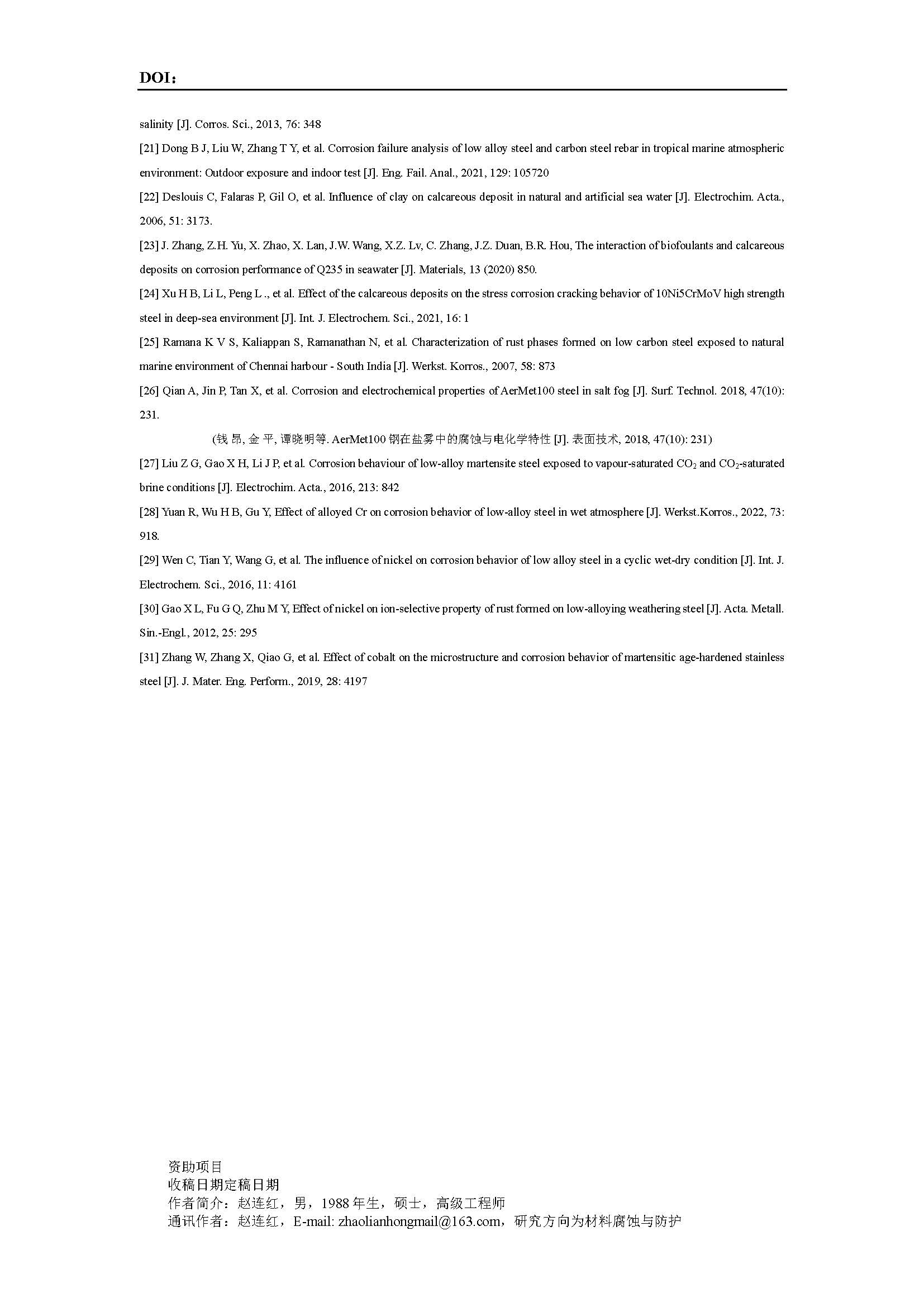 海洋工程结构用钢服役环境模拟及DH36钢腐蚀疲劳裂纹扩