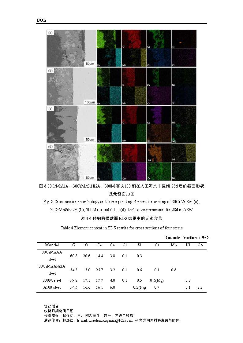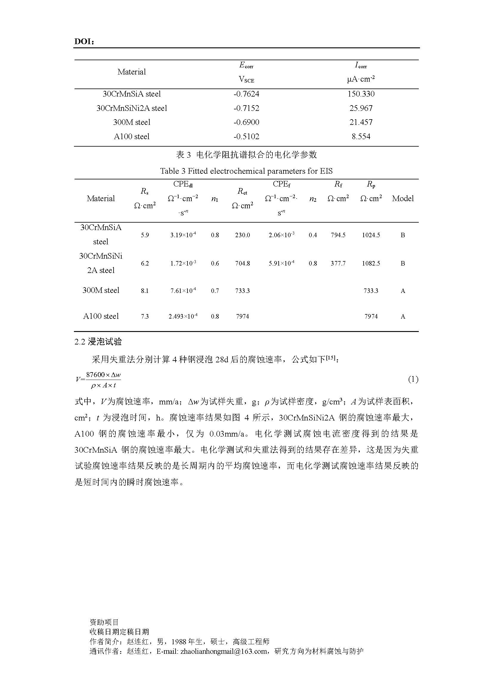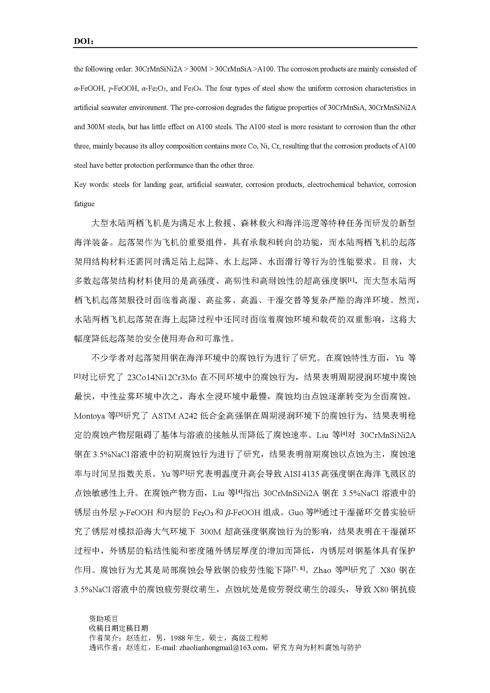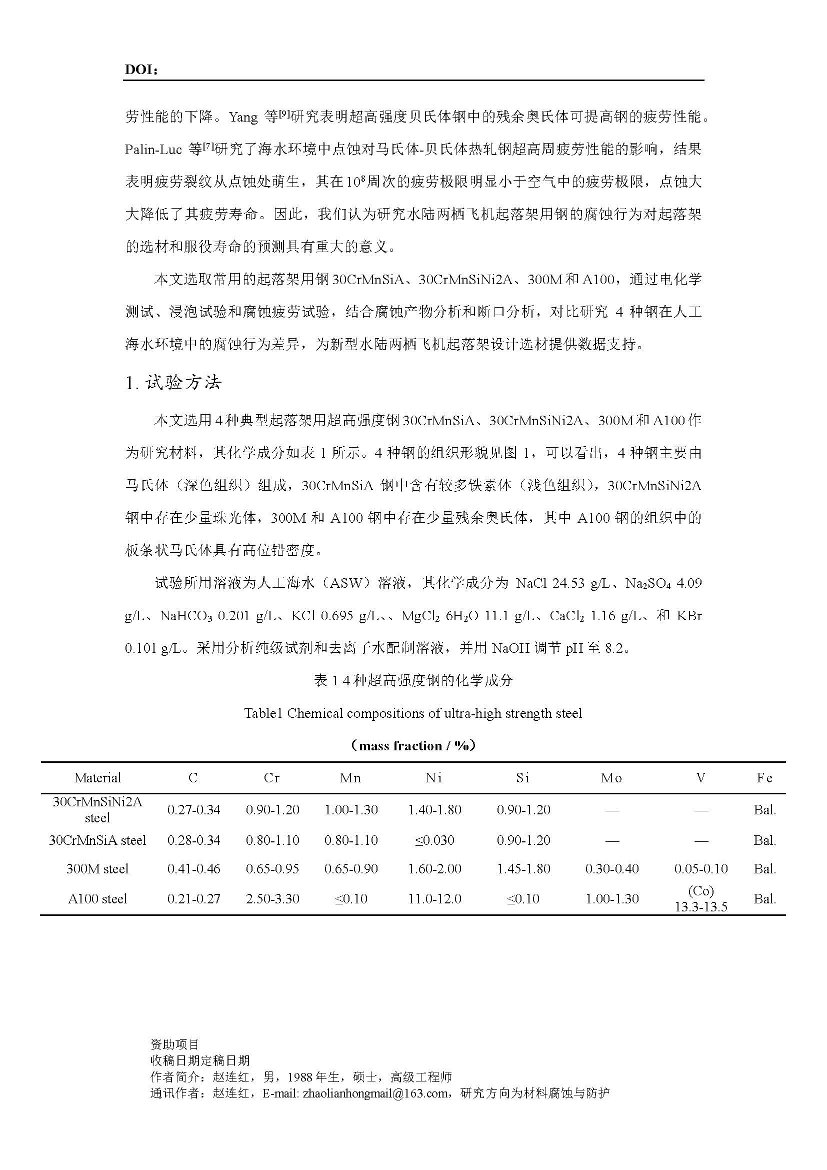 四种飞机起落架用钢在模拟海水中的腐蚀行为研究