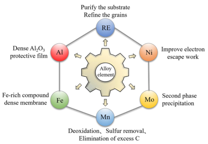 图 4 影响铜镍合金耐蚀性的合金元素种类及作用