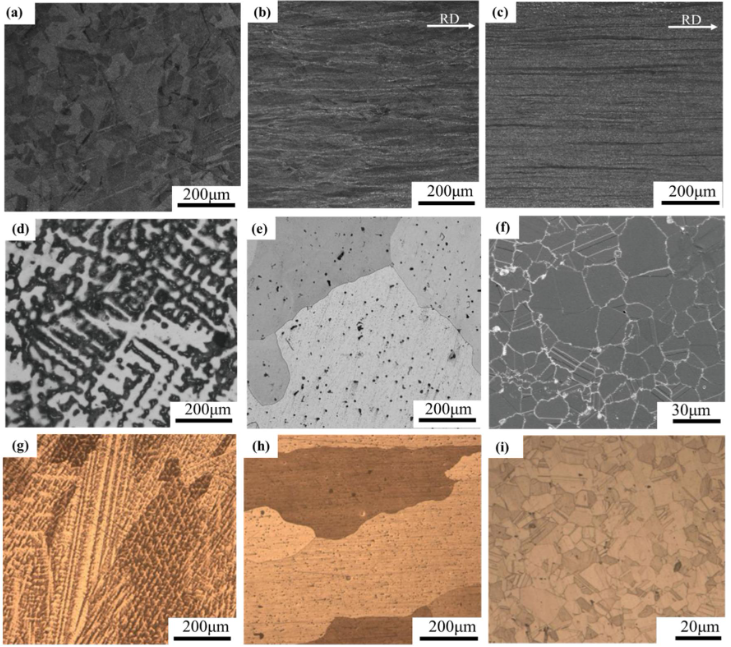 合金化法是提高铜镍合金耐蚀性的最基础、简单有效的方法之一。Yang 等[47]研究了 Cu-7Ni-3Al-1Fe1Mn 合金在 3.5% NaCl 溶液中的腐蚀行为。微观分析结果表明浸泡在 3.5%NaCl 溶液中形成的主要腐蚀产物 是Cu2(OH)3Cl和Cu2O。其中Cu2(OH)3Cl存在于合金表面,Cu2O主要集中在合金基体表面内侧附近。Zubeir[48] 研究发现,当 Fe 的含量大于 2%时,90Cu-10Ni 换热器在海水中的腐蚀速率会变大。过控制 Fe/Mn 比例找 到提高 B10 耐腐蚀性能的最佳合金配比,发现当 Fe/Mn=3:2 时,合金的耐腐蚀性能最好。Zhu 等[49]研究了 不同铁含量对 70/30 铜镍合金腐蚀性能的影响。结果显示,当 Fe 的含量为 1.0%时,合金的耐蚀性最好。他认为铁元素能够提高合金耐腐蚀能力是因为在合金的腐蚀过程中一部分铁会取代 Cu2O 薄膜中的阳离子空穴,空穴数量减少,薄膜电阻增加,除此之外一部分铁还会以 γ-FeOOH 的形式在腐蚀产物膜中积累和富集, 该物质具有较高的电阻率。Shao 等[50]研究了 Fe/Mn 含量对 90/10 铜镍合金腐蚀性能的影响。他认为当 Fe/Mn 含量为 1.69/0.69 时,此时 90/10 铜镍合金具有良好的耐蚀性。Zhu 等[51]研究了不同 Mn 含量对 90/10 铜镍合 金耐腐蚀性的影响。结果表明在铜镍合金中添加适量的 Mn 元素可以提高合金的耐蚀性。他认为 Mn 的加入 促进了 Ni 对阳离子空位的填充,生成了更多的 NiO,进一步增强了腐蚀产物膜的稳定性。童庆坤等[5]研究 了微量 Zr、Ti、B 对 B30 合金铸态组织和性能的影响,结果表明:三种元素均有晶粒细化和强化作用,其 中微量 B 对合金晶粒细化的效果强于微量 Zr 元素;而 Ti 的添加主要是提高了合金的硬度。微量元素的加 入使得合金的铸锭组织枝晶偏析逐渐减弱,力学性能提高间接提高合金的耐蚀性。Taher 等[52]认为,从相图 考虑,Cu-Ni 合金中加入的 Fe 的最大含量为 1.5%,若 Fe 的含量过多时会在晶界处形成第二相,腐蚀速率 加快;经人工盐溶液浸泡的 Cu-Ni-Fe 合金,其表面形成的钝化膜包括内层和外层,内层钝化膜为多孔结构 且膜层较厚,与基体结合力较好,加入 Fe 会使外层孔隙消失,钝化膜中生成的 Fe2O3 提高了钝化膜的耐蚀 性,也增加了钝化膜外层的密度。Rosalbino 等[53]研究了 Cu91.6-Nd8.4 和 Cu90.5-Er9.5 合金在碱性溶液中的 腐蚀性能,结果发现:与纯铜相比,Cu-RE(RE=Nd、Er)合金的耐蚀性更好。Li 等[54]采用活化反应烧结技 术制备多孔 Ni-Cr-Mo-Cu 合金,通过 SEM、XPS 等技术表征结果表明,随着 Cr 元素的增加,合金的防腐能 力也逐渐增强。稀土元素因其独特的物理化学特性,可以吸收杂质气体,净化基体,近年来受到广泛关注。Burleigh 等[55]发现铜镍铸件中加入铁元素可以提高合金的耐蚀性,但是在海水中铁的析出物会通过电偶腐 蚀导致晶界腐蚀,而通过冲击试验表明,2%的铟可以提高合金的耐蚀性也不会发生晶界腐蚀。Lin 等[56]发 现在铝黄铜中加入稀土 Ce 和 La 可以使合金表面的腐蚀产物膜层更加致密,合金的点蚀程度 显著降低。谢蔚等[57]发现纯铜在 NaCl 溶液中浸泡后生成了 Cu2O 和 Cu2(OH)3Cl 等腐蚀产物,纯铜中加 入稀土 La 以后会生成网格状的 CuLa 中间相,其具有较大的体积分数,在合金表面形成阻挡层,提高纯铜 的耐腐蚀性能。宋春梅等[4]研究了稀土钇对 B10 合金耐蚀性的影响。结果表明:添加稀土 Y 的 B10 合金能 够细化二次枝晶的间距,优化了合金晶界结构,抑制了沿晶腐蚀的现象,从而提高了 B10 合金的耐蚀性。冷翔等[58]研究了稀土 La 对 B10 合金耐蚀性的影响,结果表明 La 能够提高 B10 合金表面腐蚀产物膜与基体 的稳定性,减少腐蚀产物中的裂纹。郝齐齐[59]利用热-力模拟技术对 BFe10-1.5-1 合金的热变形行为进行研 究,结果表明当 Ce 含量为 0.014 wt.%时,可以有效细化合金的树枝晶,合金中的稀土 Ce 以团状颗粒、椭 球相形式存在。陈少华等[60]研究了稀土元素 Ce 对 Cu-10Ni-7Si-5Mn 合金组织和耐蚀性的影响。结果表明:CuCe 相与基体呈现半共格界面,起到细化合金组织作用。稀土 Ce 以其氧化物 Ce2O3 和 CeO2 的形式存在于 腐蚀产物中,通过提高腐蚀产物膜层的阻抗值,促使开路电位向正移动来提高合金的耐腐蚀性能。Zhang 等 [61]研究了稀土元素 Nd 对 Cu-13.0Al-4.0Ni 高温形状记忆合金组织、力学性能的影响。结果表明 Cu-13.0Al4.0Ni 合金中添加 Nd 可以细化晶粒,晶粒尺寸从毫米级减小到几百微米级,晶粒细化改善了合金的力学性 能。Dalvand 等[62]研究了合金元素 Ti 和混合稀土 Ce、La 对 Cu-Ni-Al 系合金的组织的影响,结果表明稀土 作为二次细化剂的加入能促进晶粒尺寸缩小,使晶粒尺寸分布更加均匀。Leng 等[63]研究了稀土 La 对 Cu-Ni 合金在 0.1 mol/L NaOH 溶液中钝化膜性能的影响。结果表明 Cu-Ni 合金表面都会形成高缺陷 p 型半导体(即 Cu2O),同时 La 的加入可以提高合金的耐蚀性。主要原因是在 Cu2O 中增加高价态阳离子,将增加钝化膜层 的电阻,导致铜合金的耐蚀性增加。Zhang 等[64]认为在 Cu-Ni 合金中加入适量的 Y 可以细化铸态组织的二 次枝晶间距,通过浸泡实验可知合金的耐蚀性随着 Y 含量的增加先升高后降低,当 Y 含量为 0.021%时,合 金的耐蚀性最好。