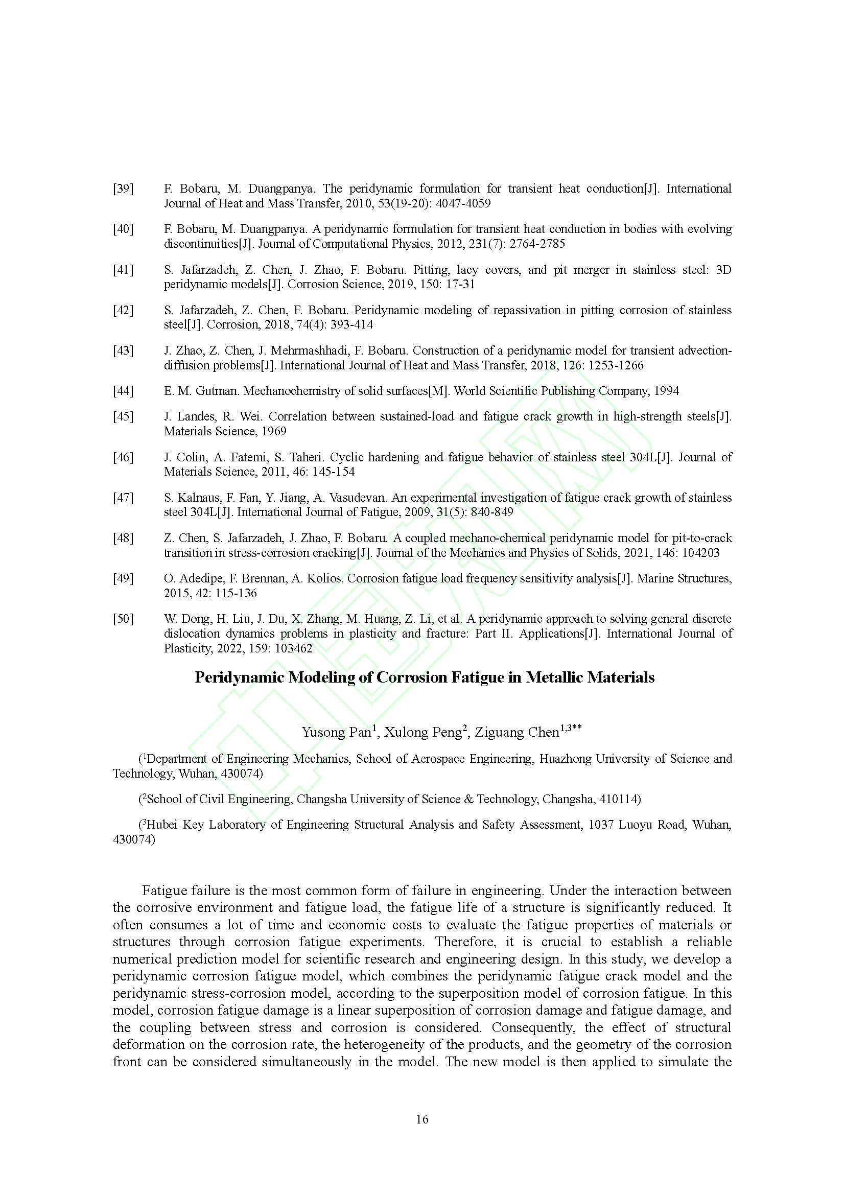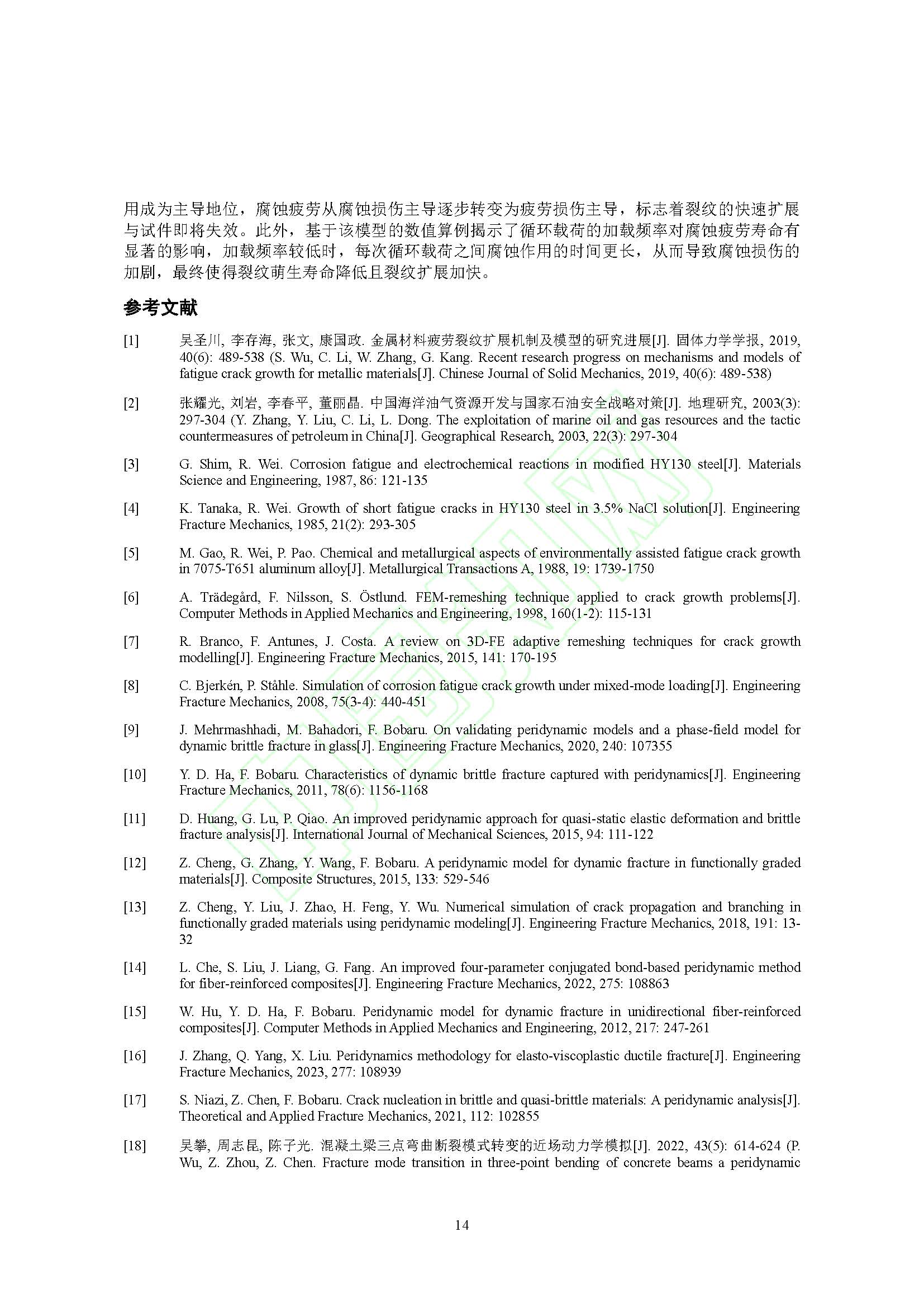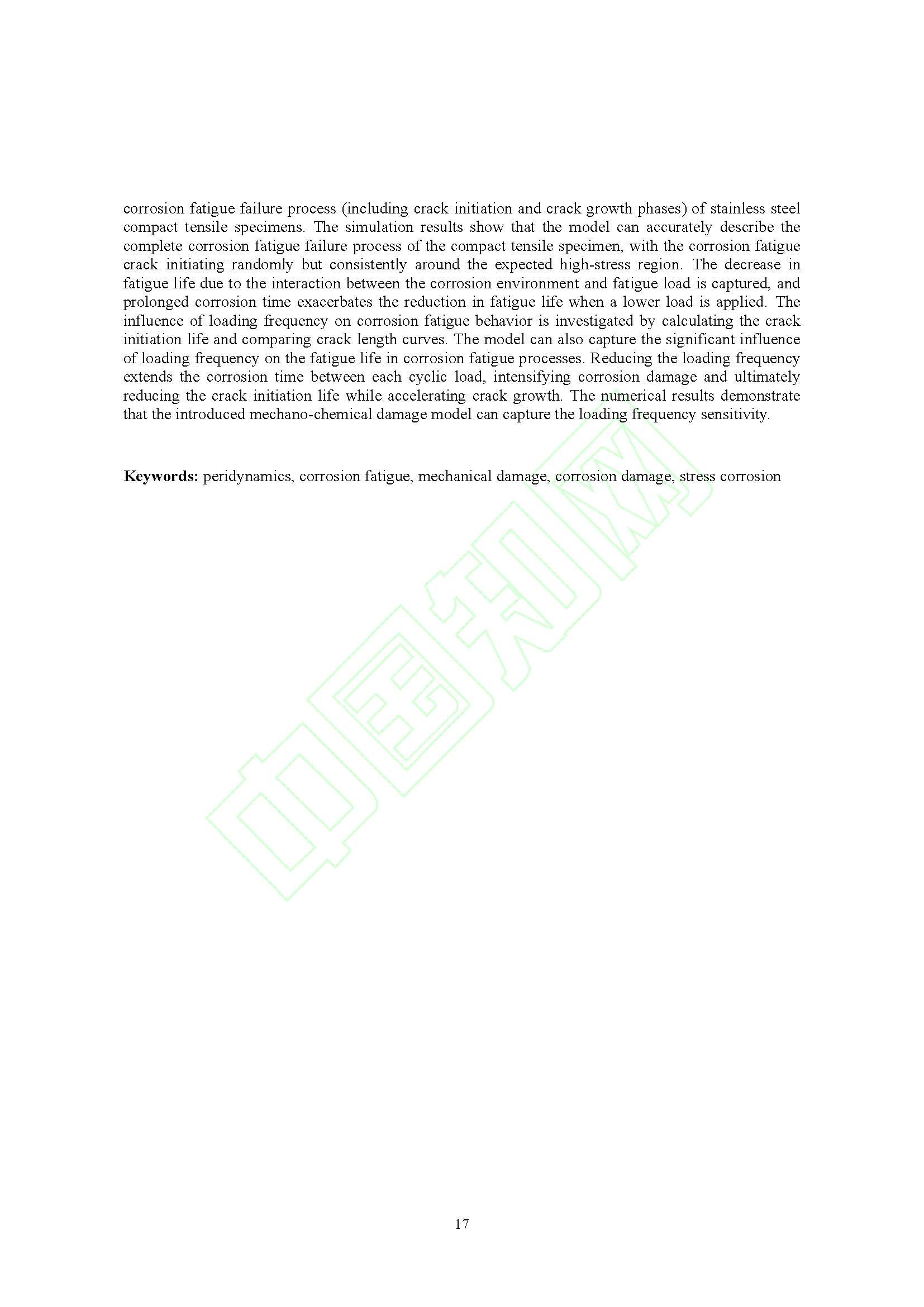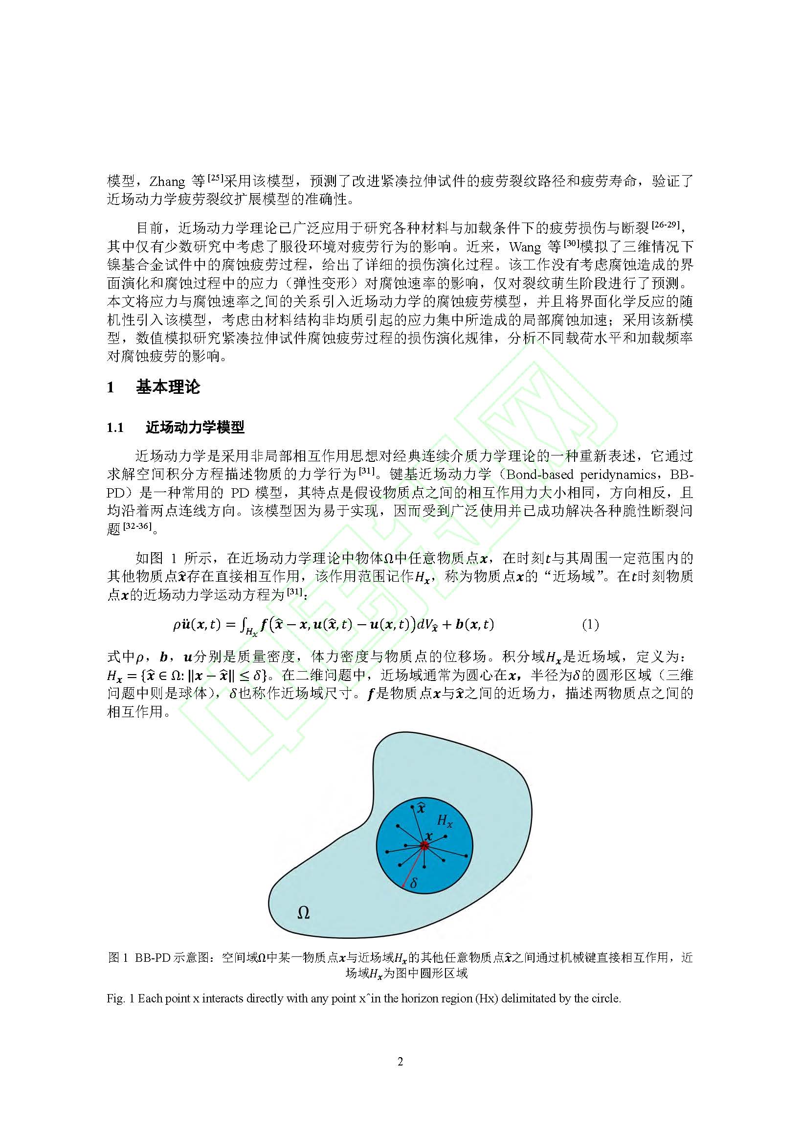 金属材料腐蚀疲劳的近场动力学模拟