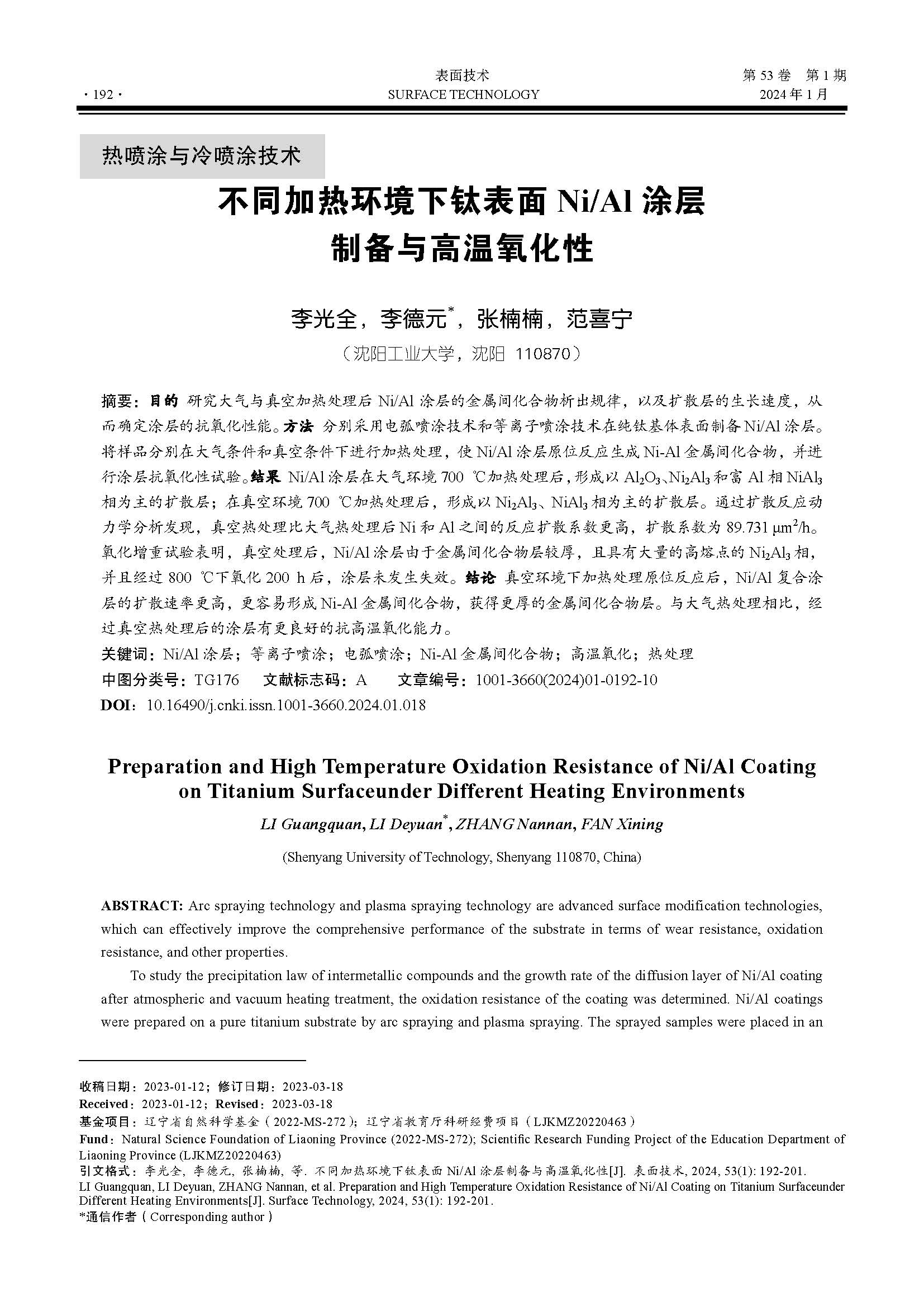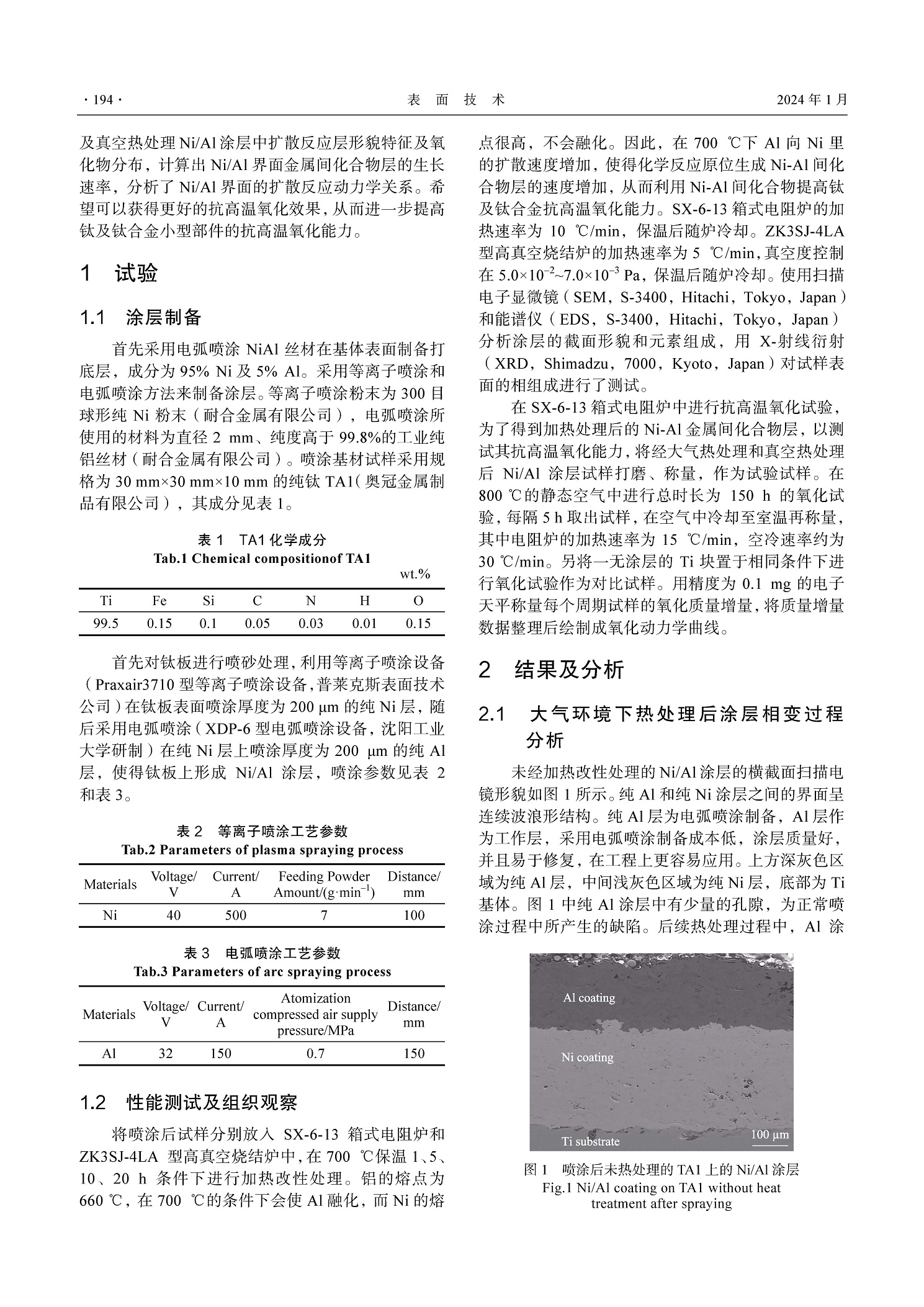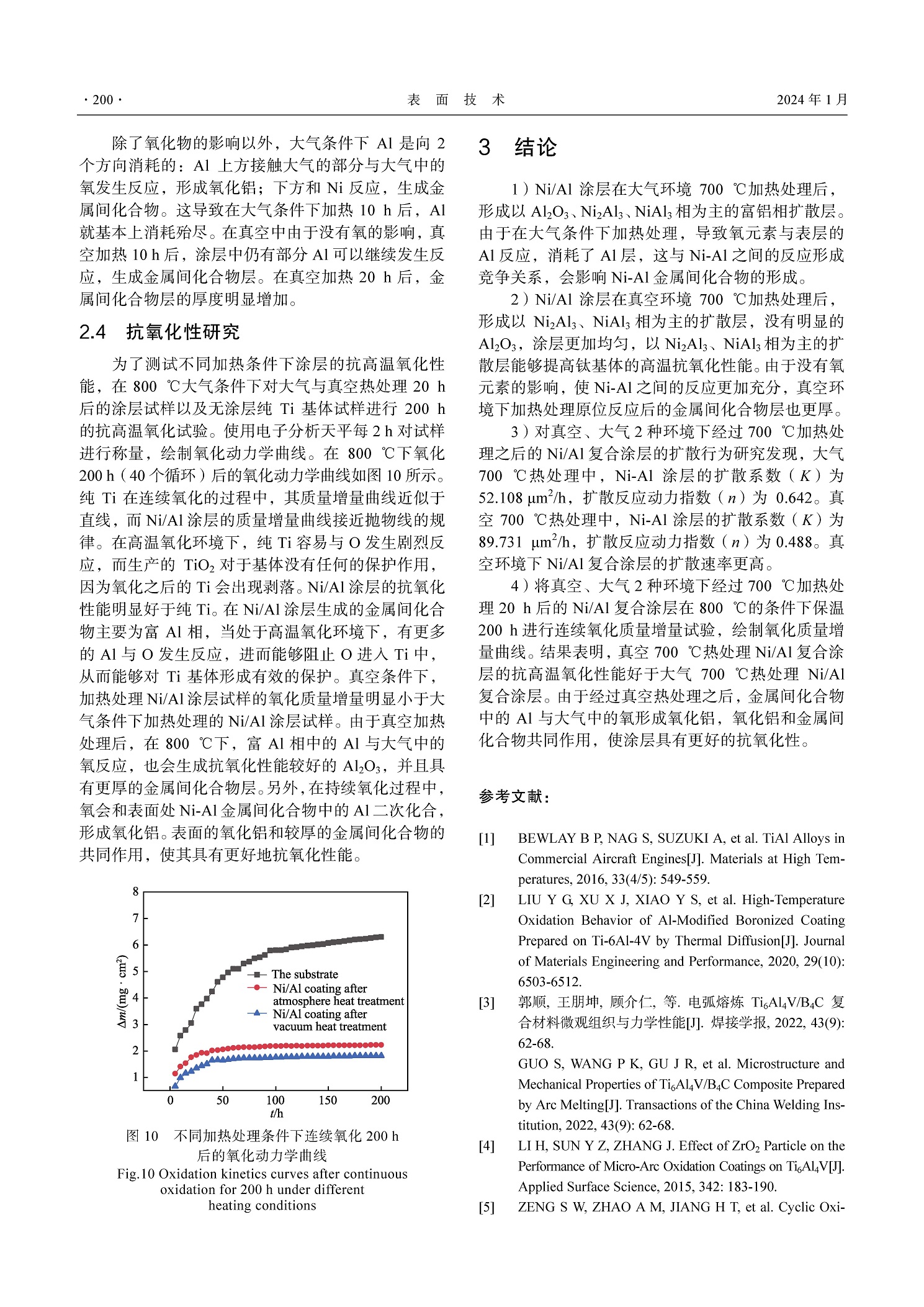 不同加热环境下钛表面 Ni/Al 涂层 制备与高温氧化性