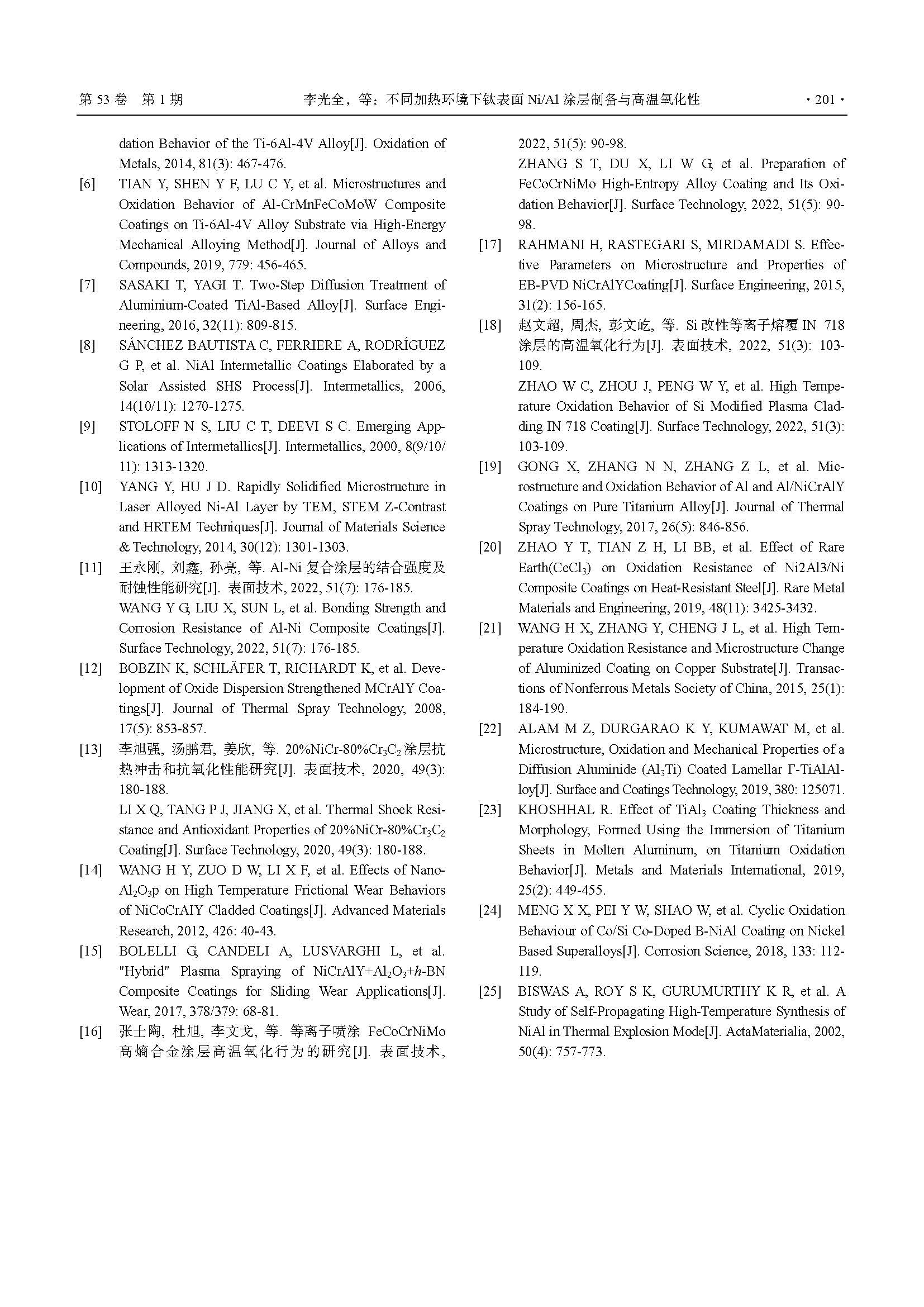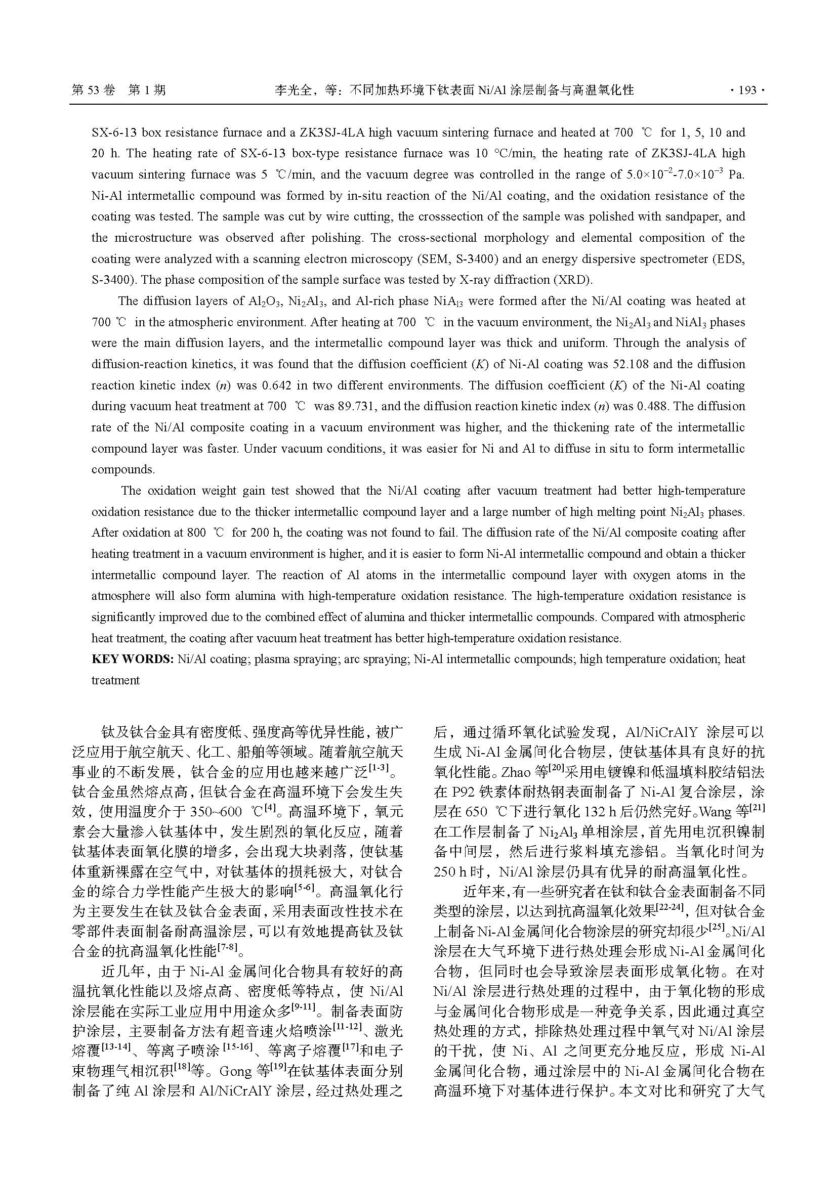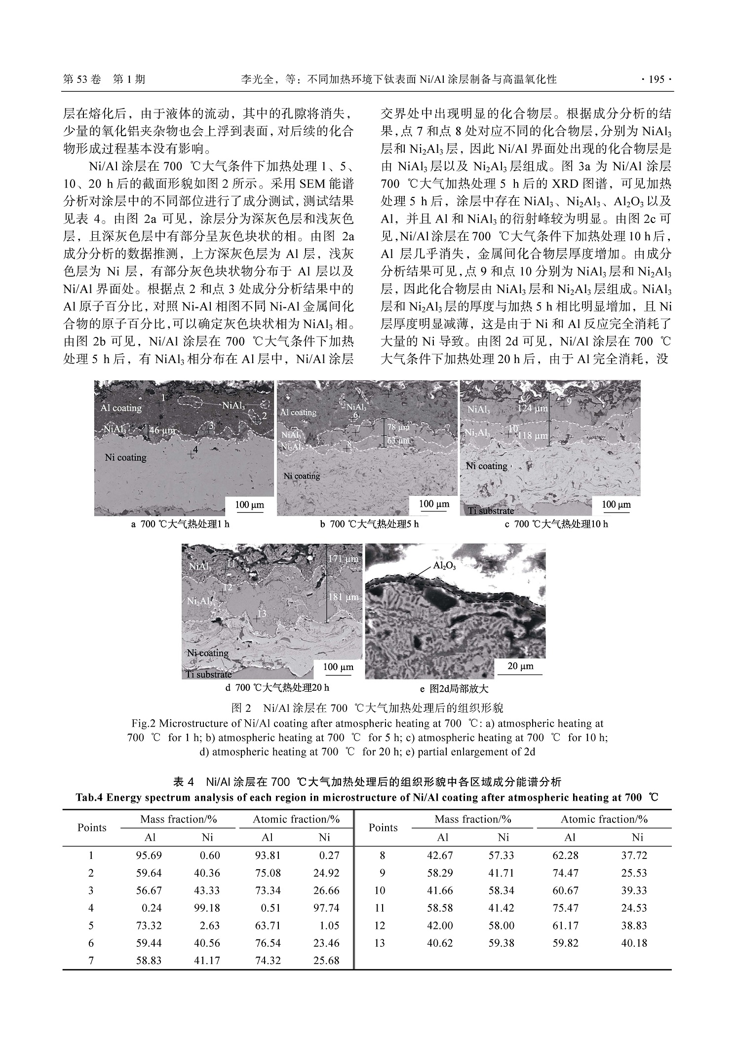 不同加热环境下钛表面 Ni/Al 涂层 制备与高温氧化性
