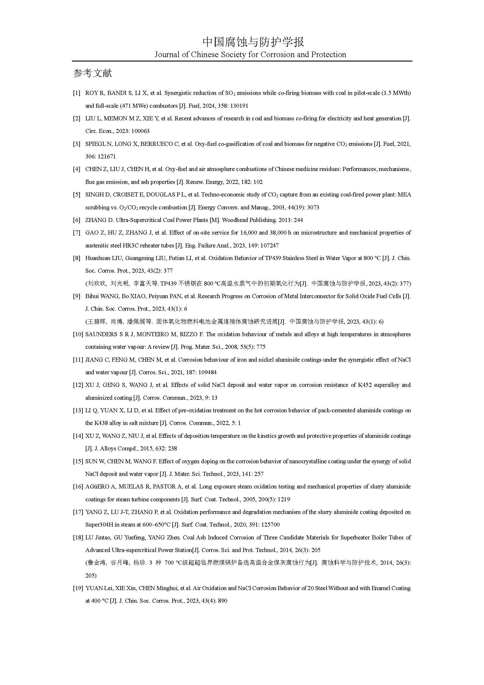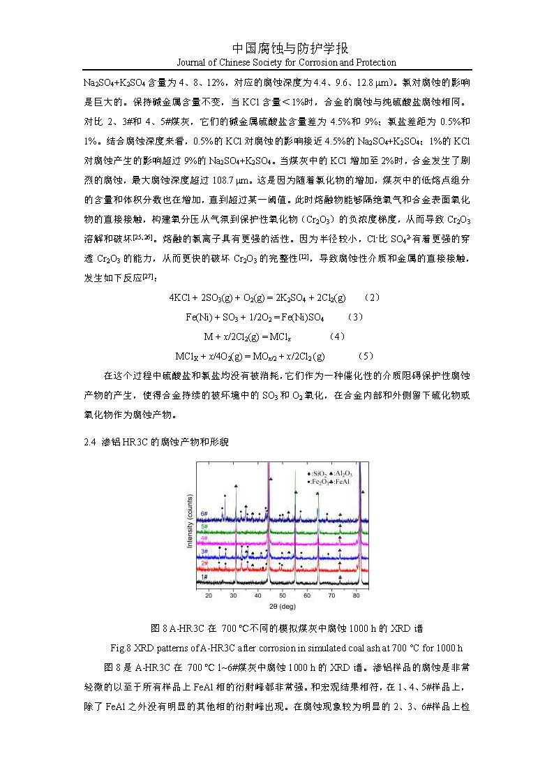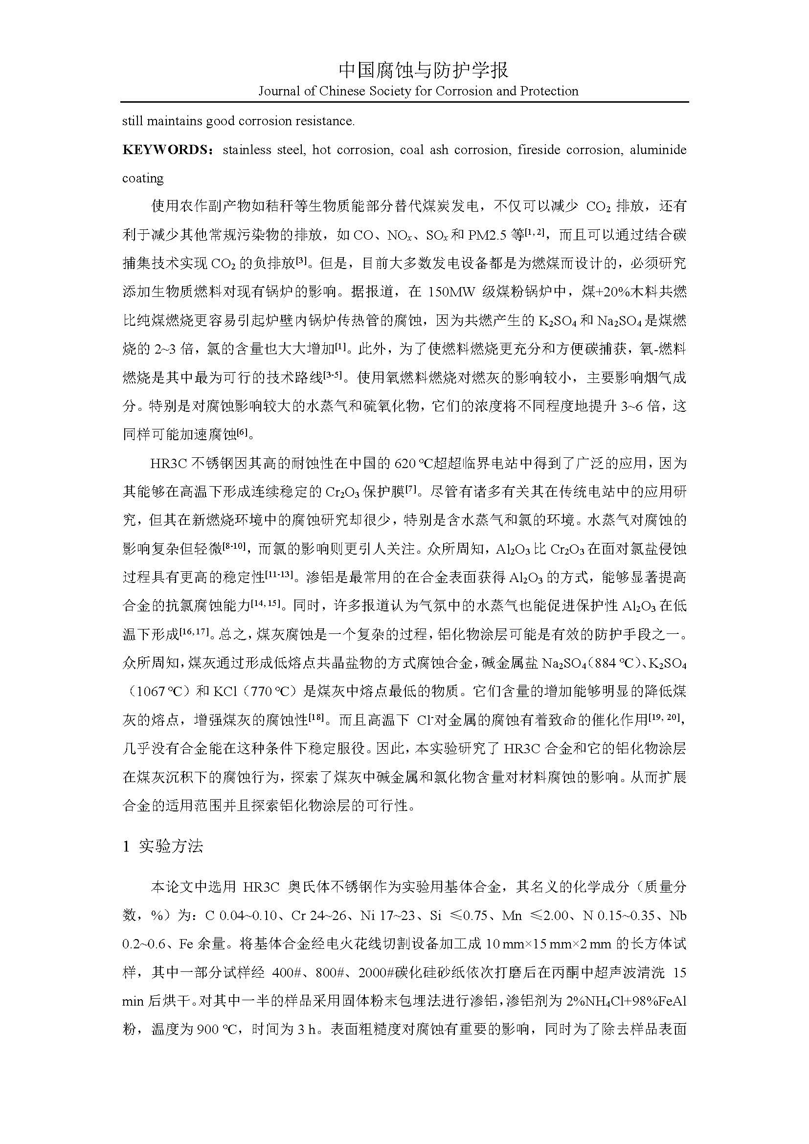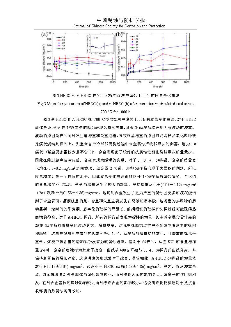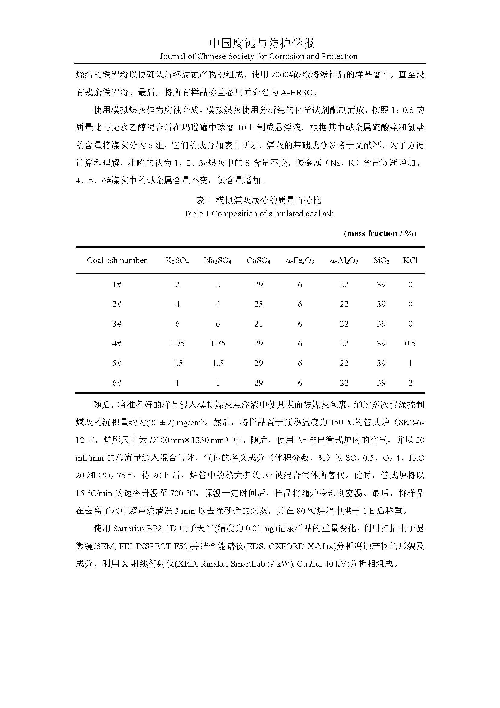 煤灰中碱金属硫酸盐和氯盐含量对HR3C和渗铝HR3C不锈钢腐蚀行为的影响