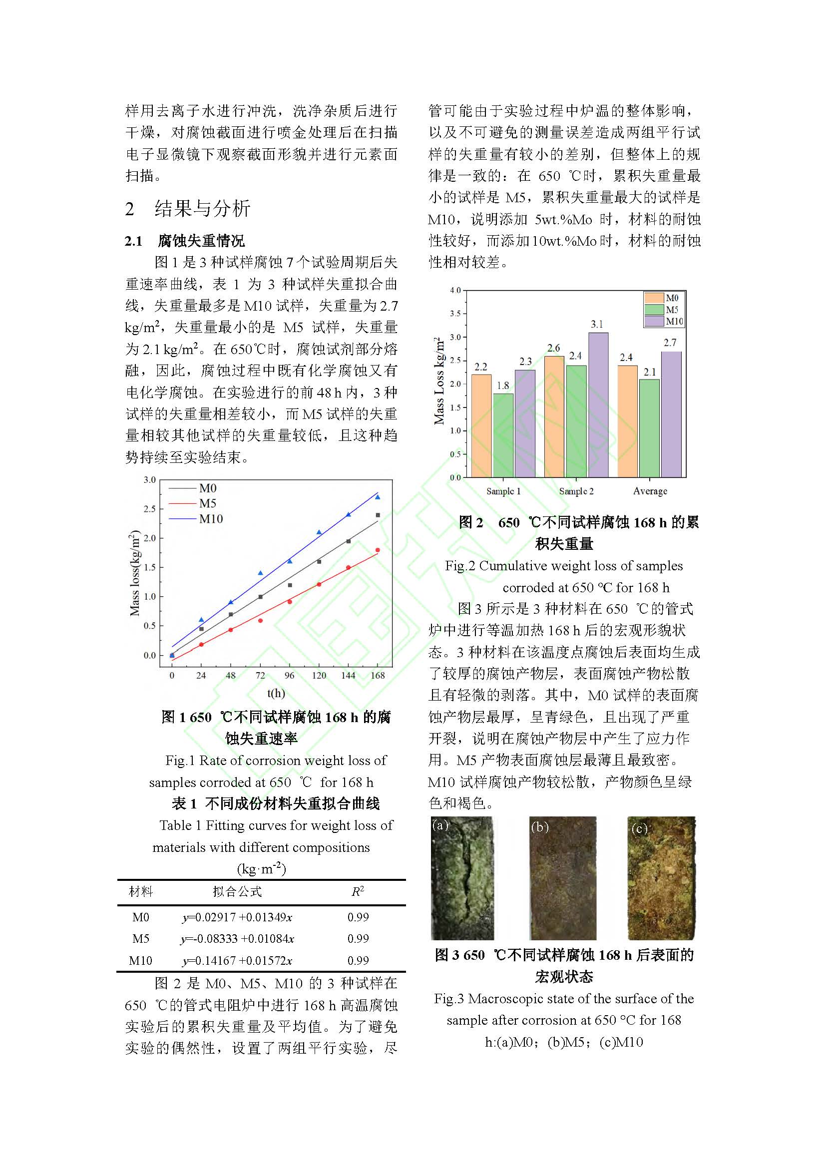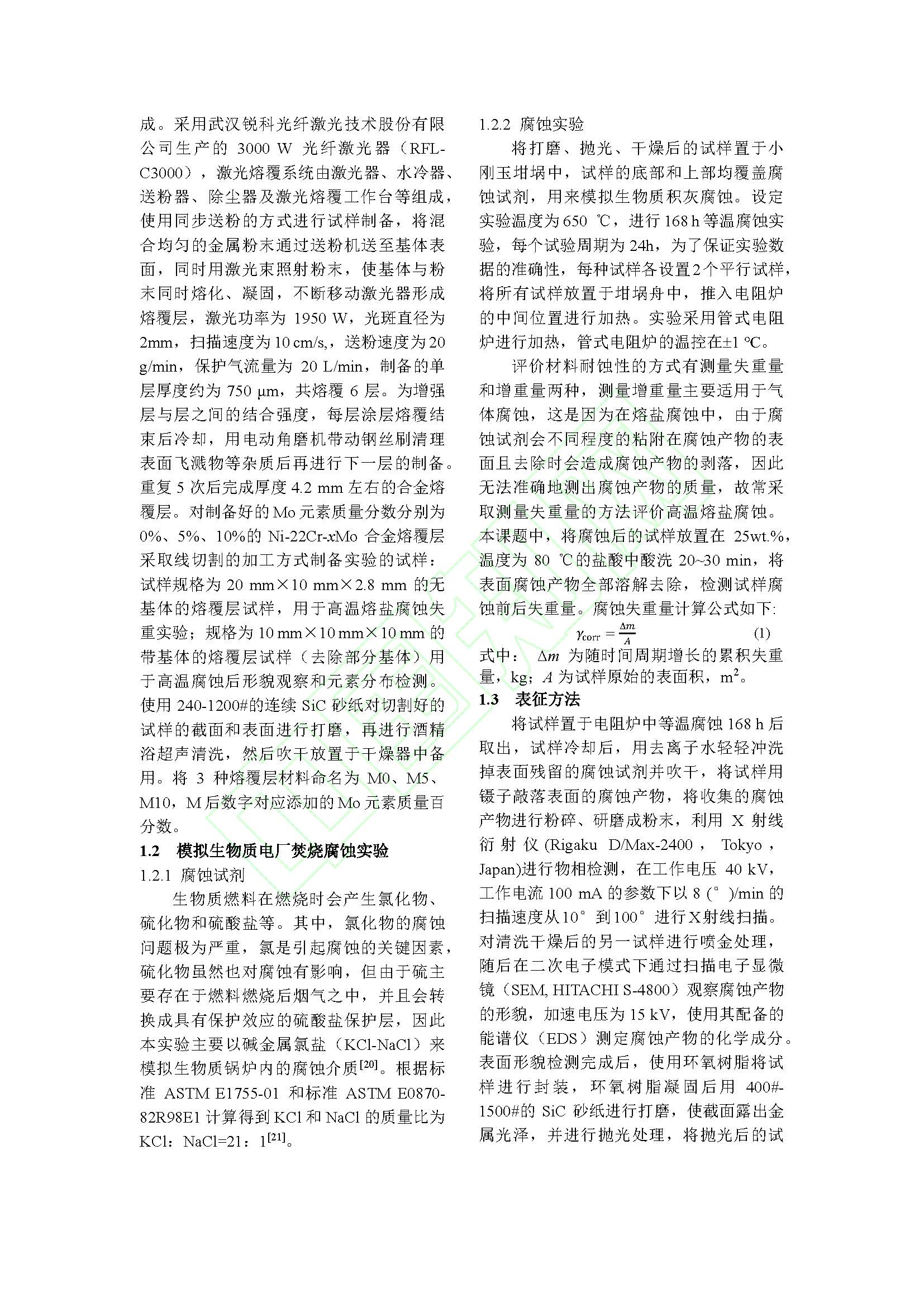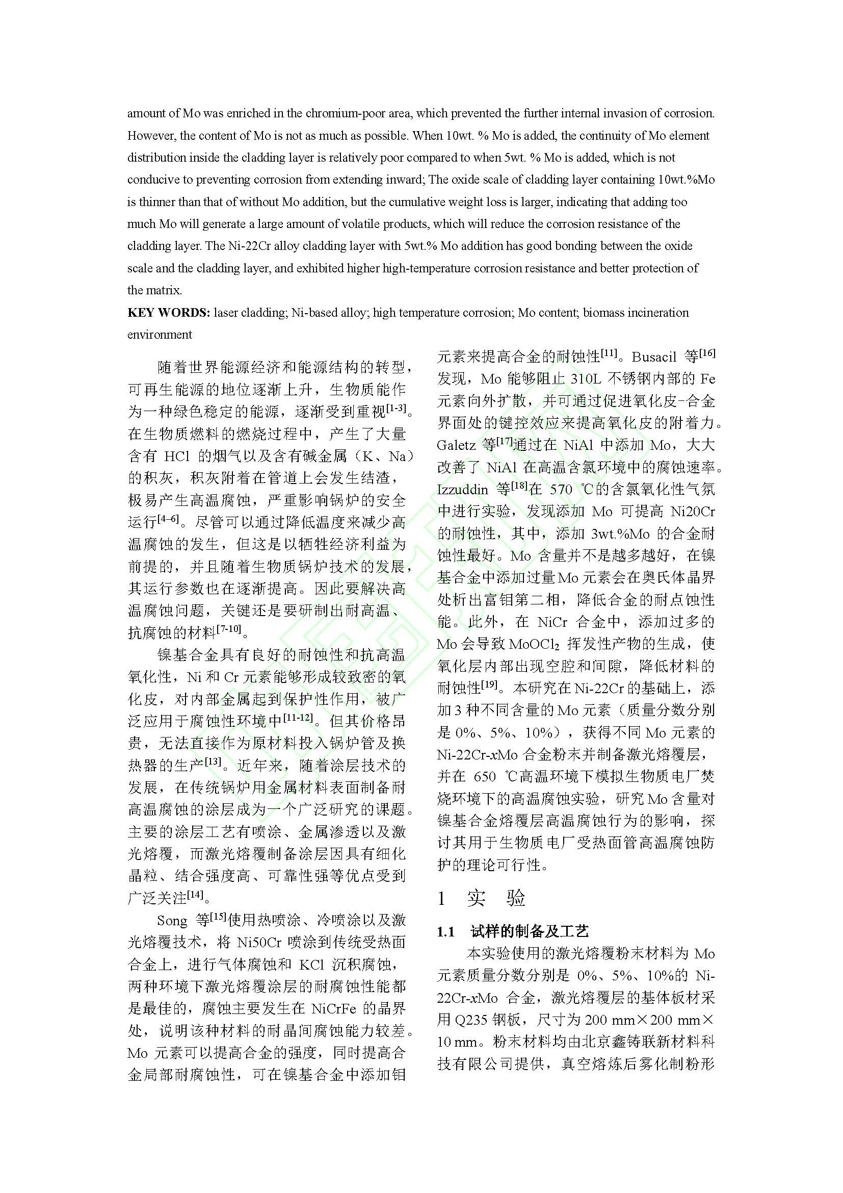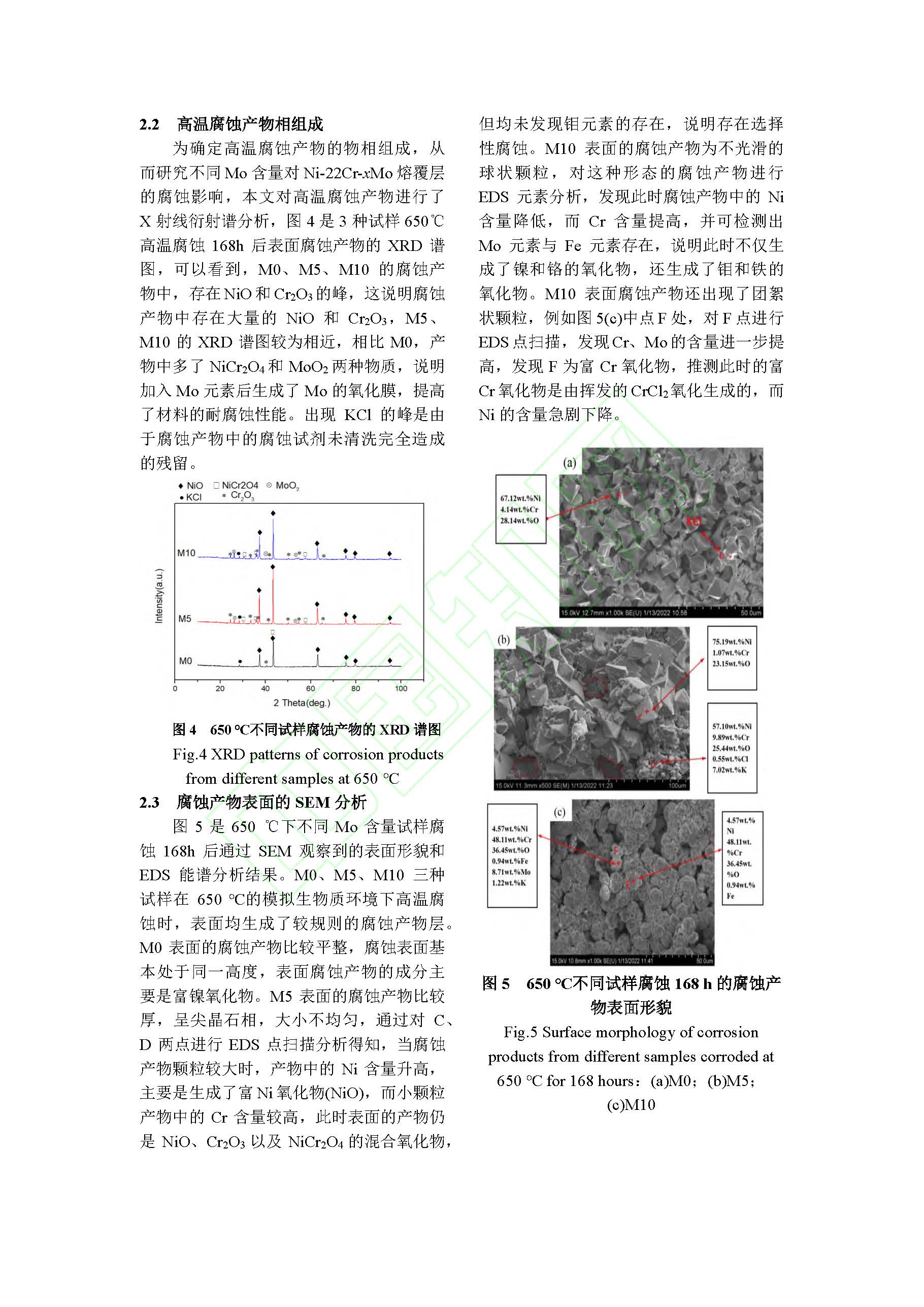 Mo含量对镍基合金熔覆层高温腐蚀特性的影响