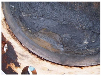 李岩岩等发现,在超临界CO2环境中,流体流动加速了腐蚀性物质向钢材表面传质过程,同时对钢材表面施加了剪切应力,破坏了FeCO3膜的完整性和致密性(图4),从而加快了腐蚀速率。除此之外,流速变化还可能造成钢材的局部腐蚀。