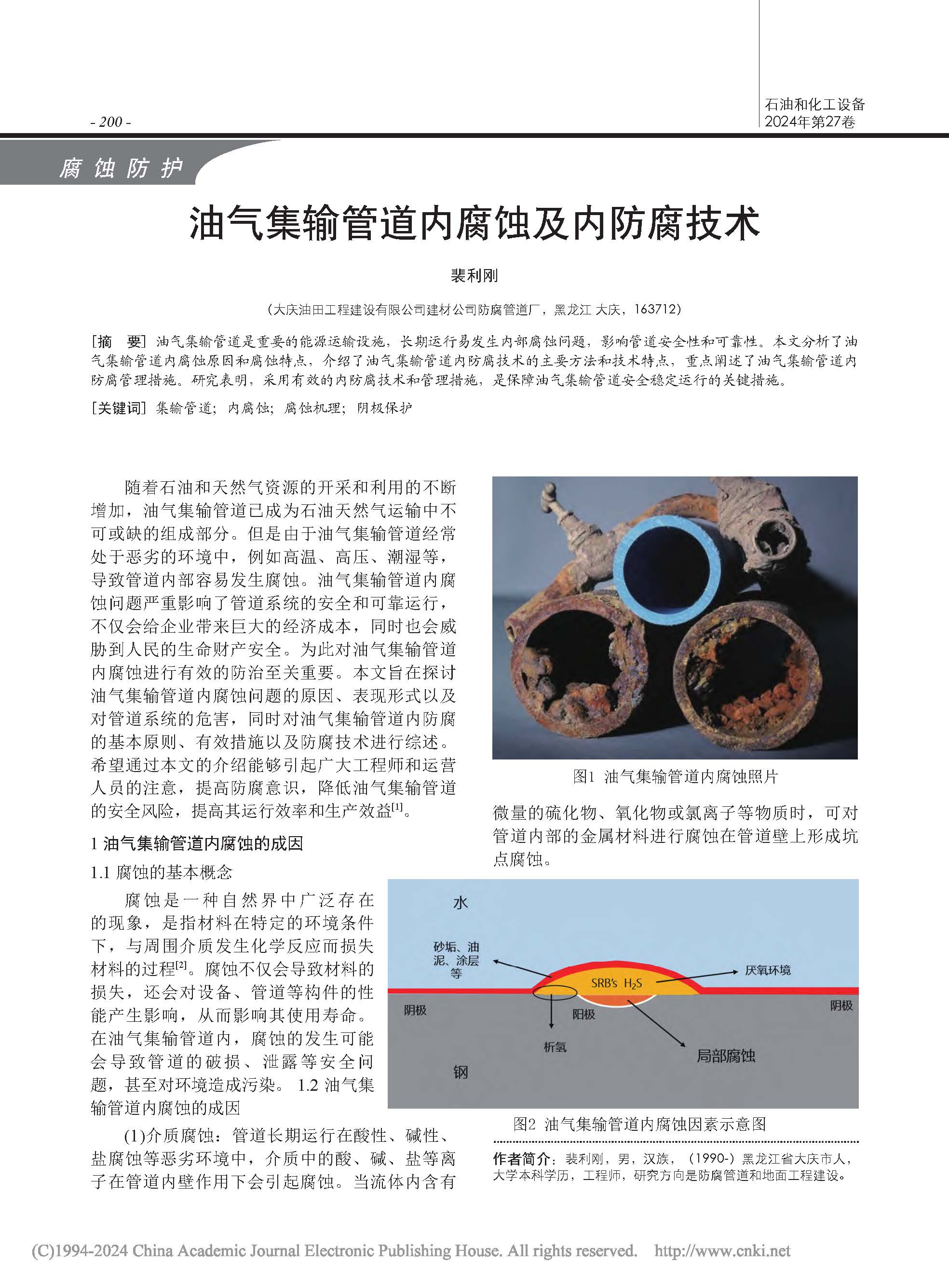 油气集输管道内腐蚀及内防腐技术