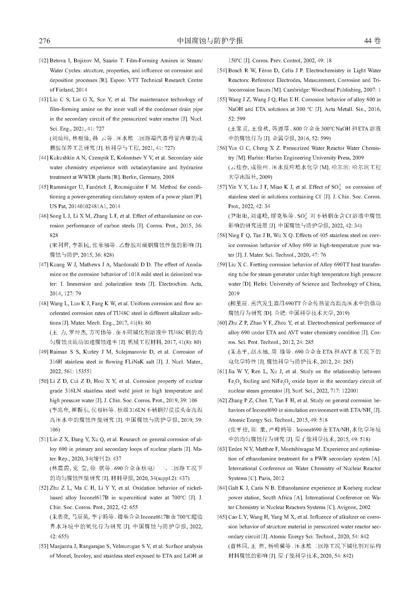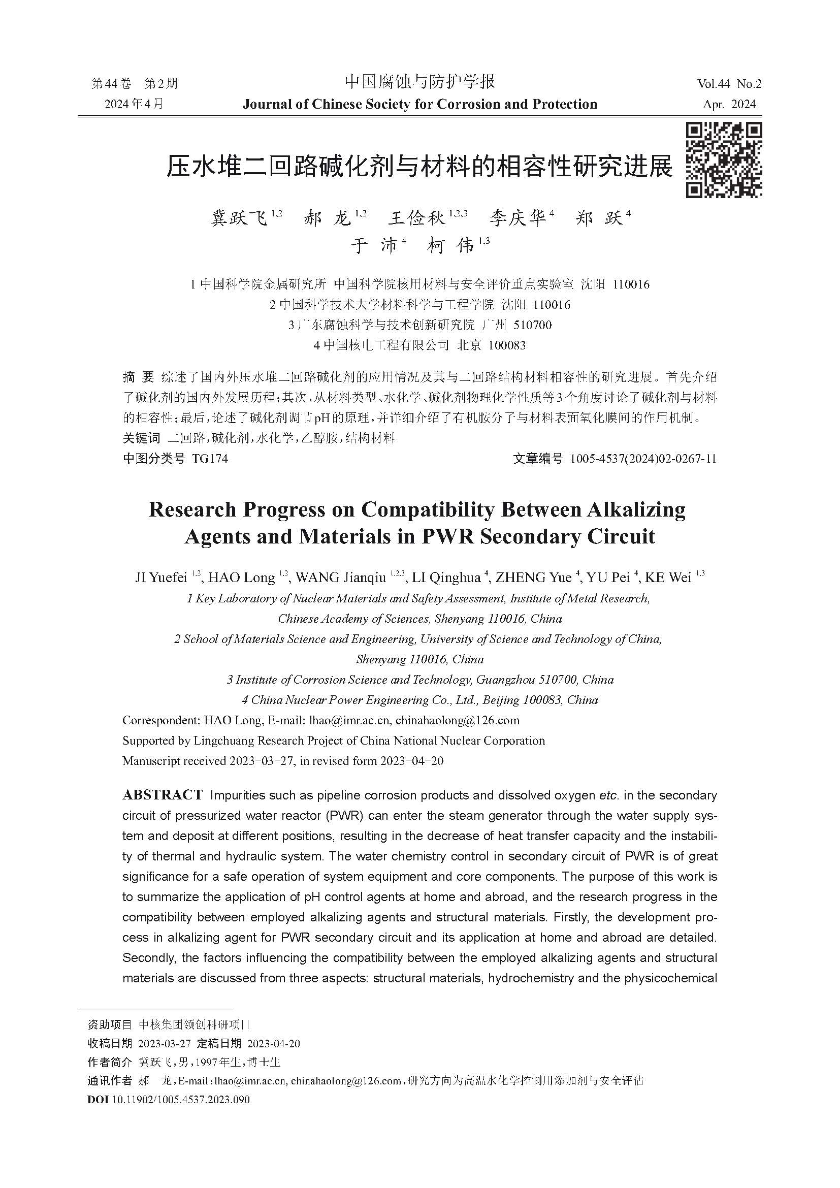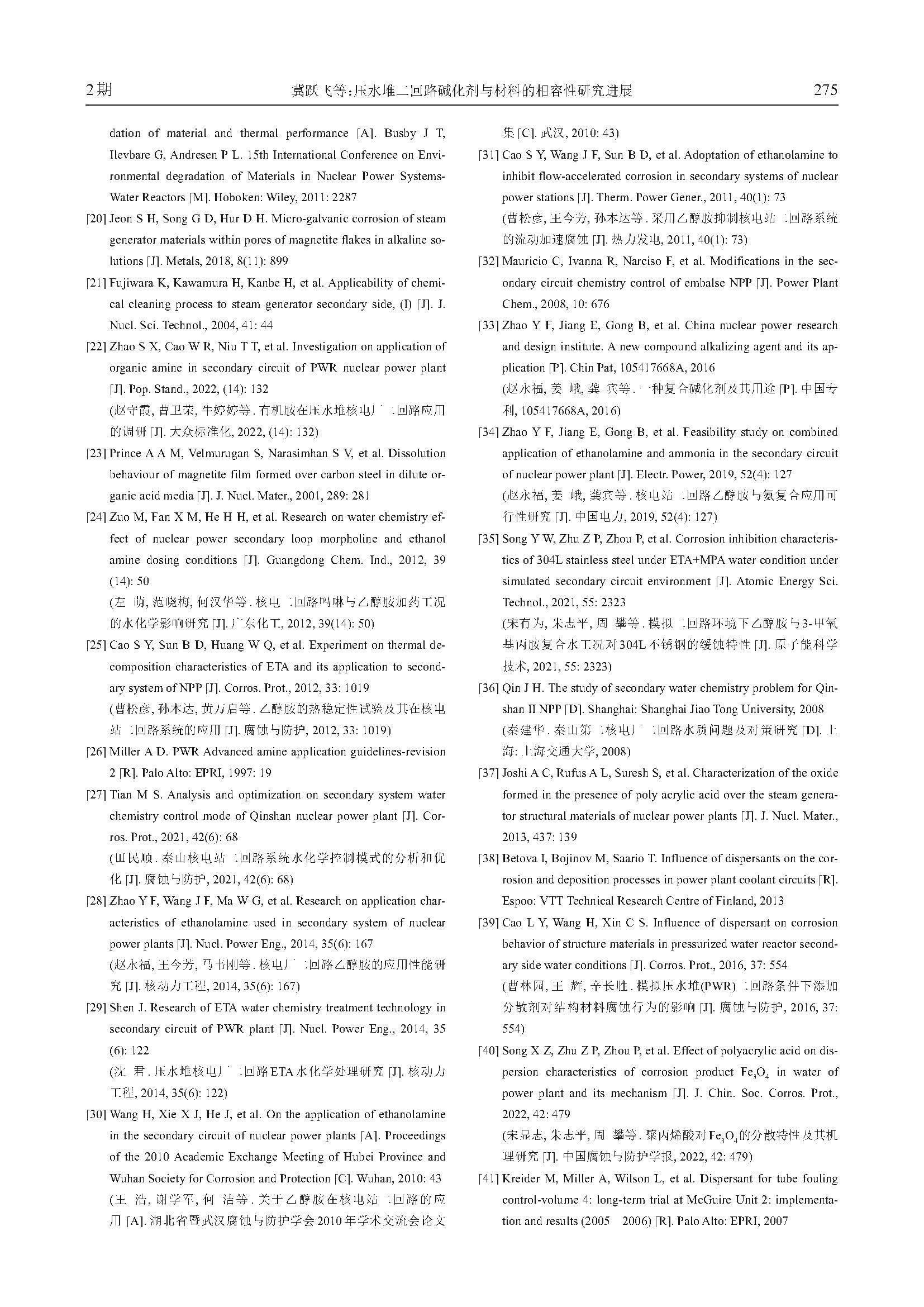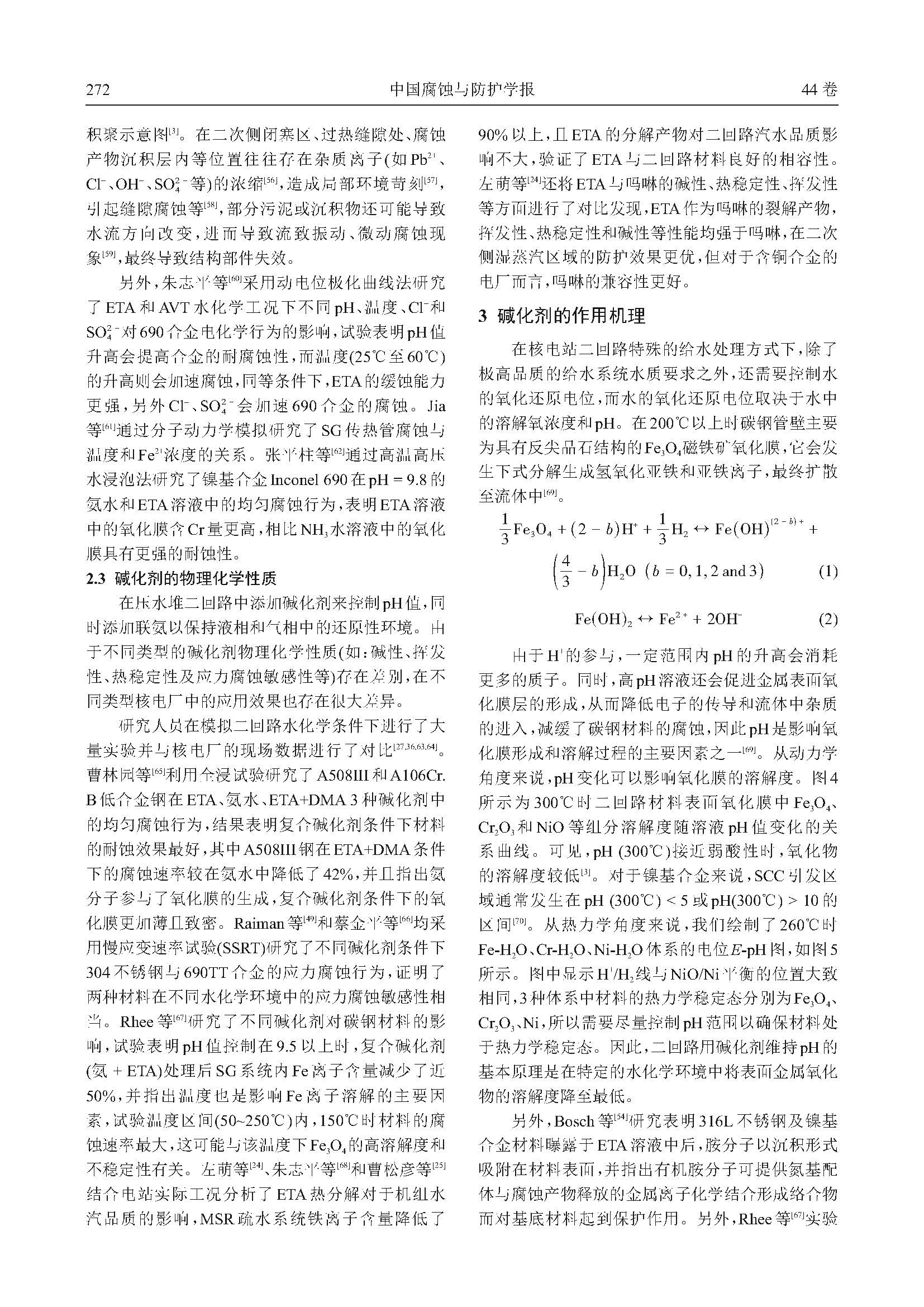 压水堆二回路碱化剂与材料的相容性研究进展