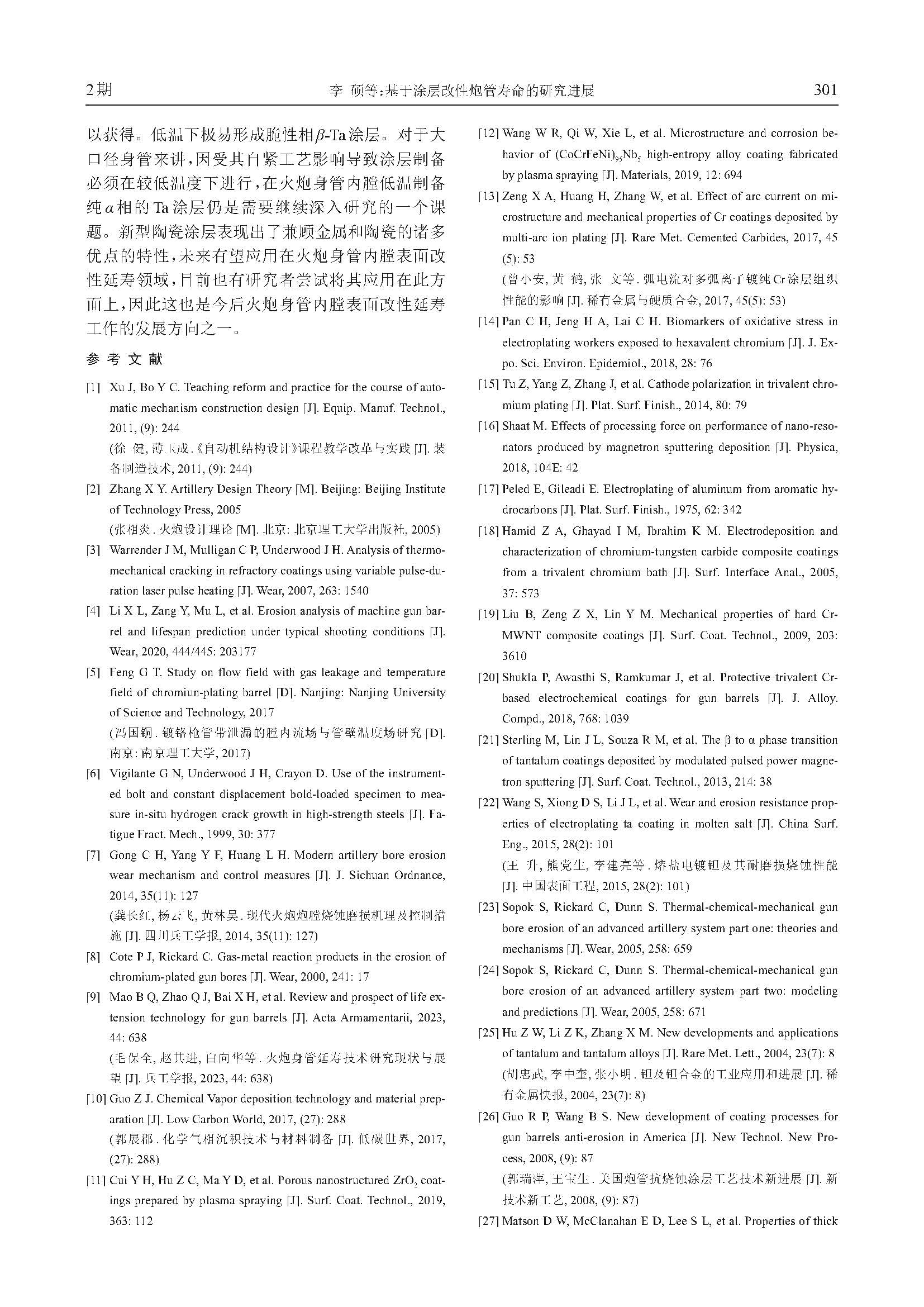 基于涂层改性炮管寿命的研究进展