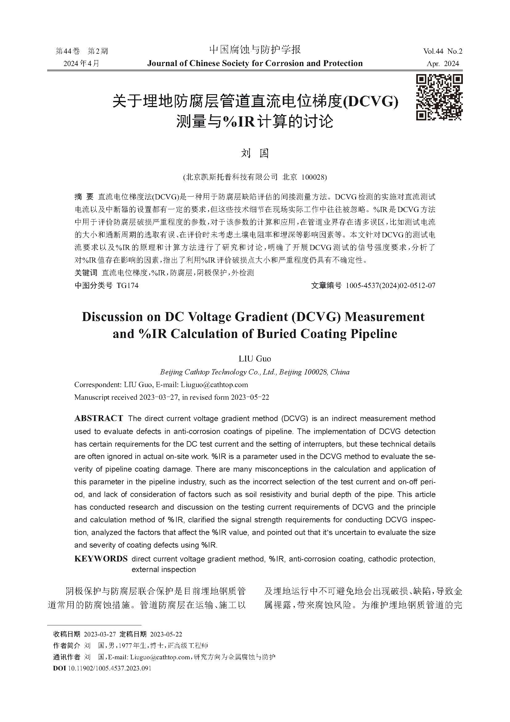 关于埋地防腐层管道直流电位梯度(DCVG)测量与%IR计算的讨论