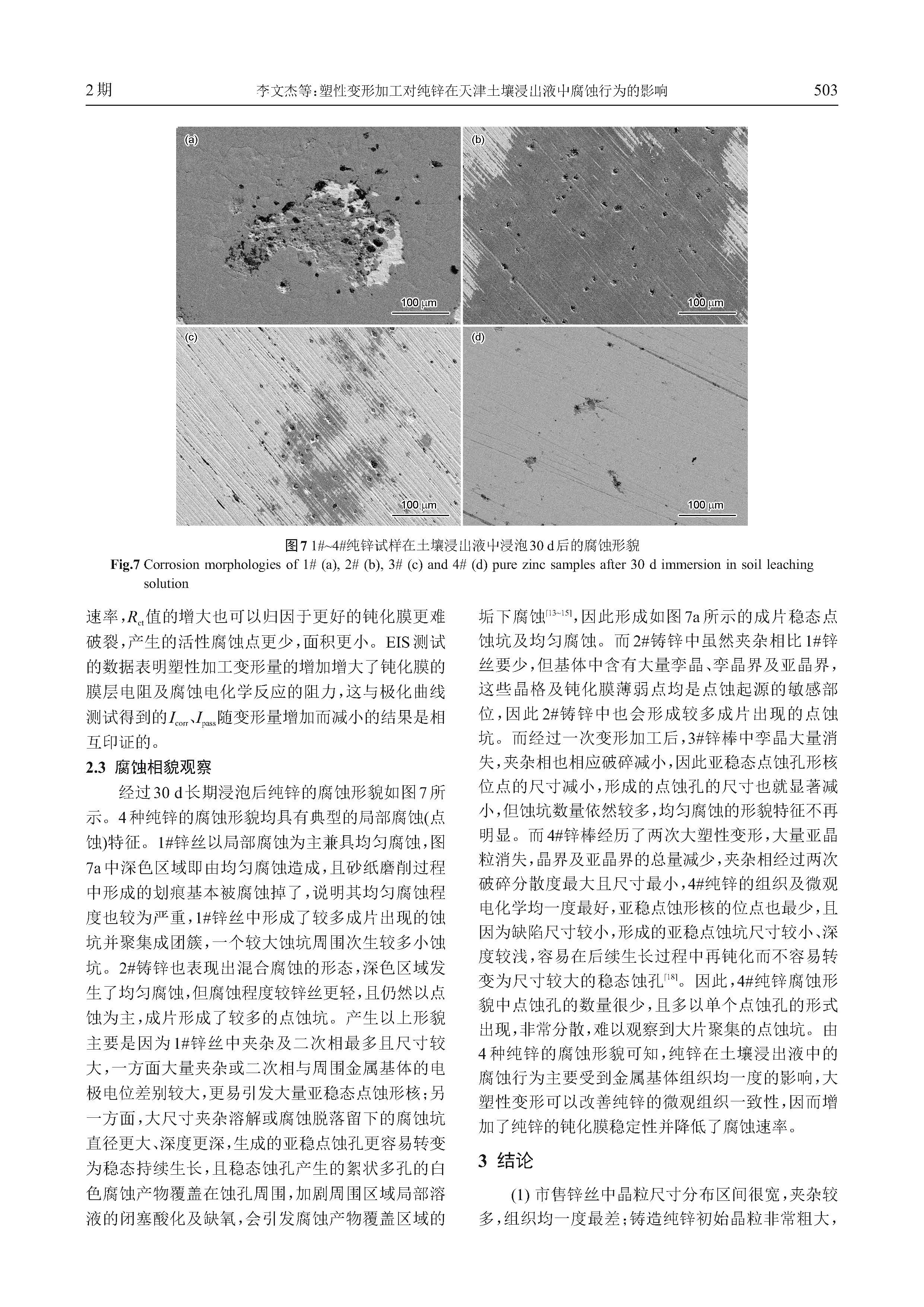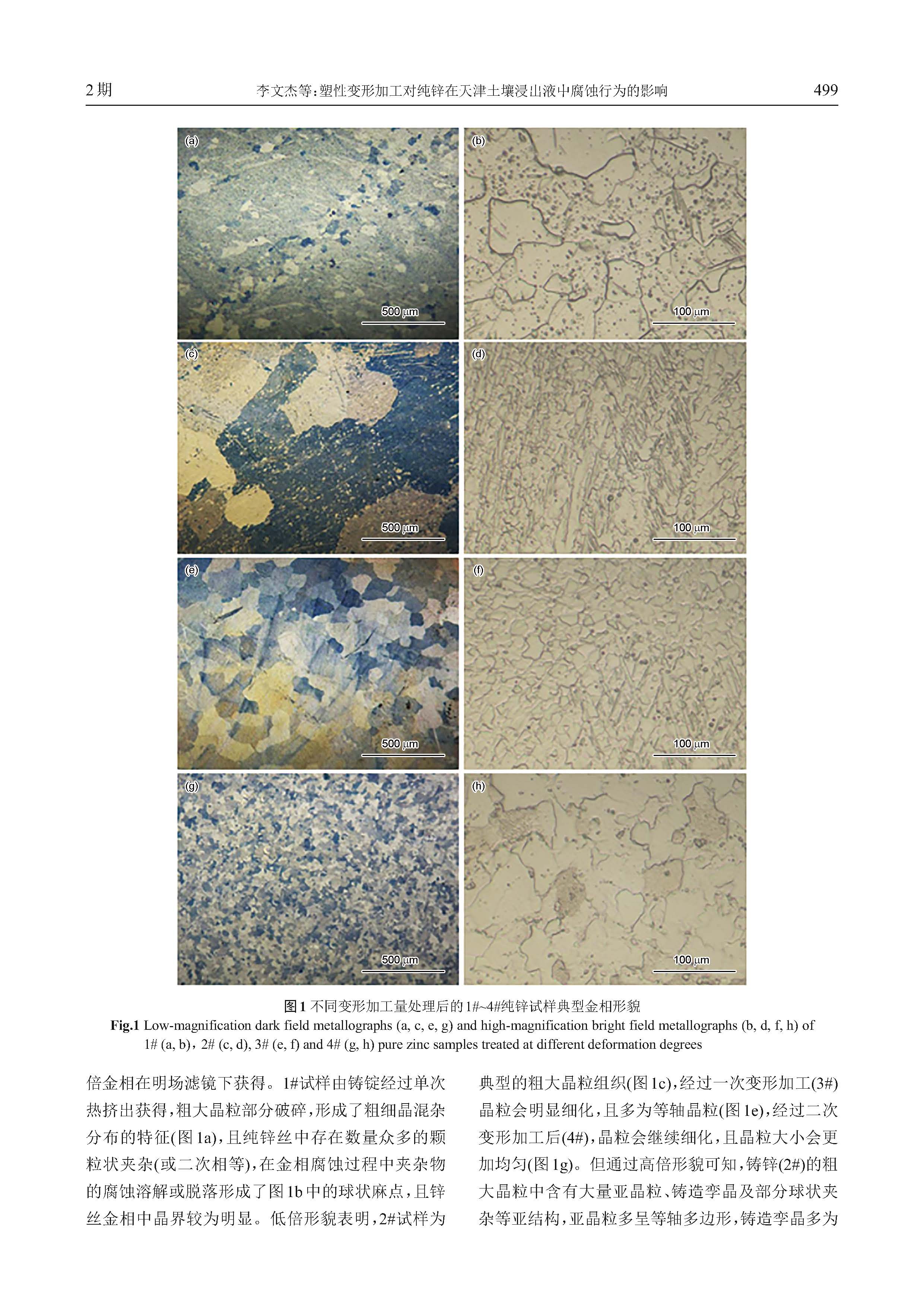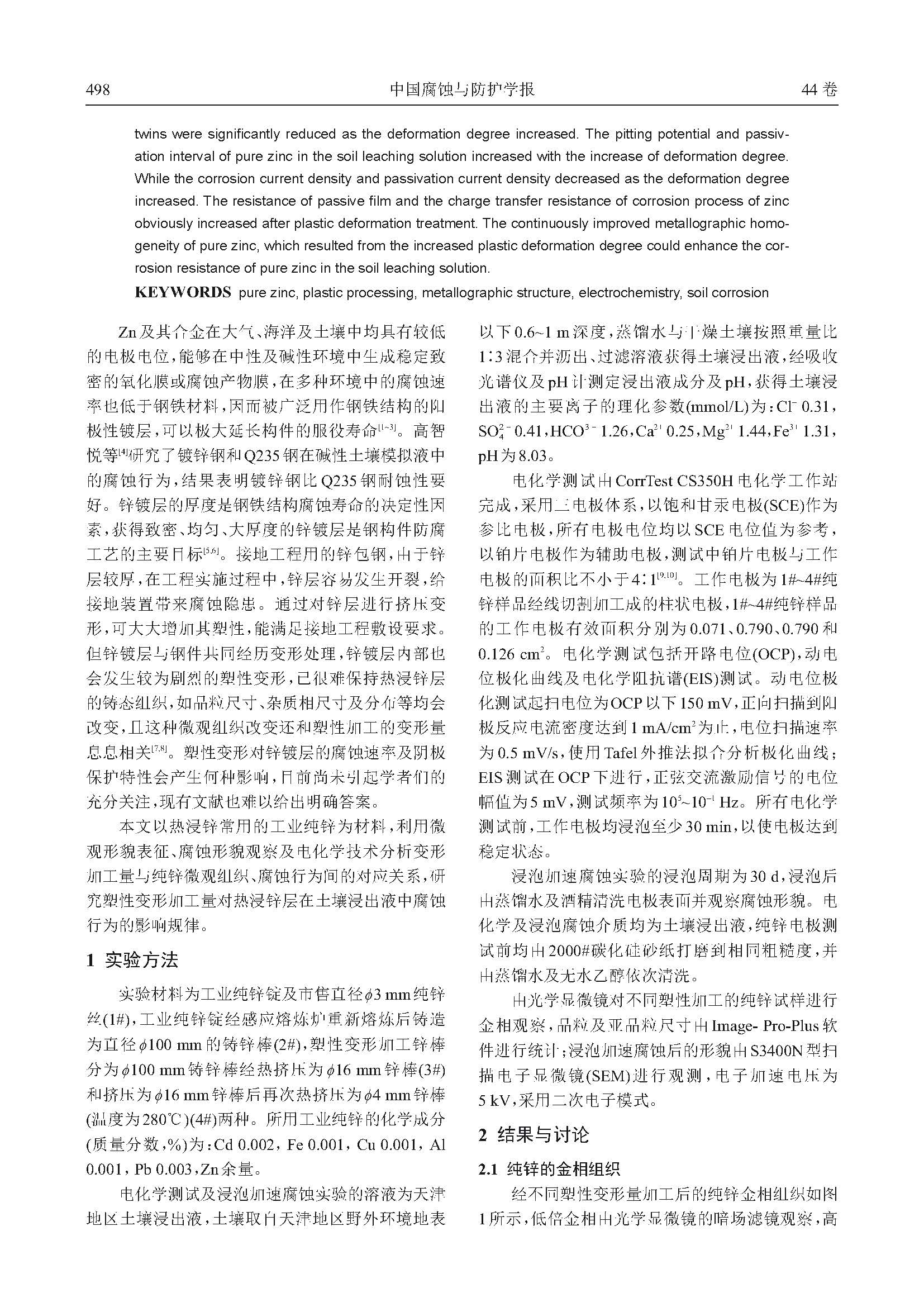 塑性变形加工对纯锌在天津土壤浸出液中腐蚀行为的影响
