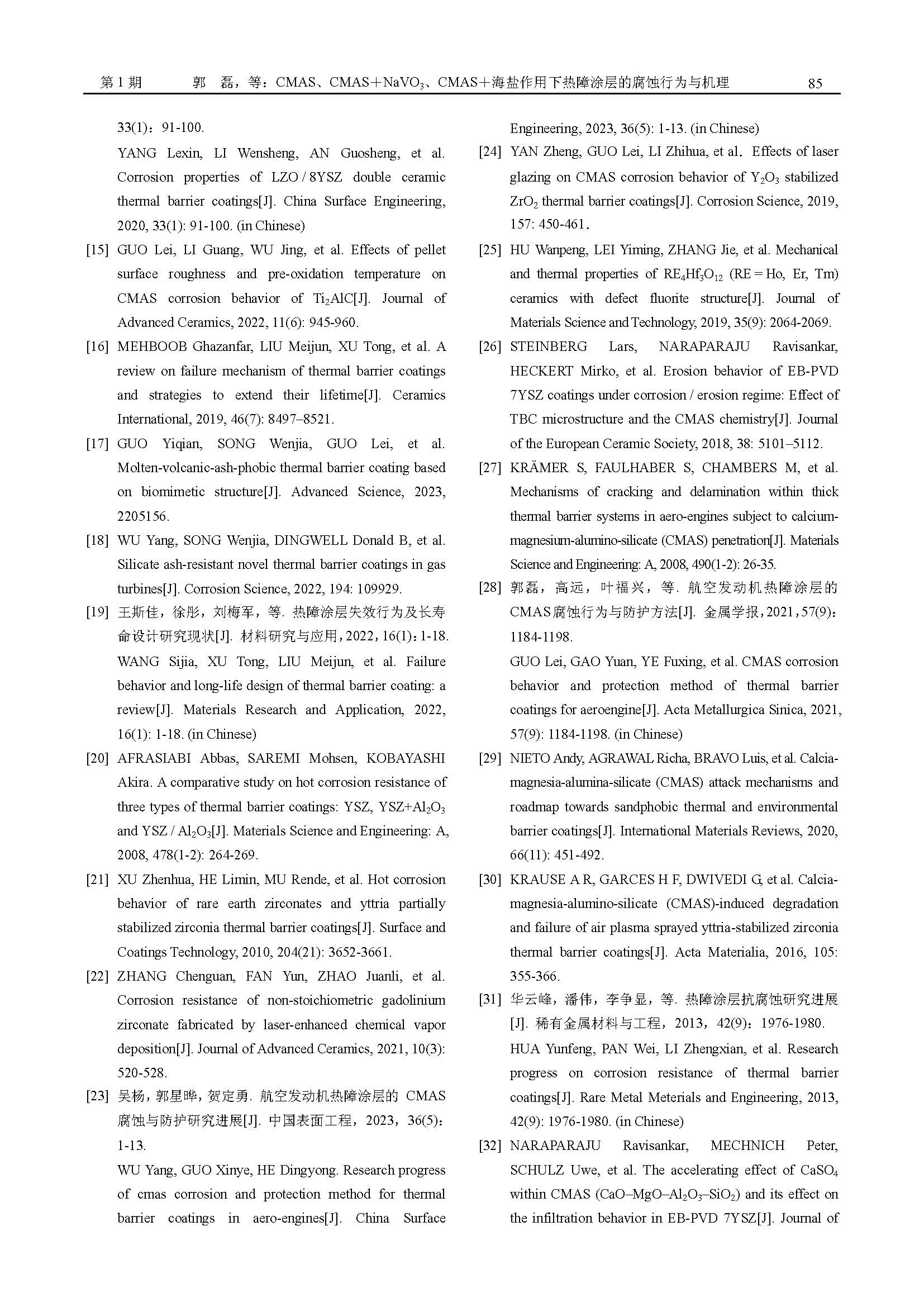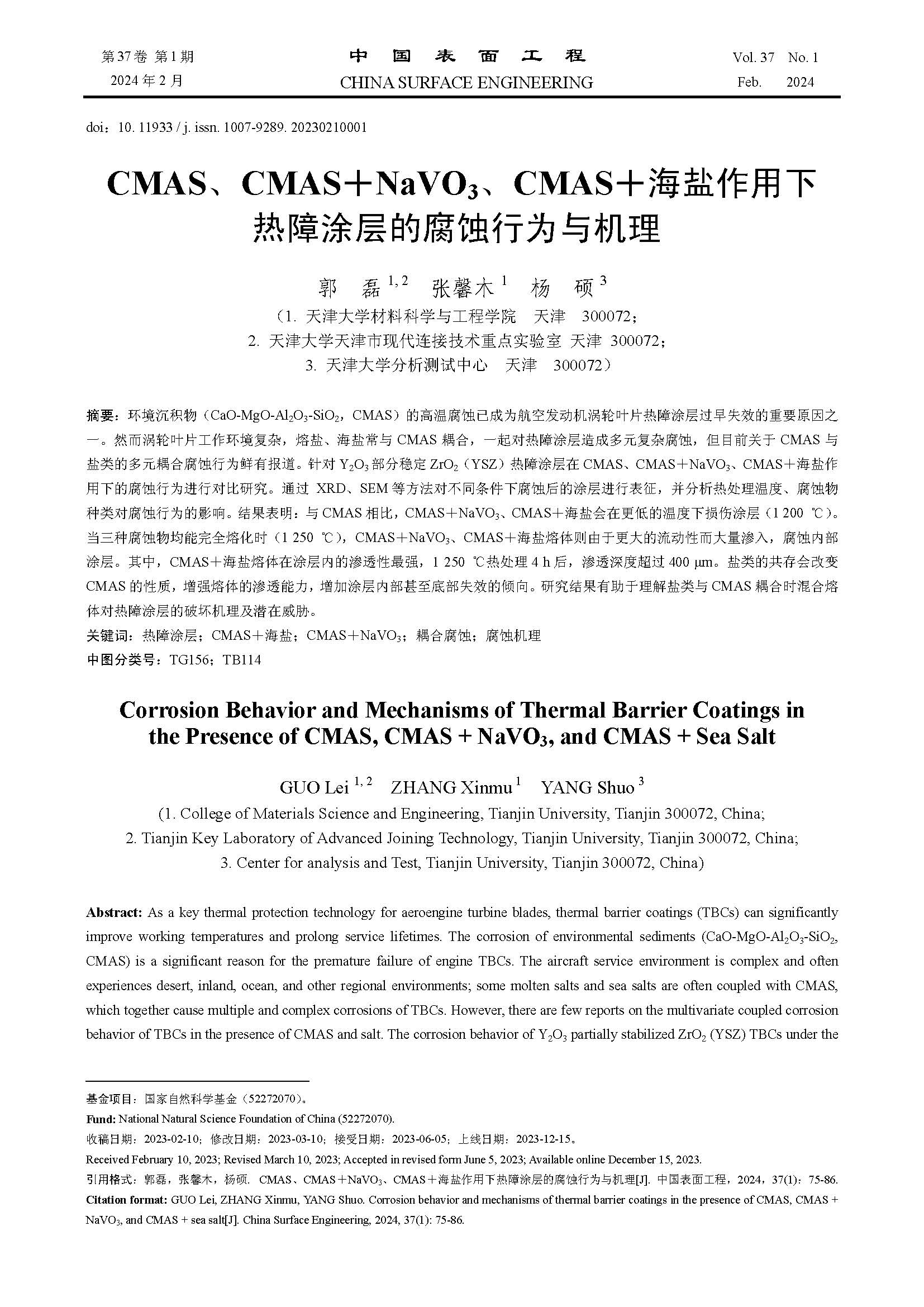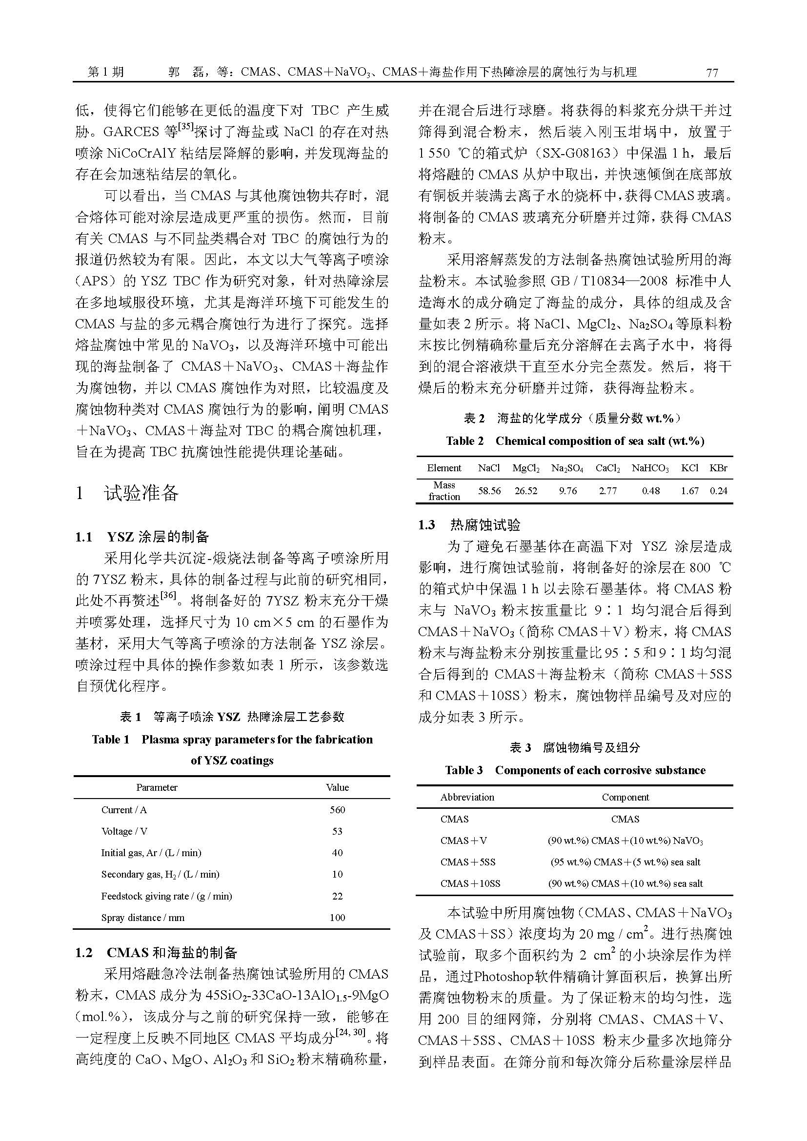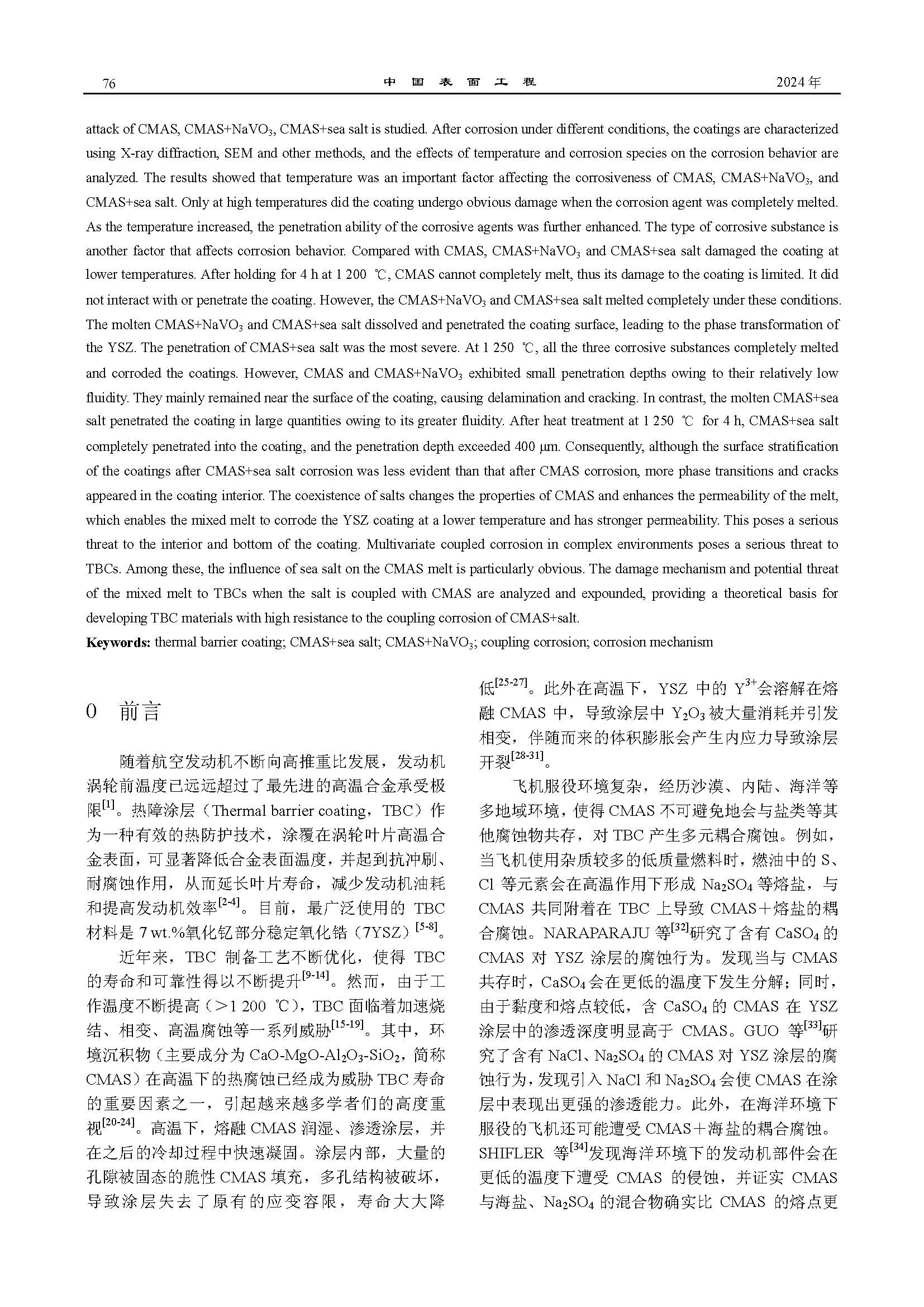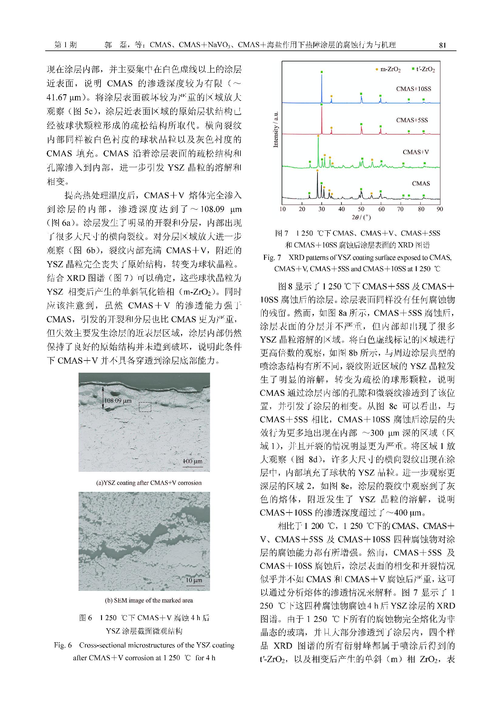 标签: 热障涂层, CMAS+海盐, CMAS+NaVO3, 耦合腐蚀, 腐蚀机理