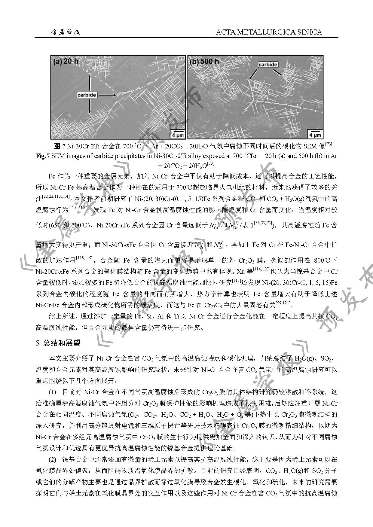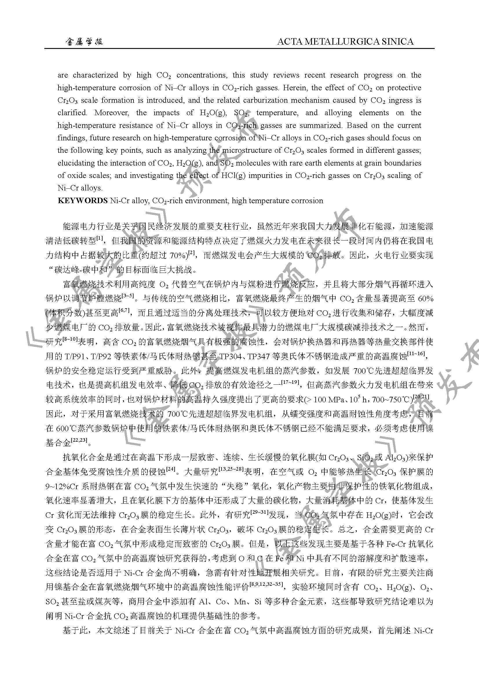 Ni-Cr基合金在富CO2气氛中的高温腐蚀研究进展